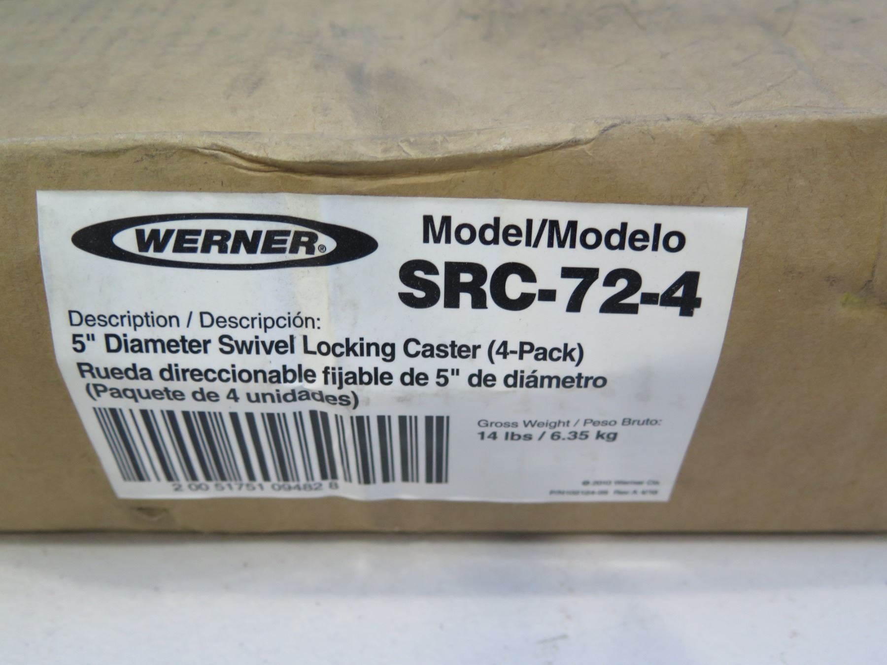 Werner 5" Diameter Swivel Locking Caster (4 Pack) Model SRC-72-4. Fits any of the lots from 91 to 95.