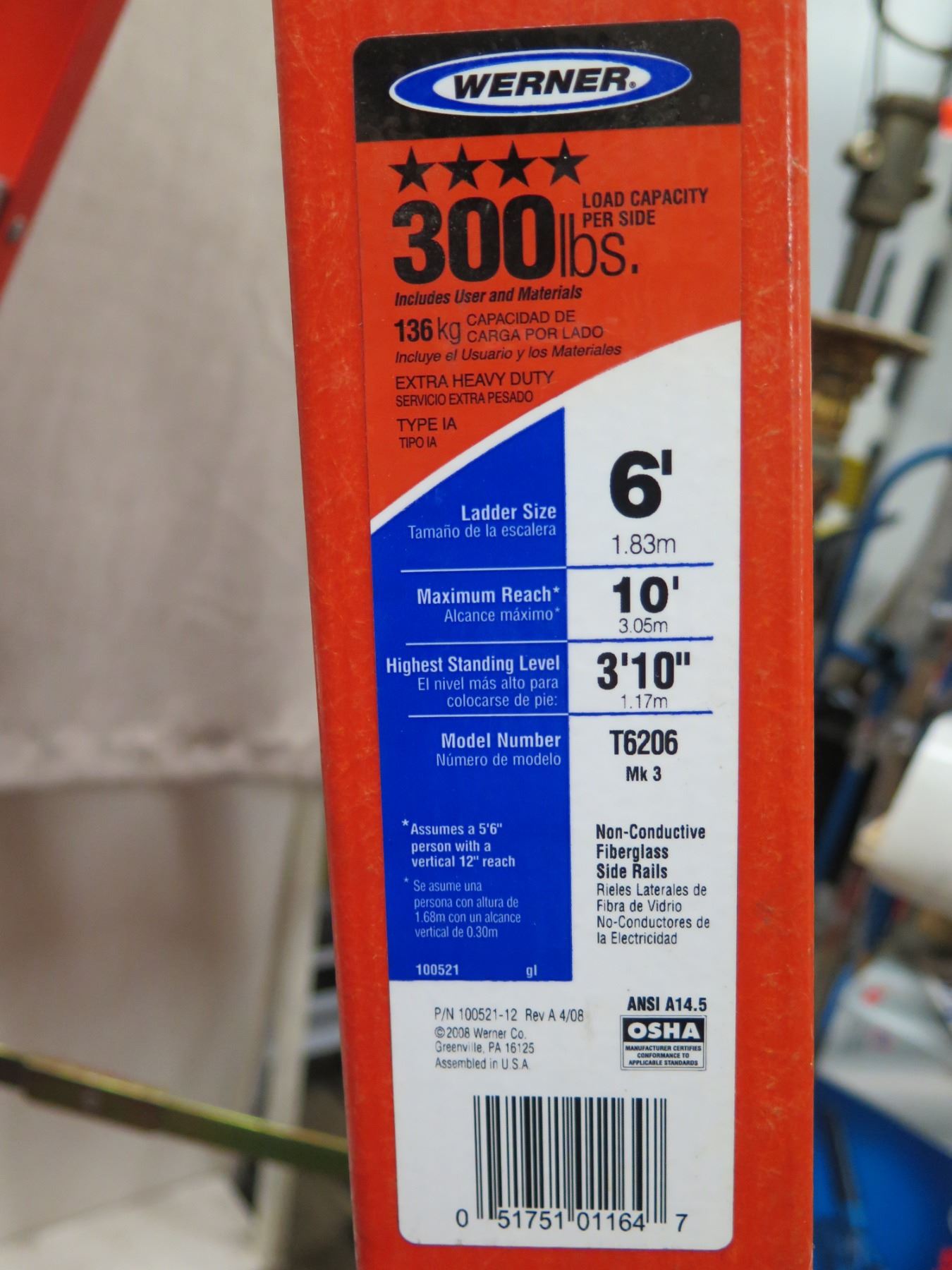 Werner T6206 Step Ladder, 6'H, 300 lb. Capacity