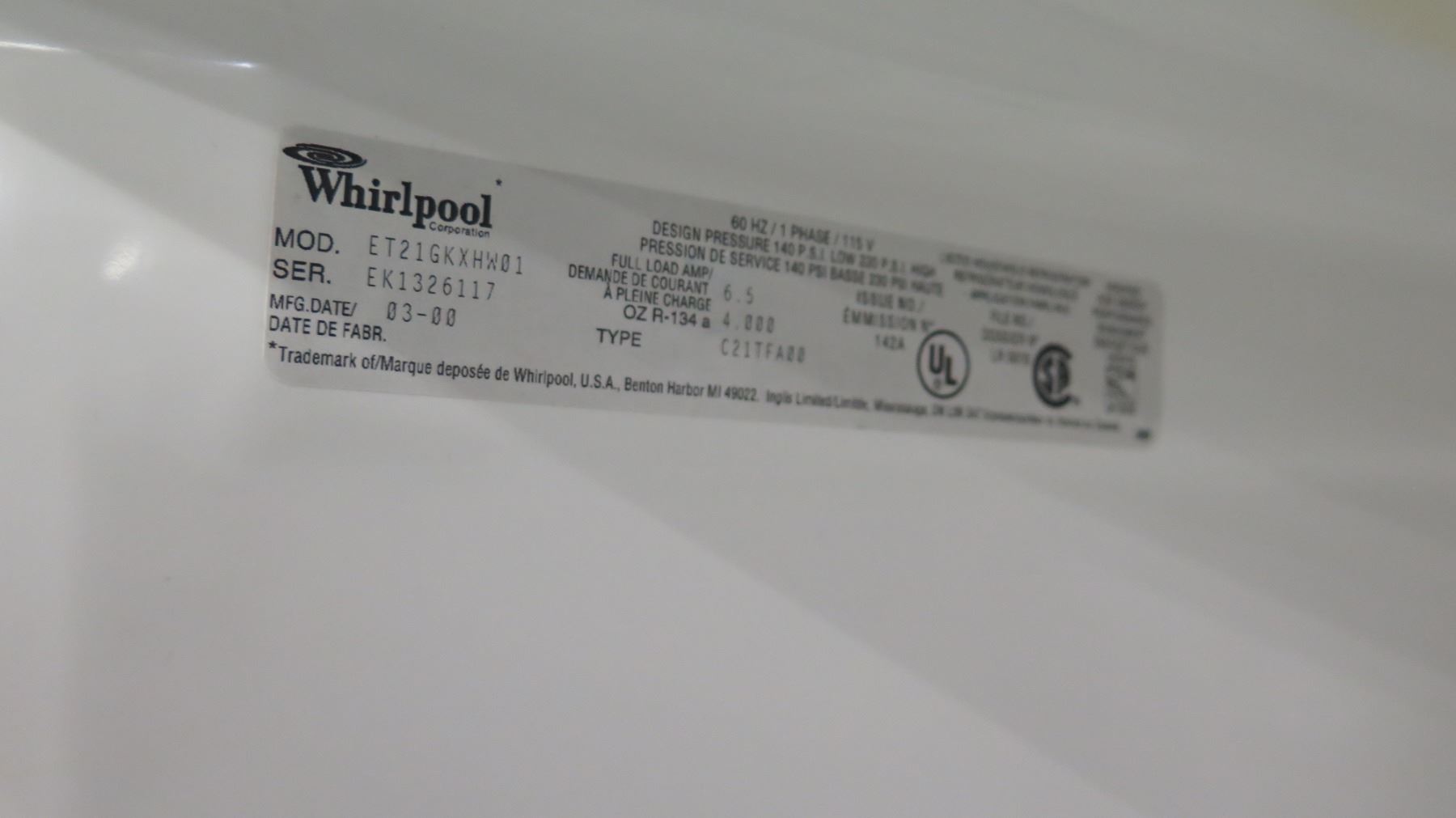 Whirlpool Full Size Refrigerator Freezer Unit