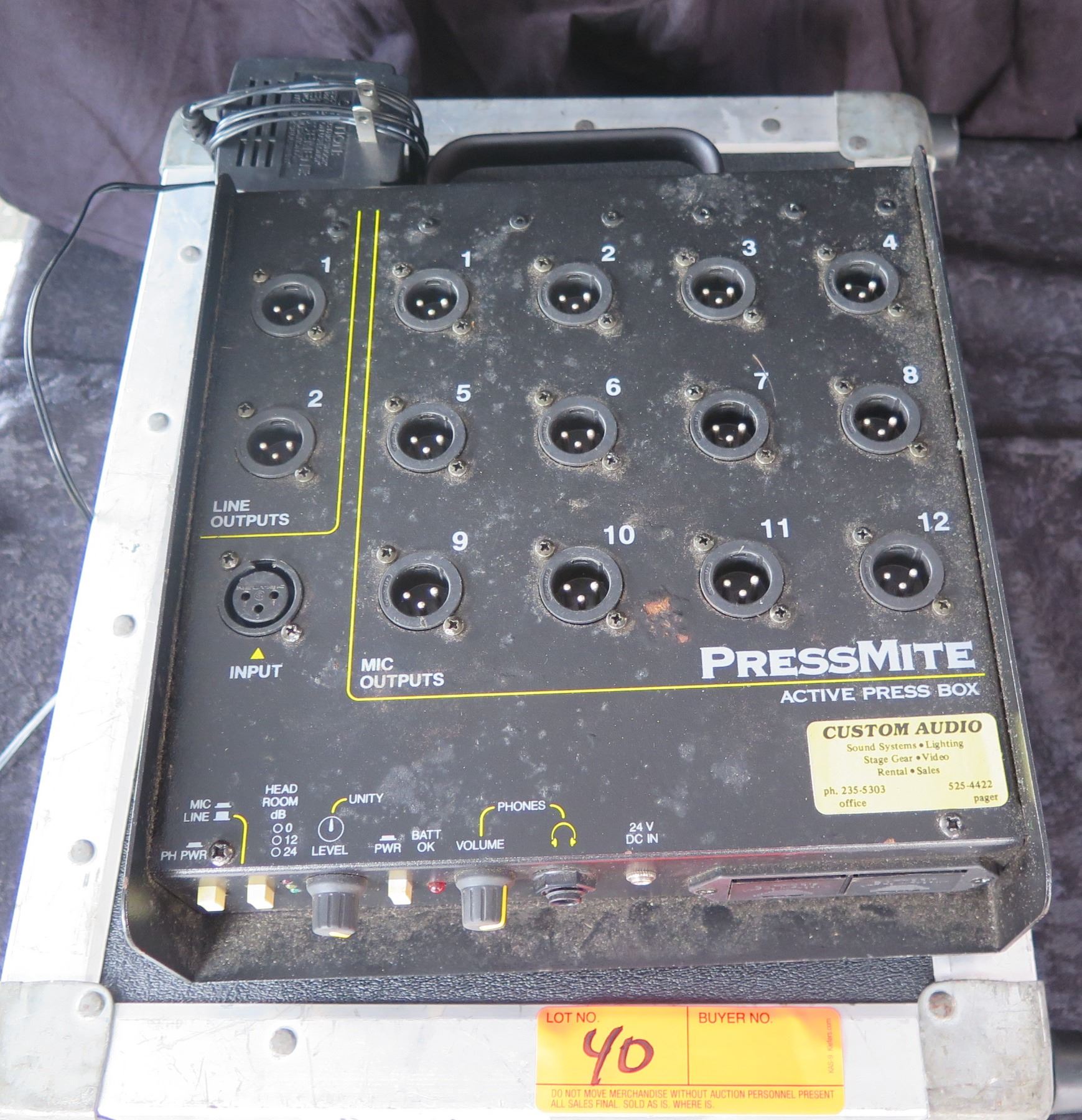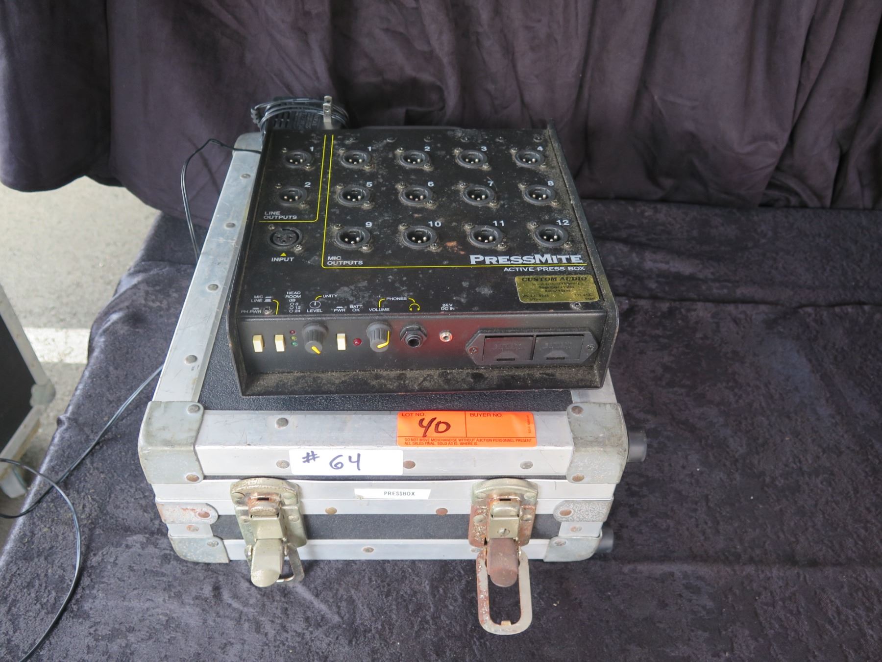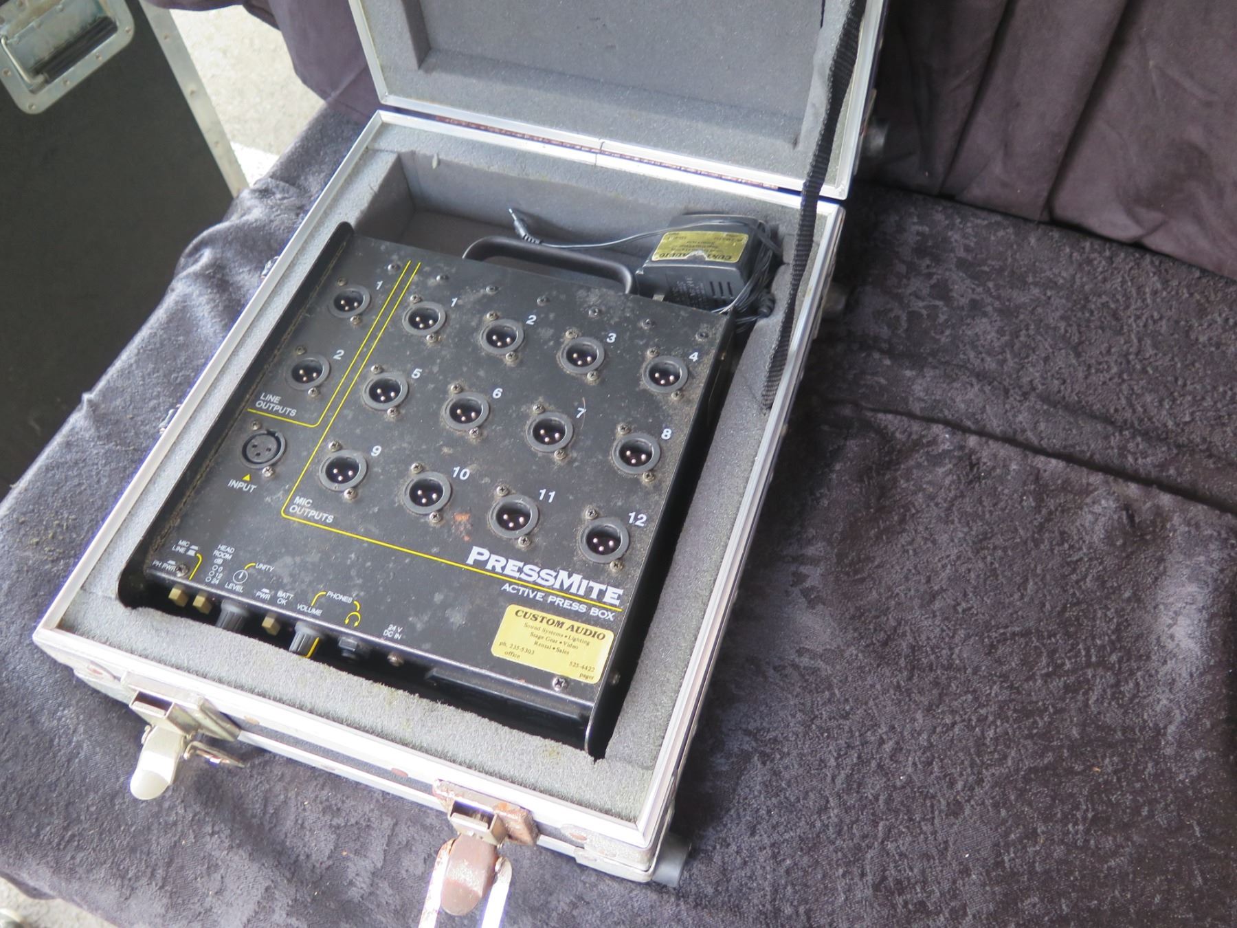 Whirlwind Pressmite Active 10 Line & 2 Mic Level Outputs & 1 Line Input, AC or Battery http://whirlwindusa.com/catalog/headphone-distribution/active/pressmite-active-press-box