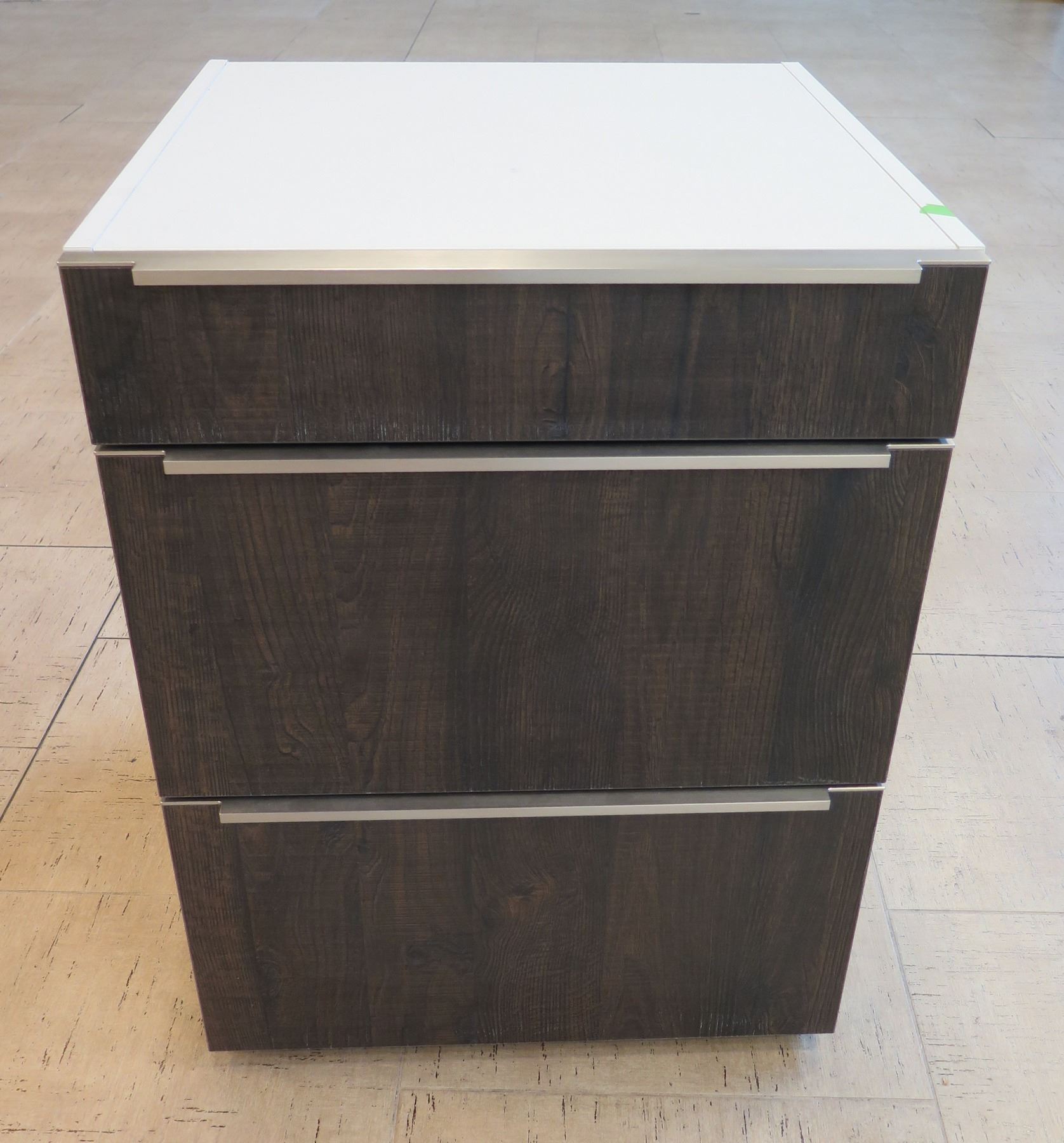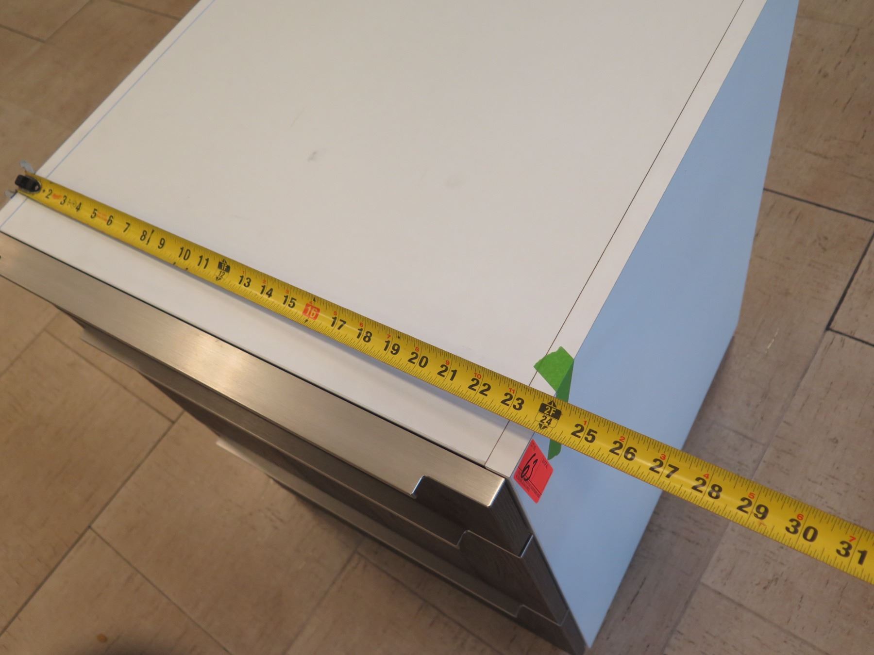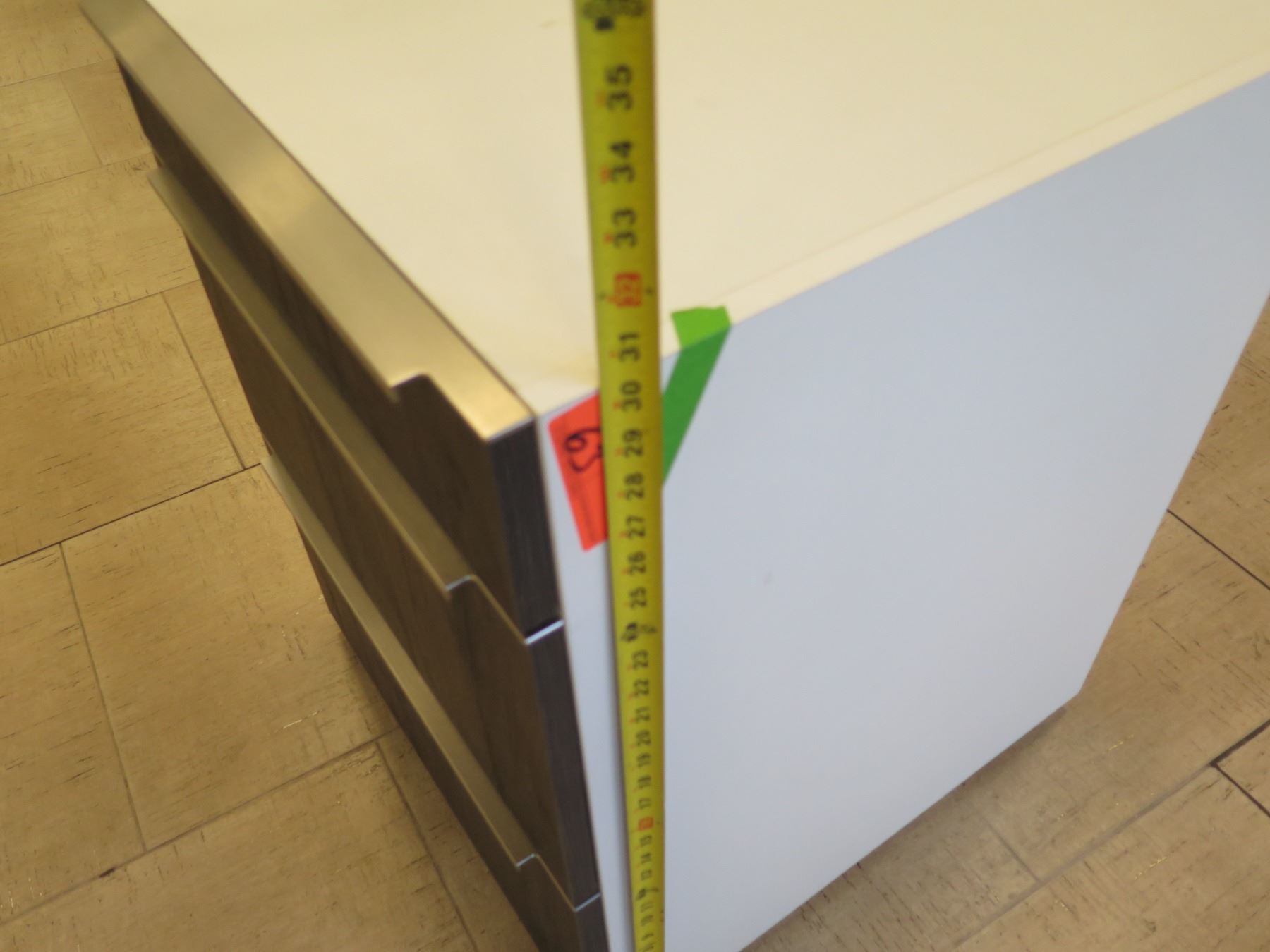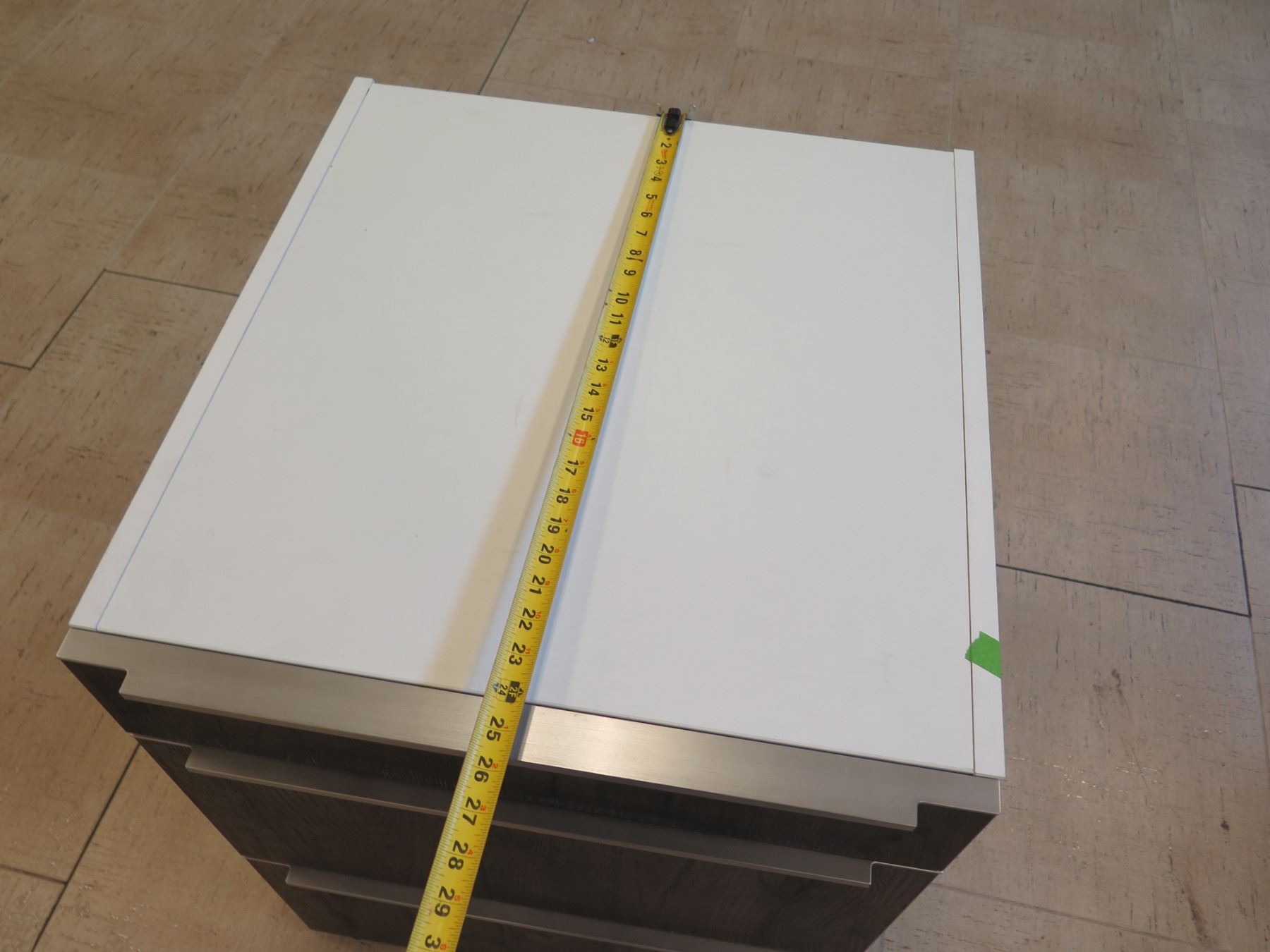 White 3-Drawer Cabinet w/ Front Wood Design 26" x 23" x 30"H