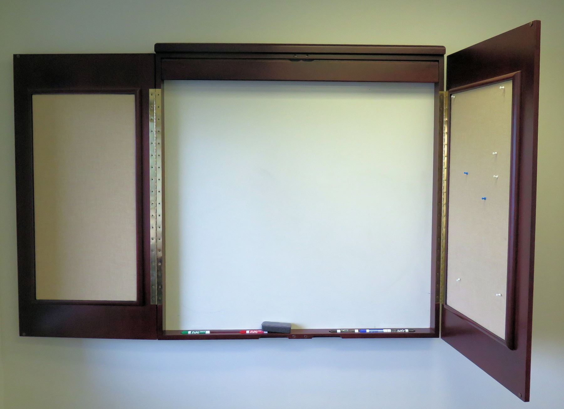 White Board Double Door Cabinet, Wall Mounted w/ Cork Inside Doors