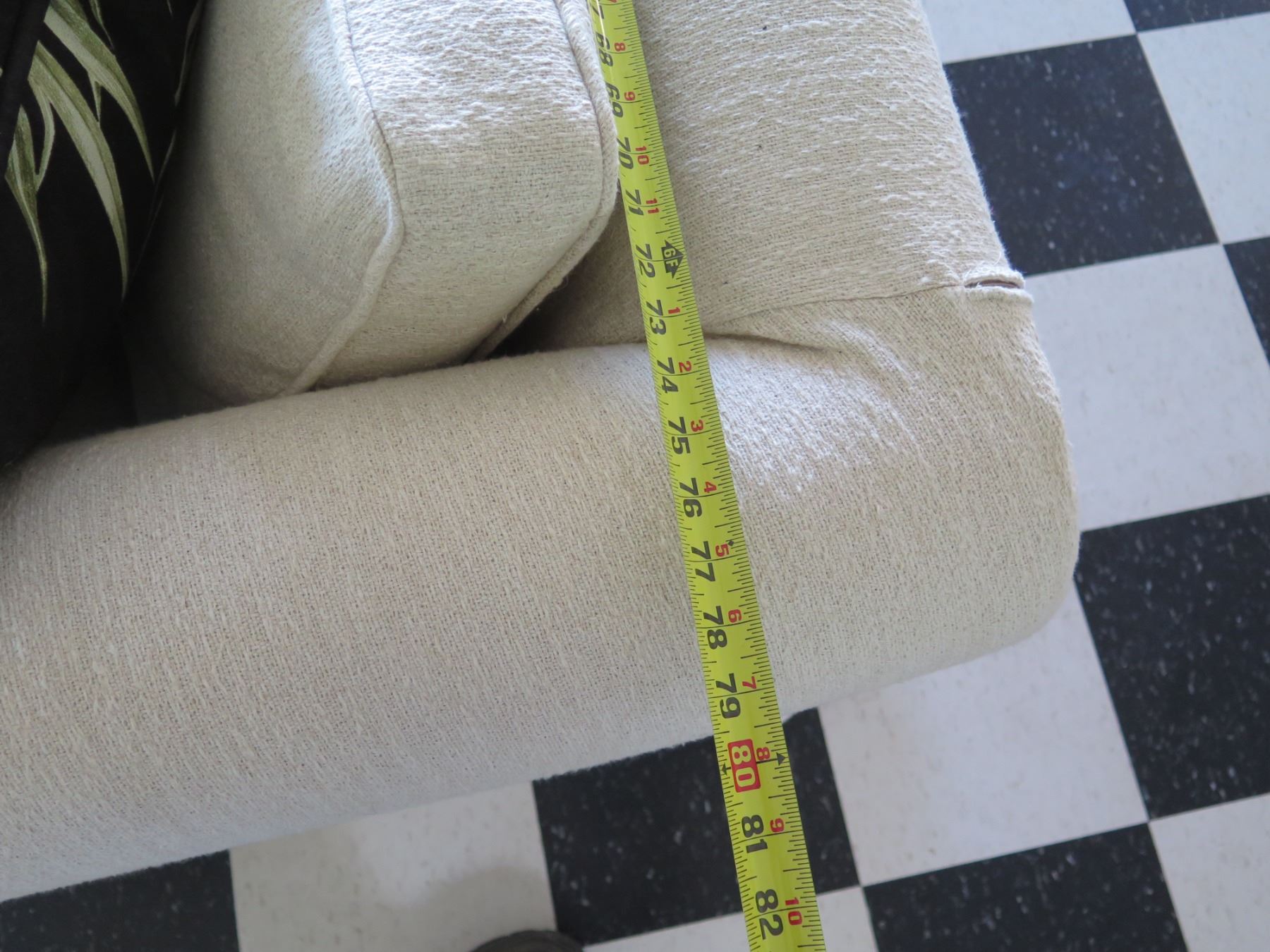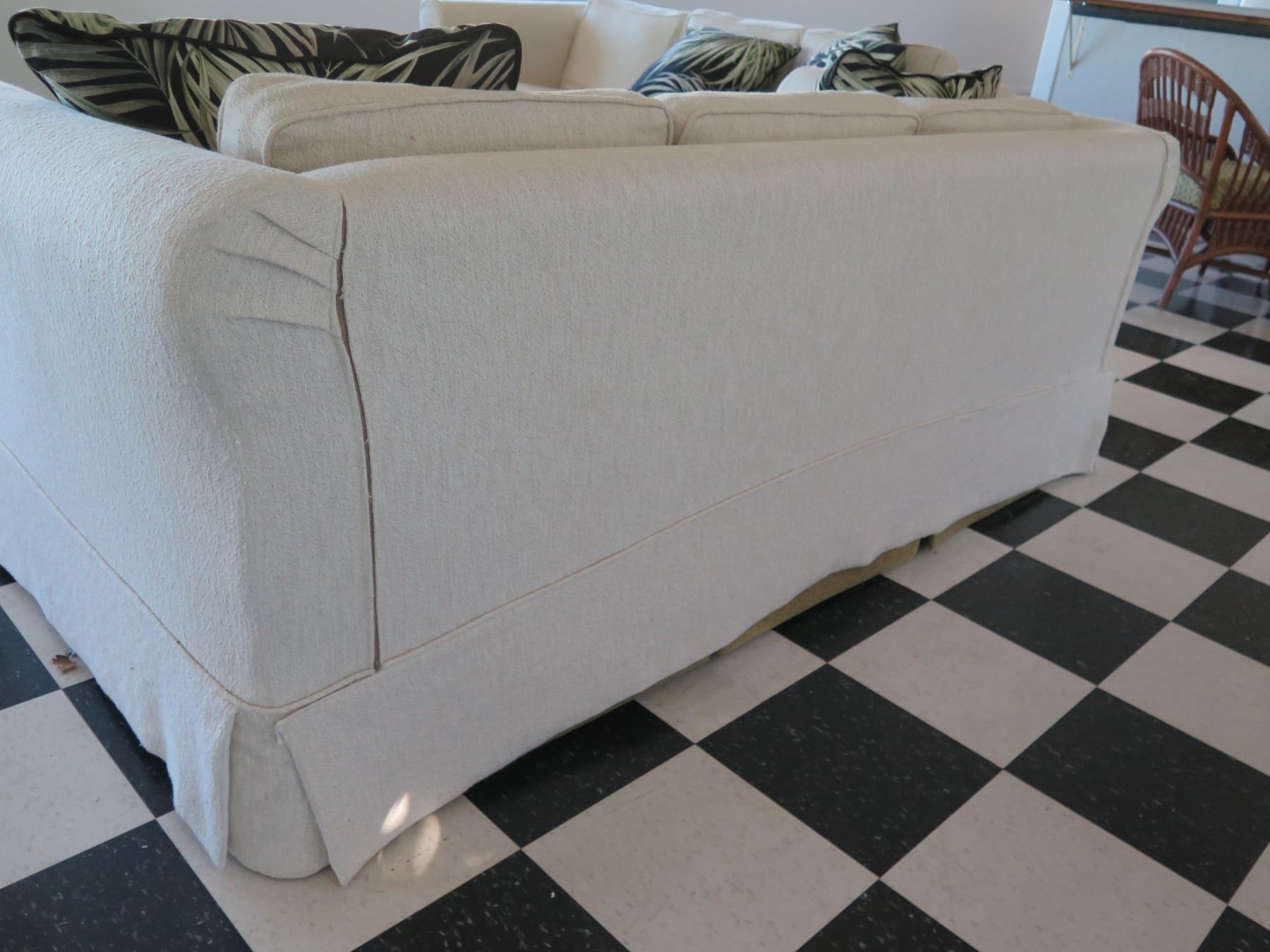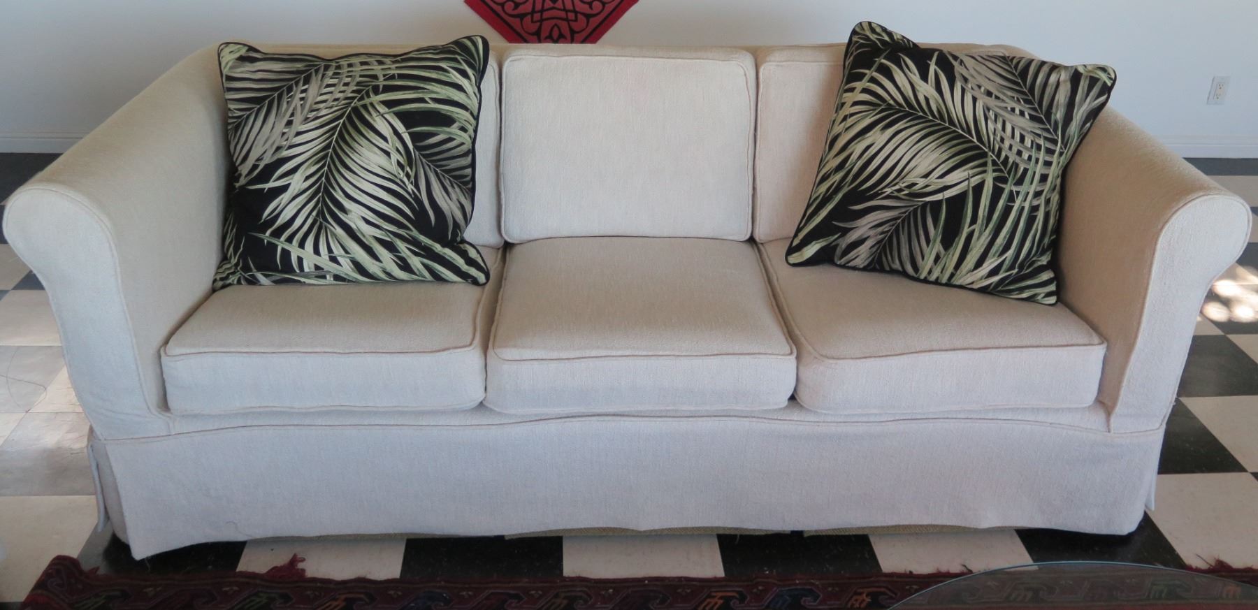 White Covered 3 Seat Sofa Sleeper Bed w/ 2 Leaf Design Cushions 80"x21"x29"H