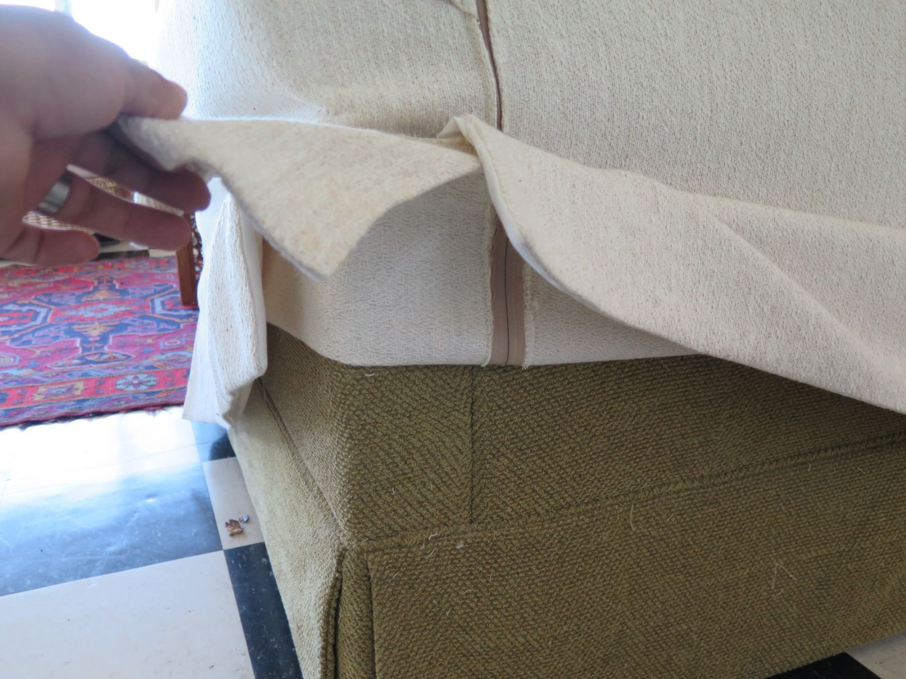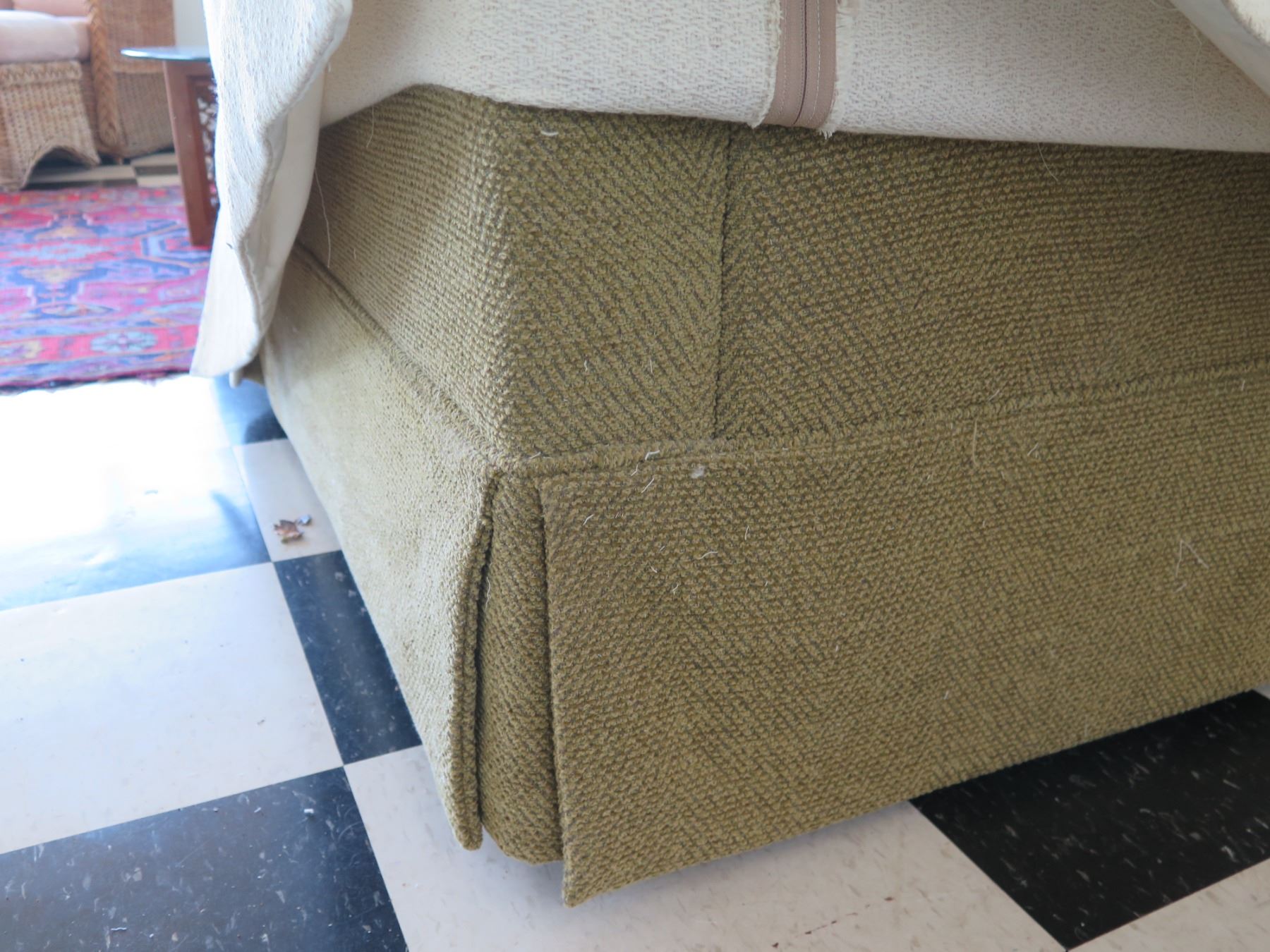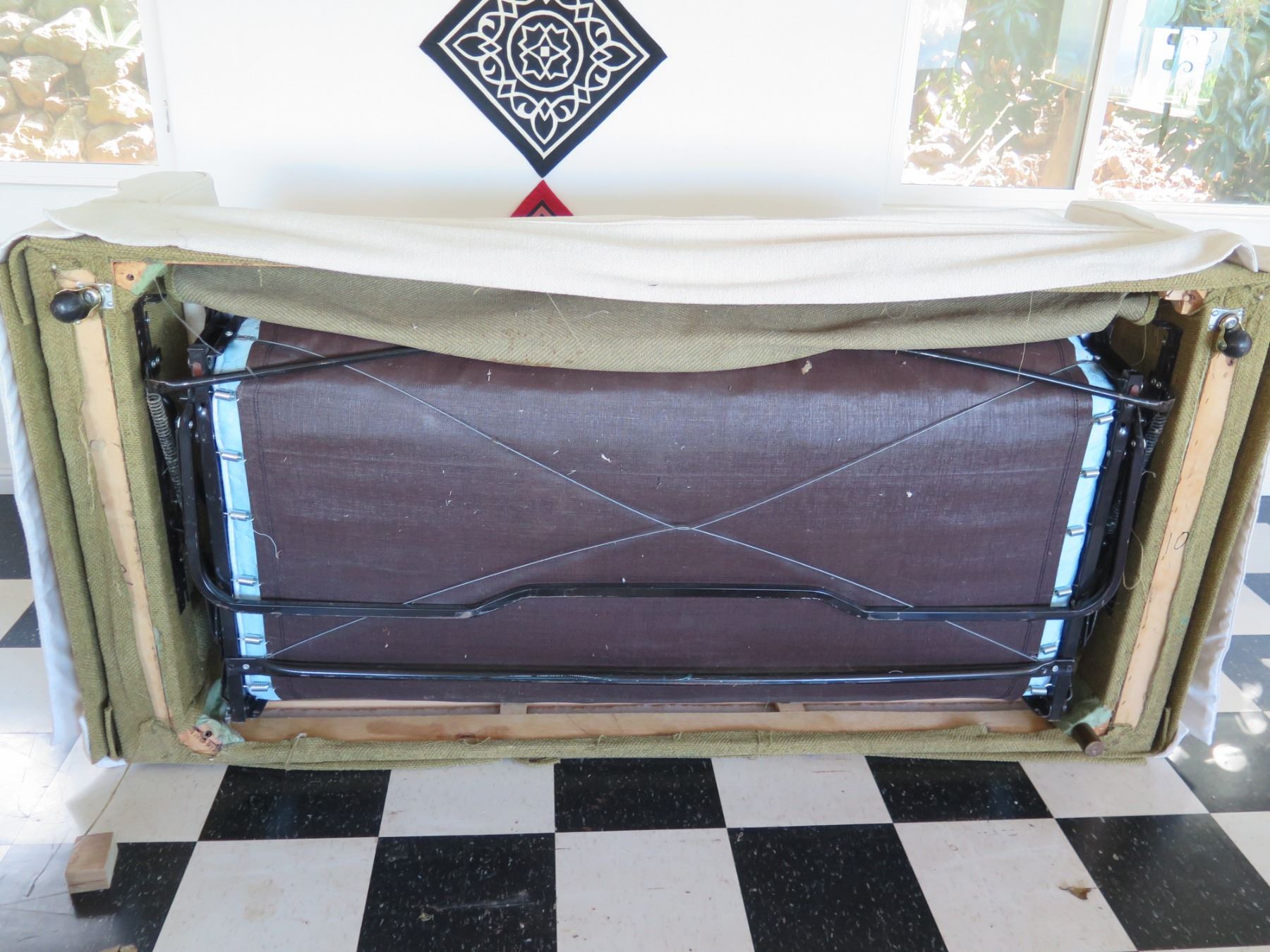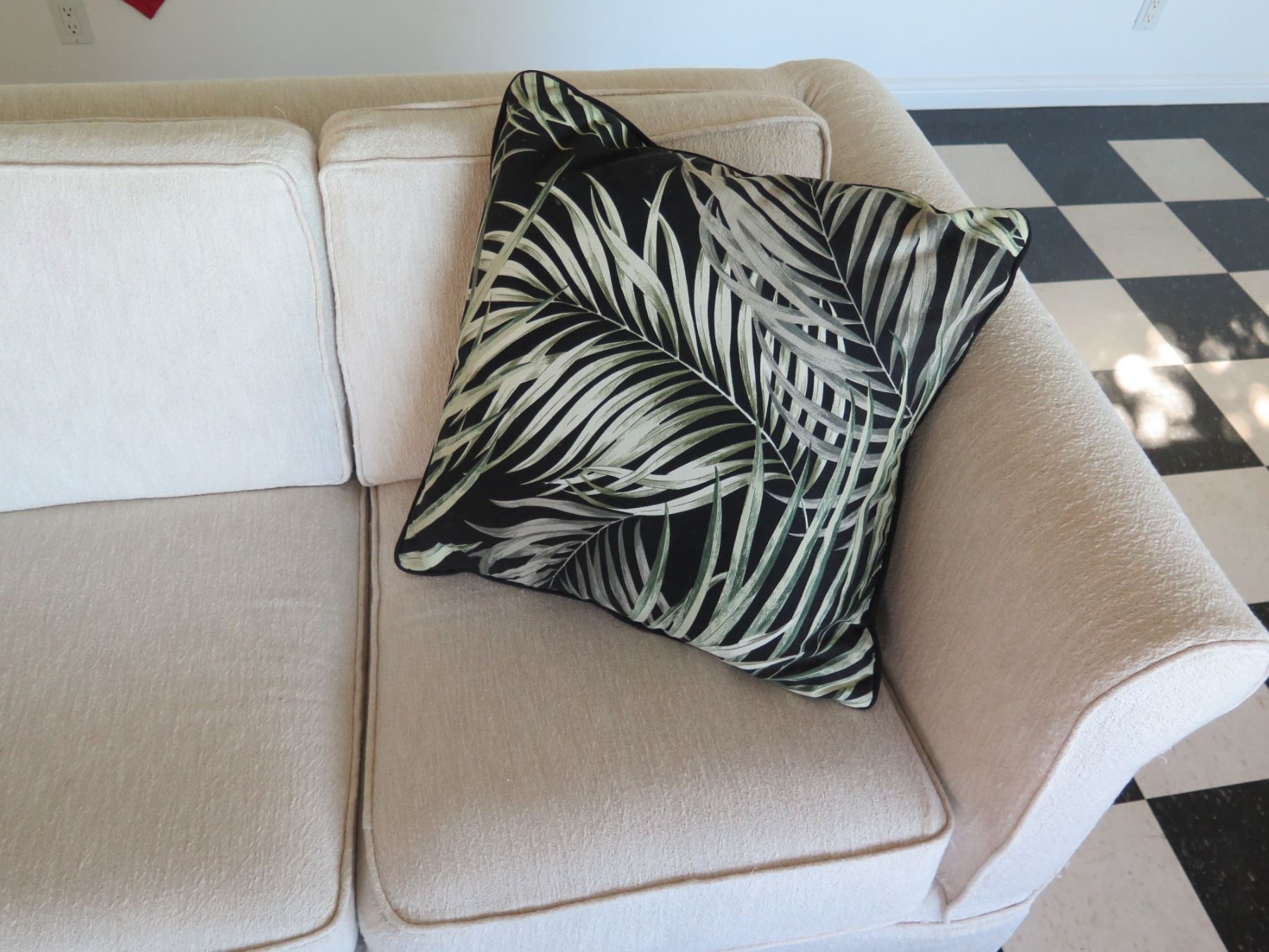 White Covered 3 Seat Sofa Sleeper Bed w/ 2 Leaf Design Cushions 80"x21"x29"H