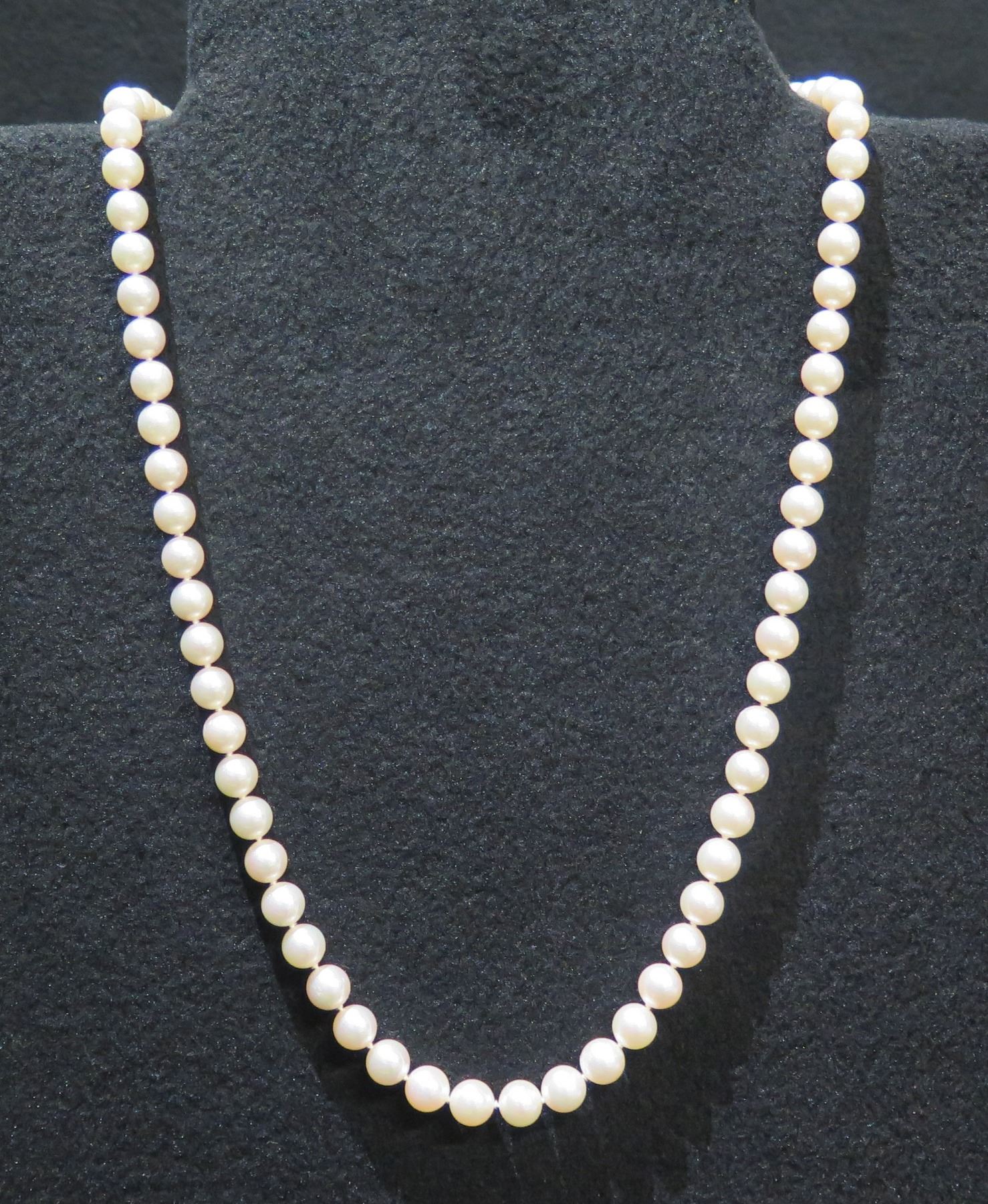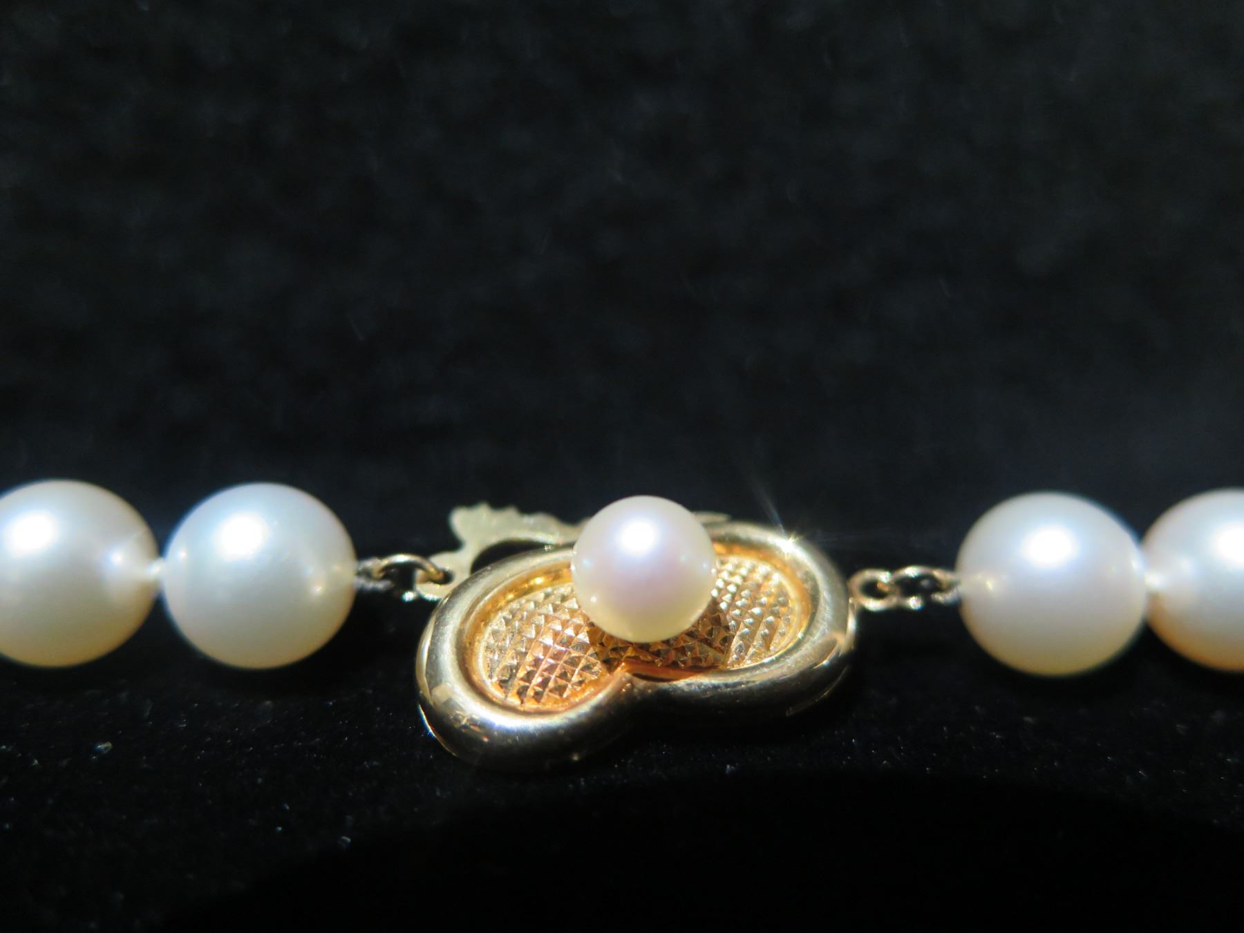 White Genuine Pearl Necklace w/ Gold & Pearl Clasp Stamped 750 27"L