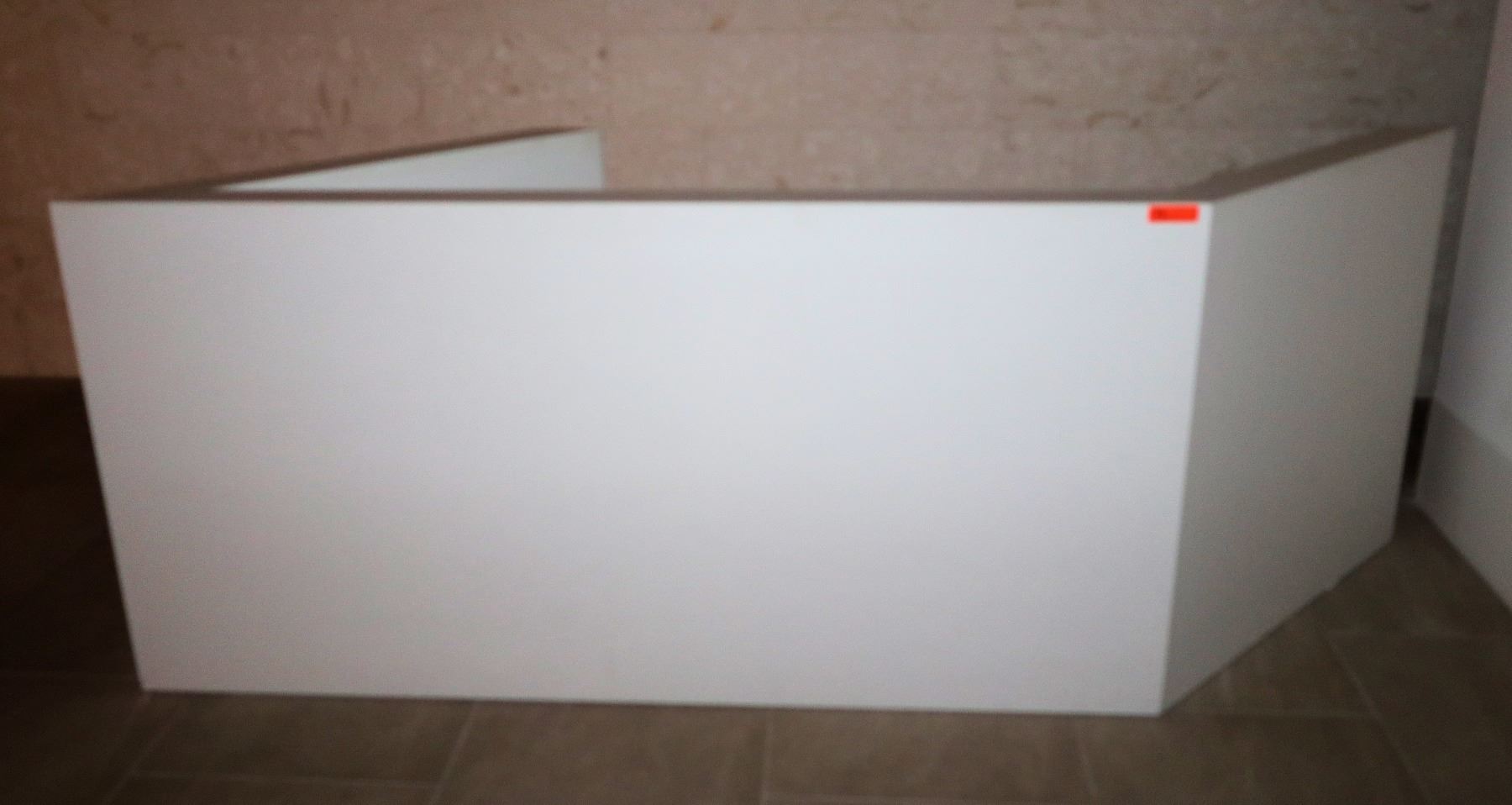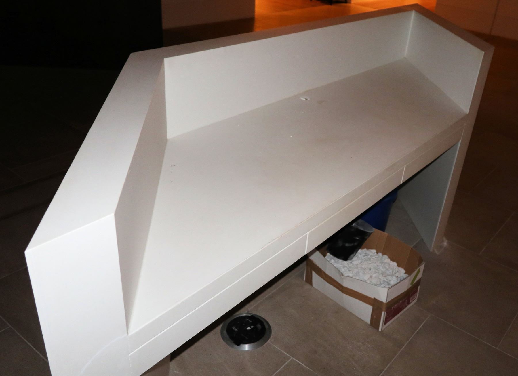 White Geometric Reception Desk/Station 7’ Front, 7' Back, 42” H, 25.5” Depth