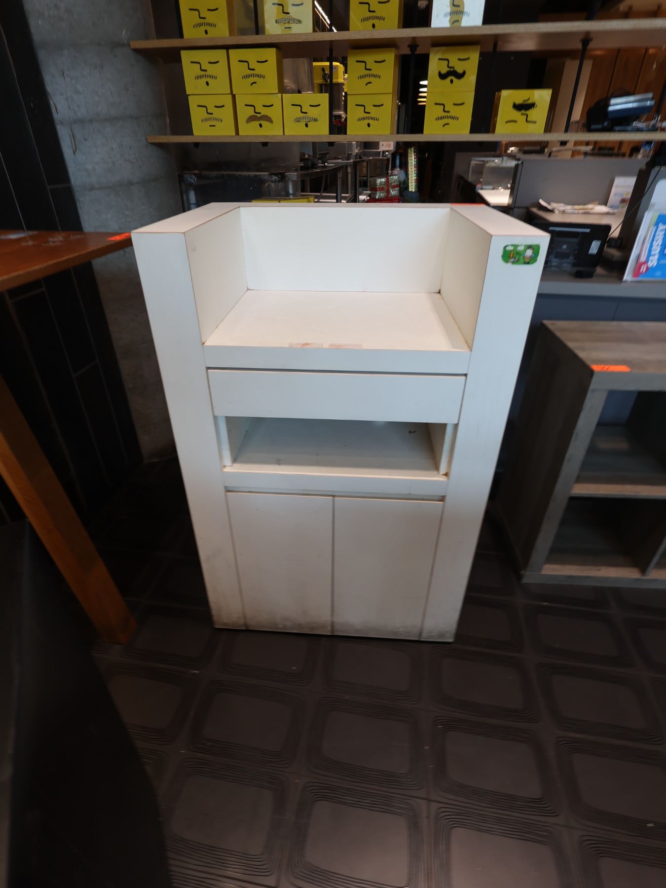 White Hostess Stand w/ Drawer & Undercabinet 28" x 20" x 44"H