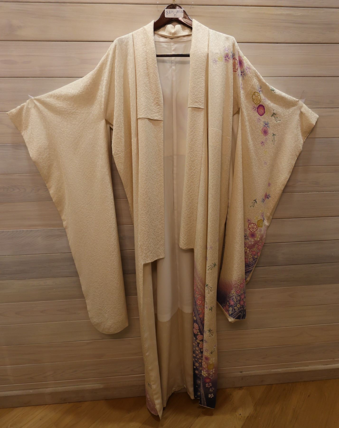 White & Purple Japanese Kimono w/ Floral Design & Tag   Women's One Size