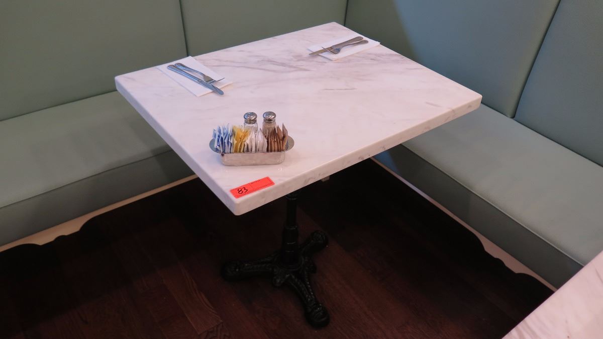 White Solid Marble Table, Wrought Iron Base - Table Only