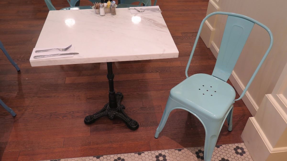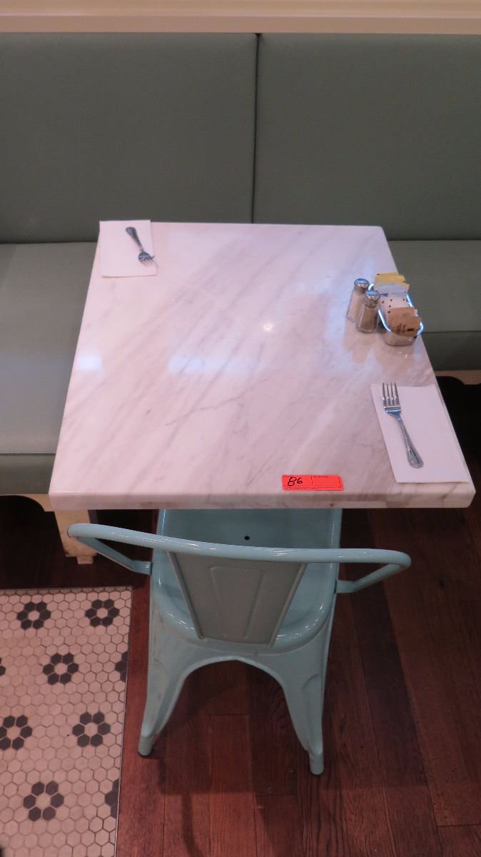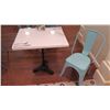 White Solid Marble Table w/Wrought Iron Base + 1 Aqua Chair