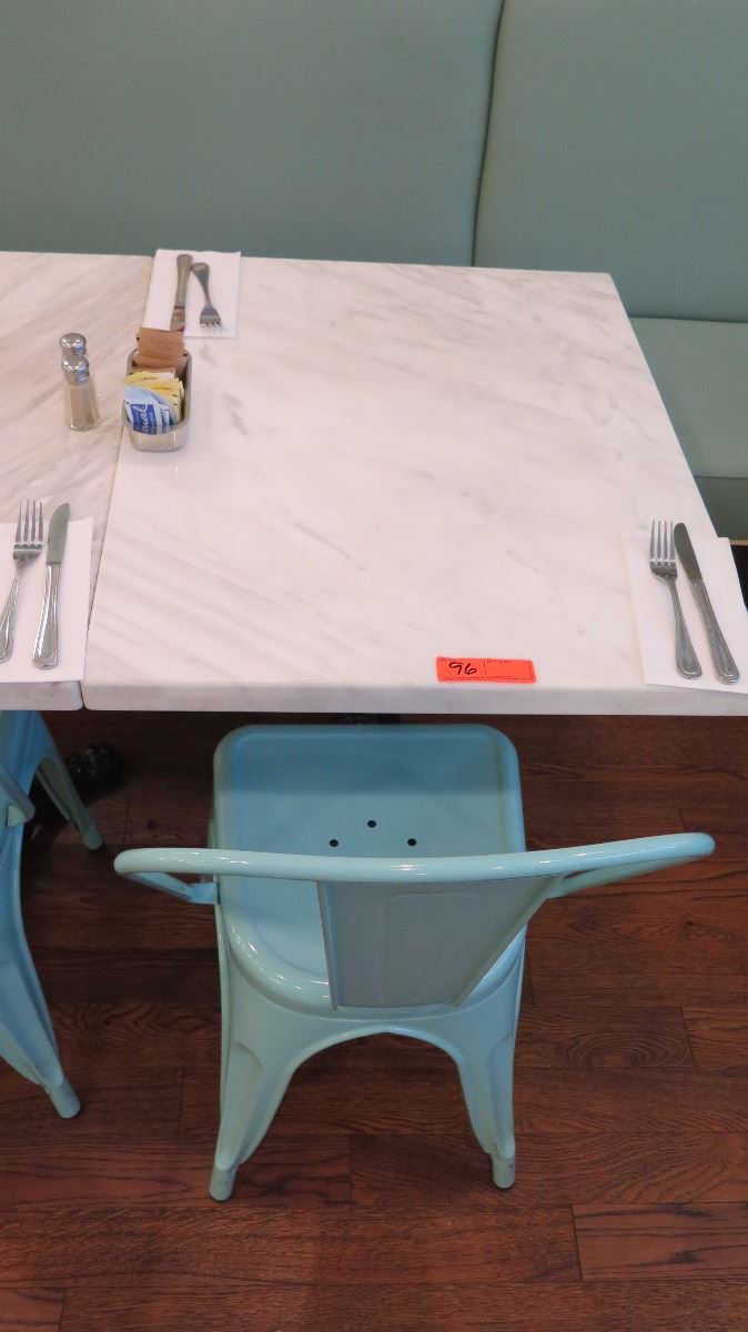White Solid Marble Table w/Wrought Iron Base + 1 Aqua Chair