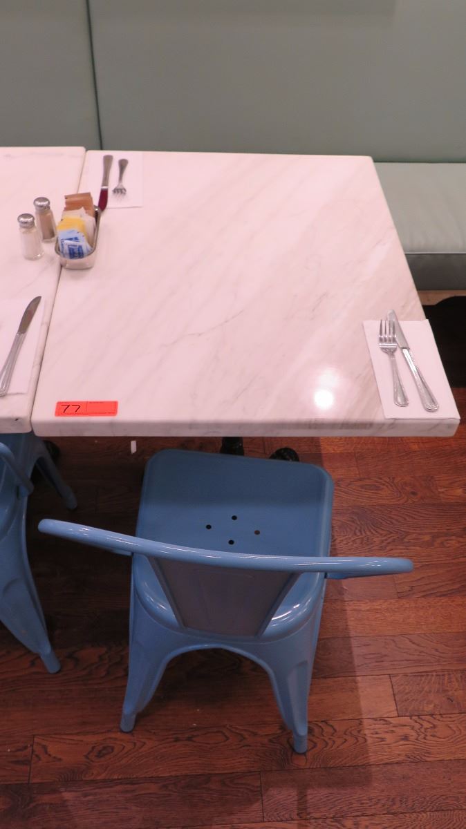 White Solid Marble Table w/Wrought Iron Base + 1 Blue Chair