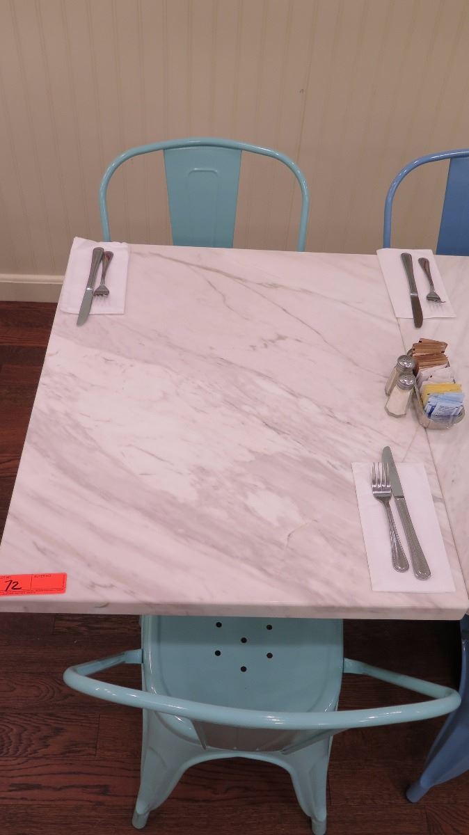 White Solid Marble Table w/Wrought Iron Base + 2 Aqua Chairs