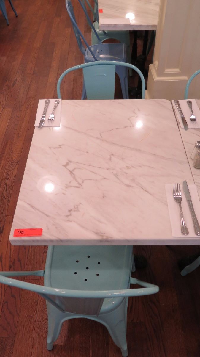 White Solid Marble Table w/Wrought Iron Base + 2 Chairs