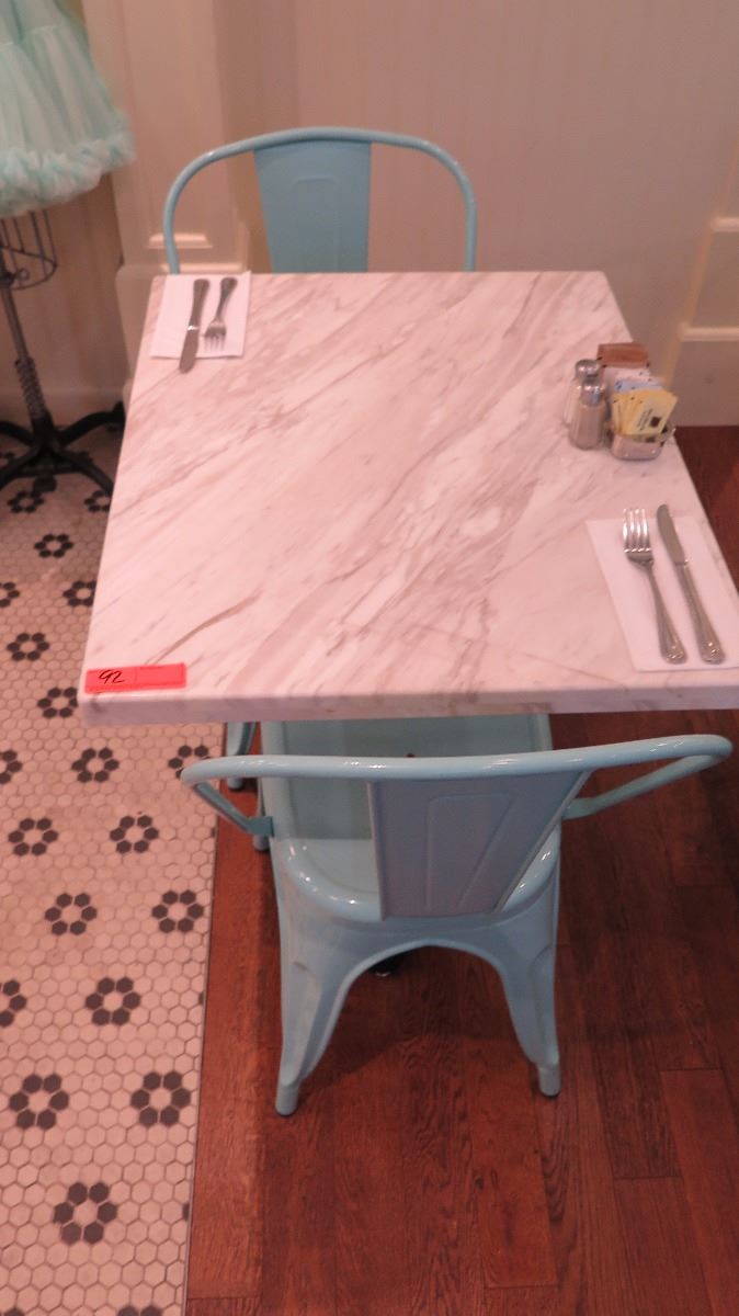 White Solid Marble Table w/Wrought Iron Base + 2 Chairs