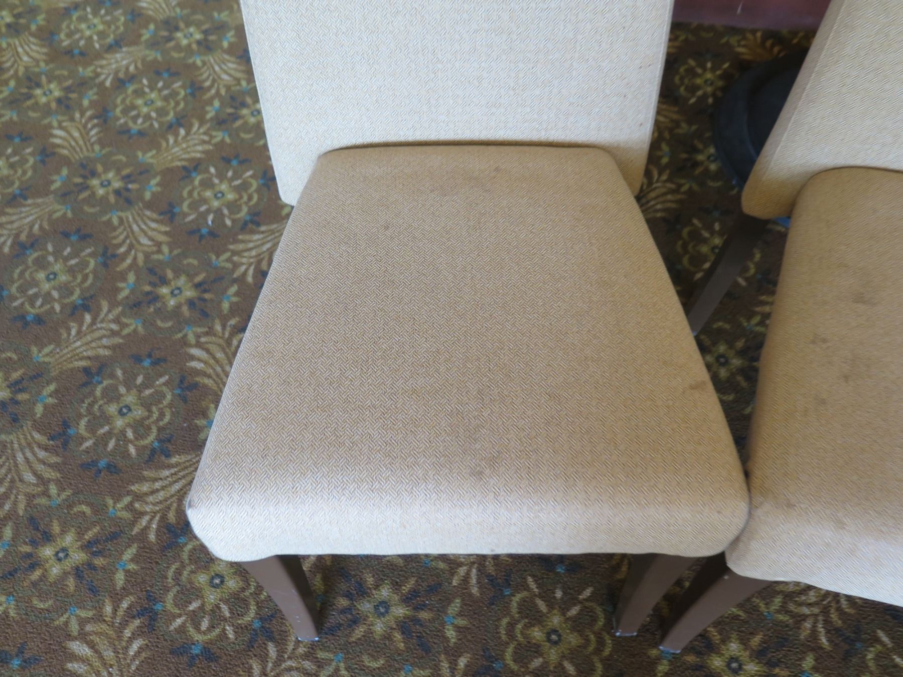White Table w/ Pedestal Base 36"x30"x30" w/ 4 Upholstered Wooden Chairs