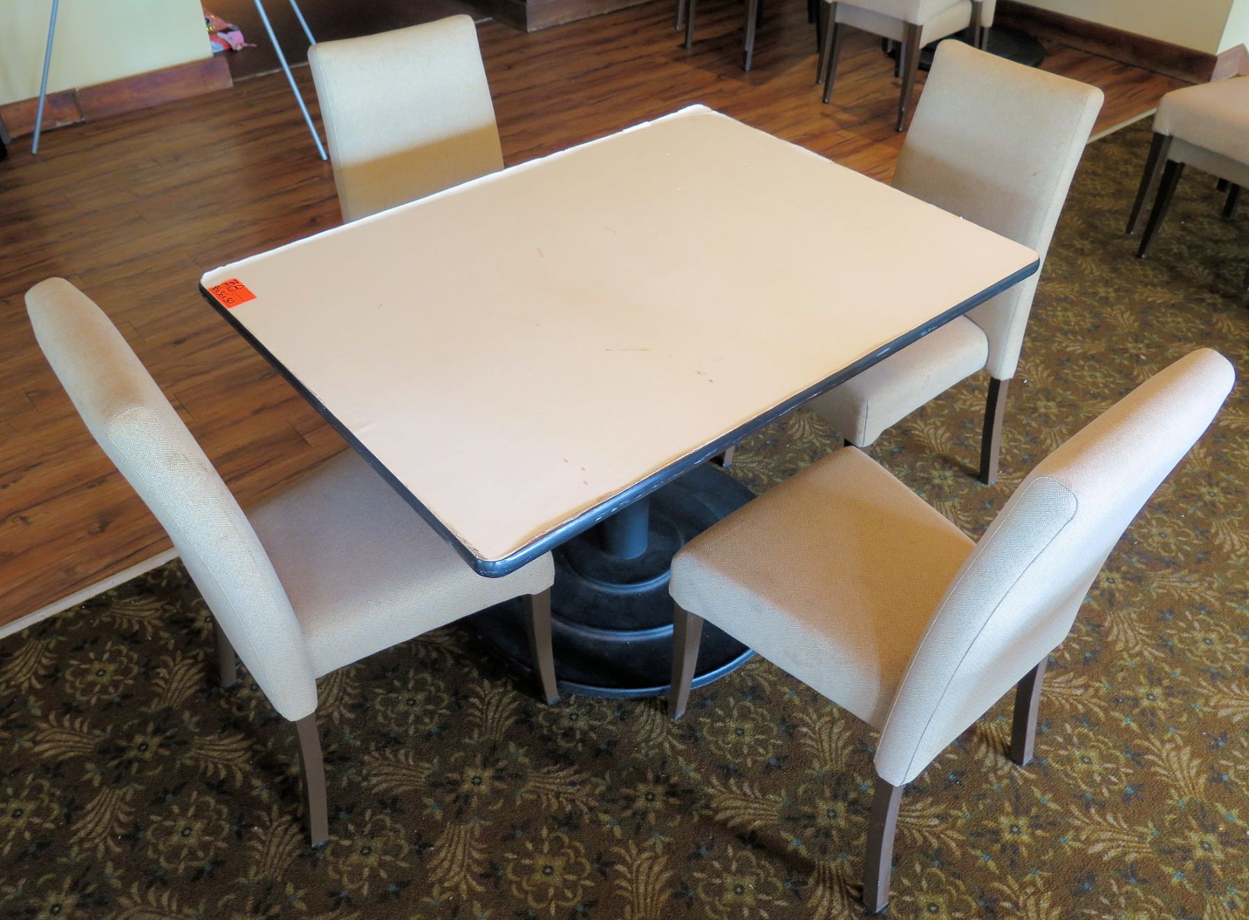 White Table w/ Pedestal Base 48"x36"x30" w/ 4 Upholstered Wooden Chairs