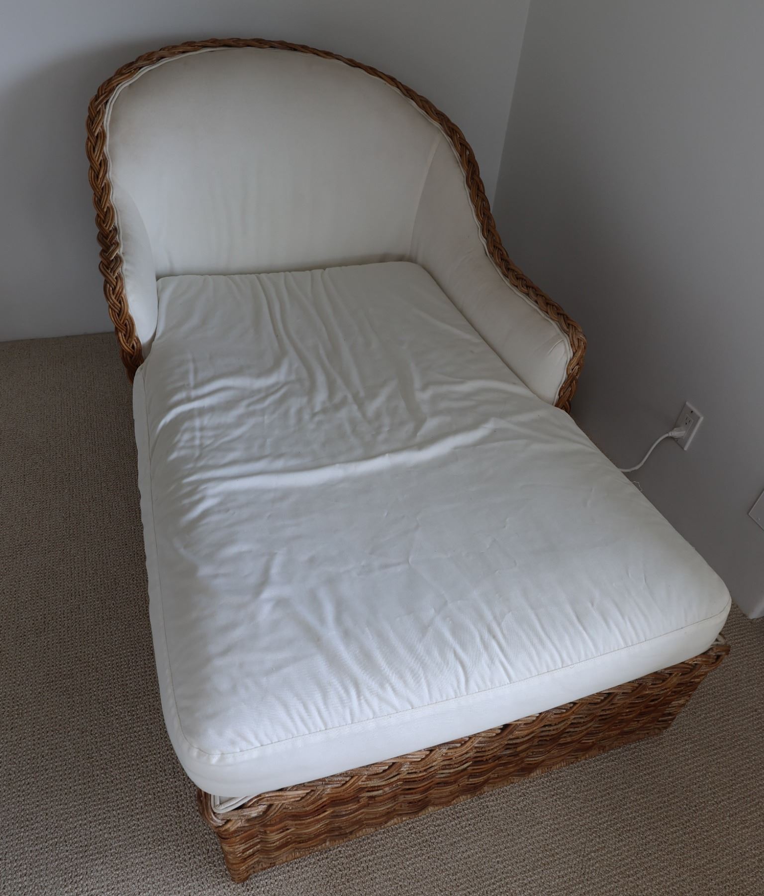 Wicker Rattan Chaise Lounge w/ White Cushion 59" x 36" x 38"H