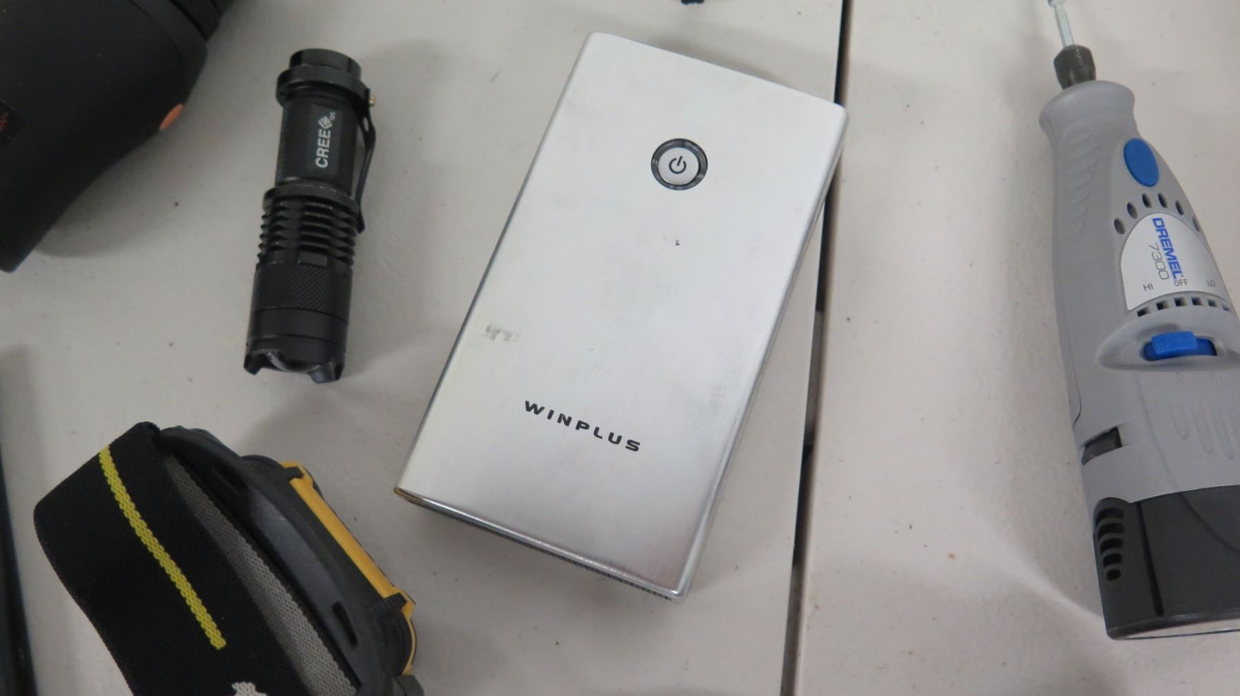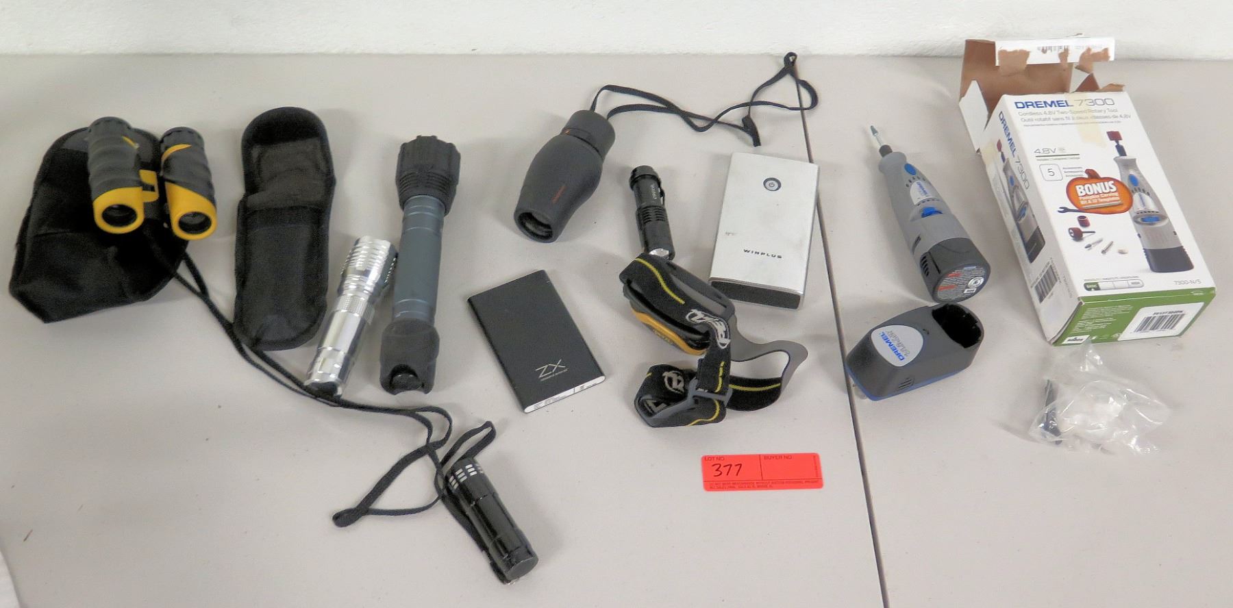 WinPlus Power Bank, Binoculars, Dremel Tool, Misc Flashlights, etc