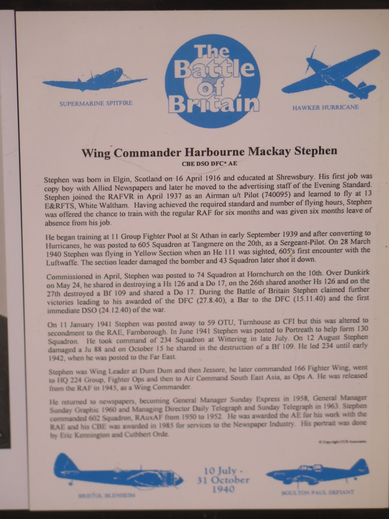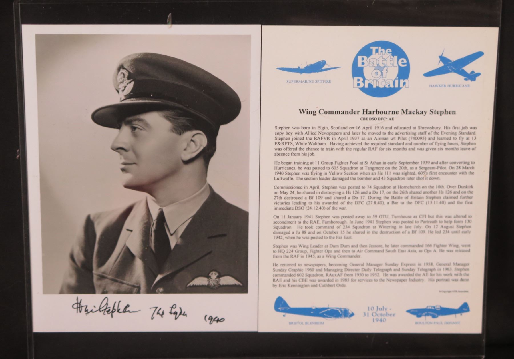 Wing Commander Harbourne Mackay Stephen Battle of Britain Signed Photo & Bio