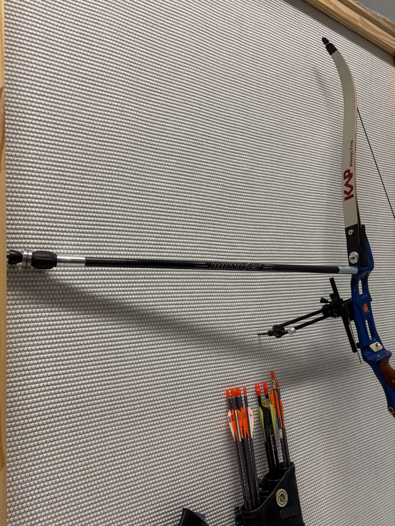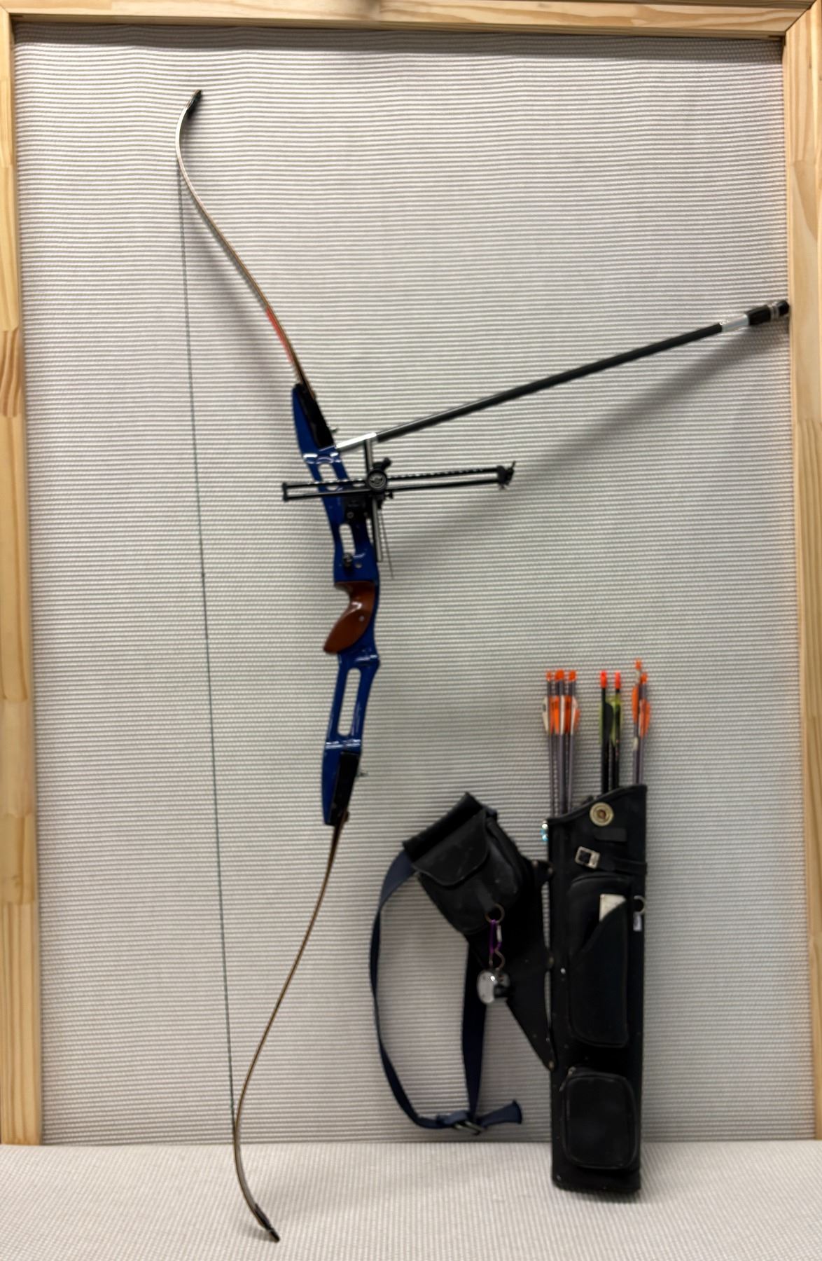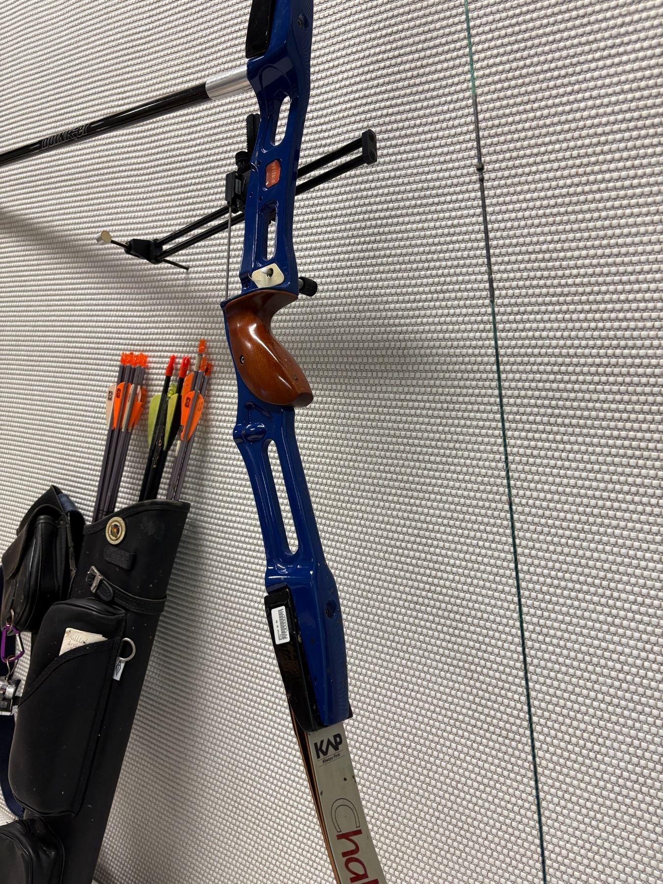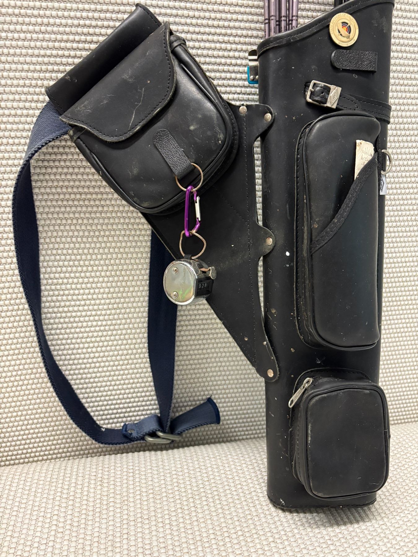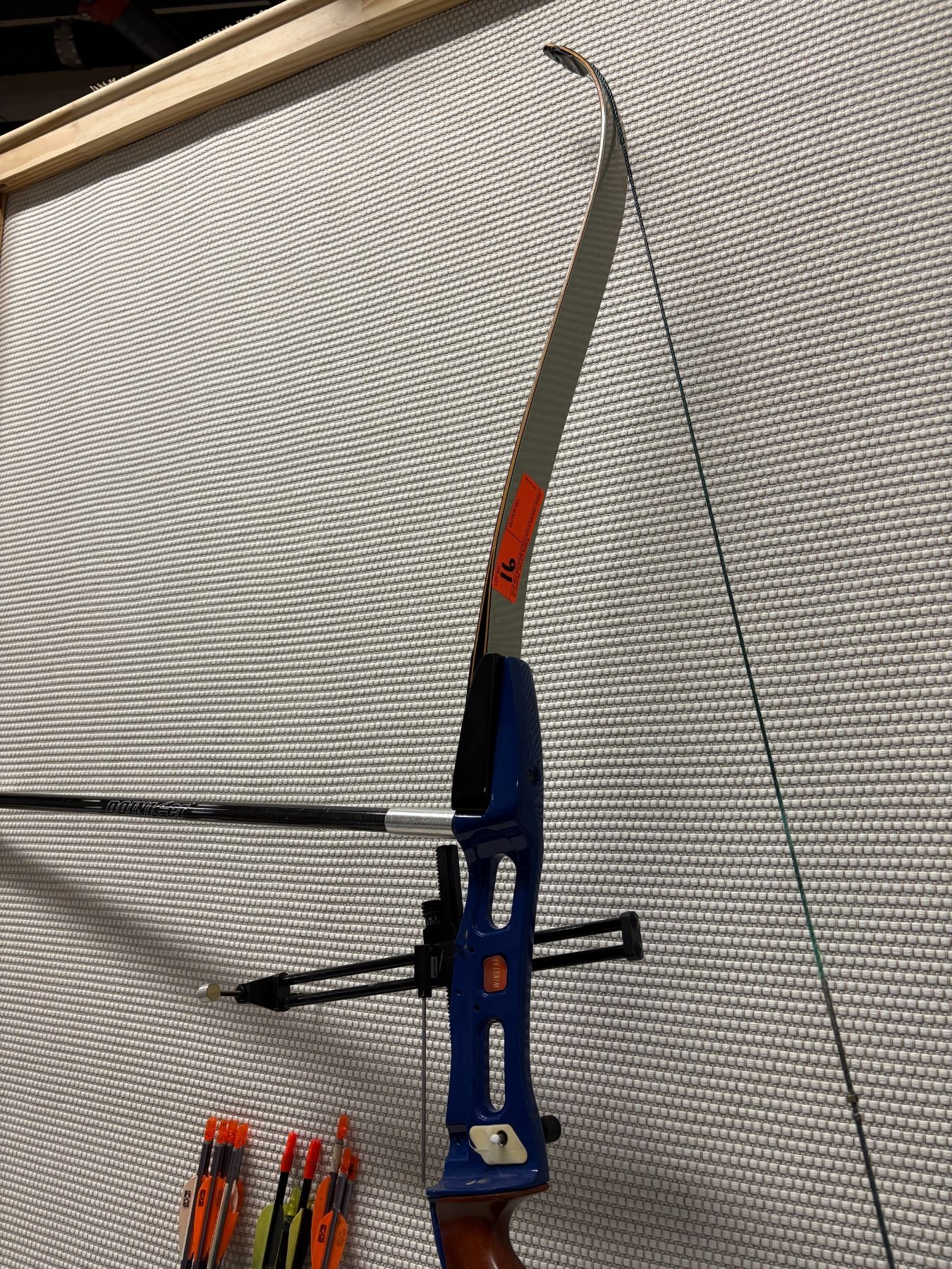 Seller reports the riser is a Winstar 25" right hand with KAP limbs. It is equipped with a button, clicker, hand made Flemish twist string, stabilizer with doinker, and a rare Arten sight. This bow is smooth and ready to take to the range. A leather quiver and platinum Easton arrows complete the set with a right handed finger tab.