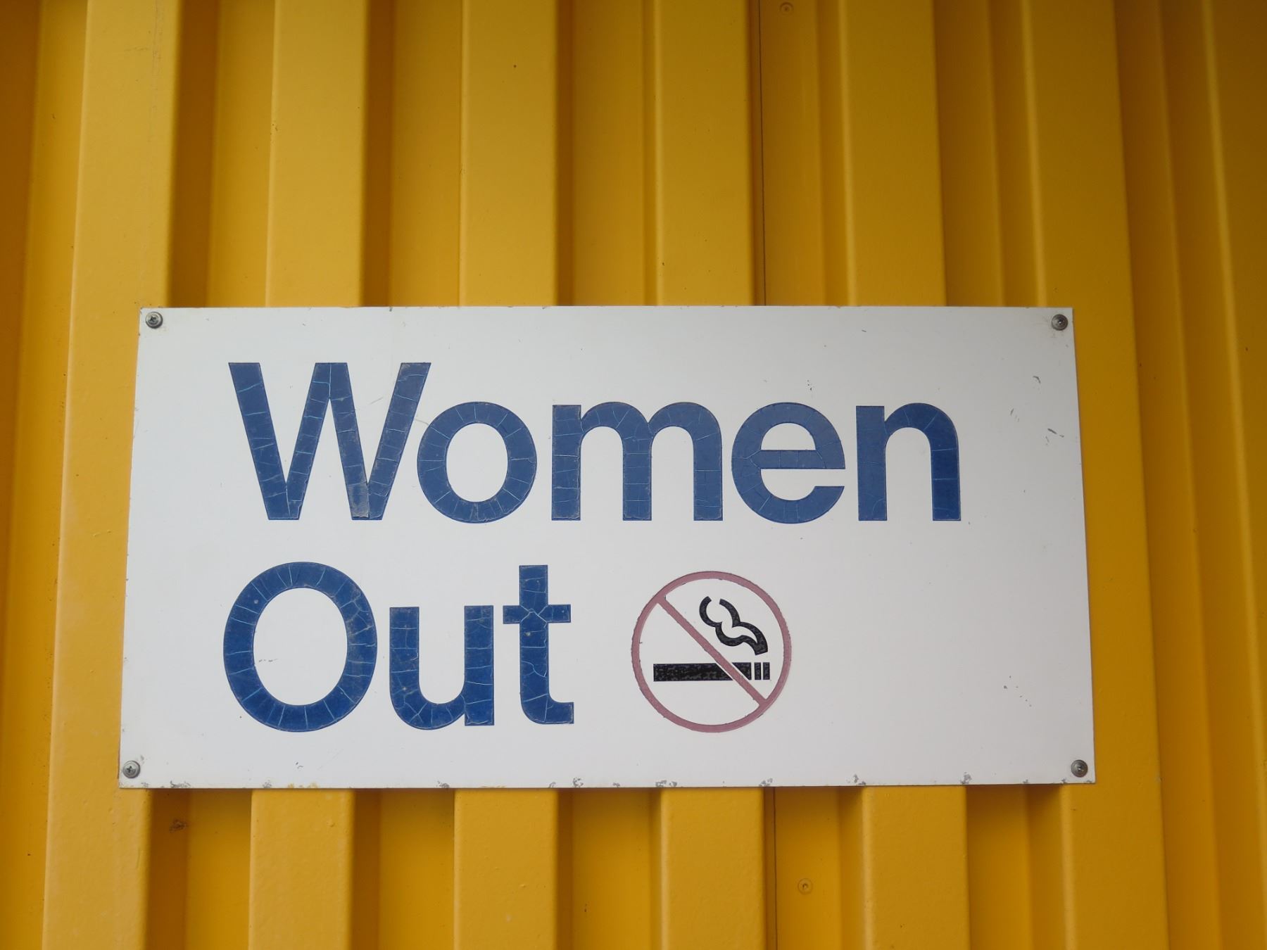 Women Out Sign w/ No Smoking Logo 24"x12". Note: Signs will be removed if hanging prior to pick up