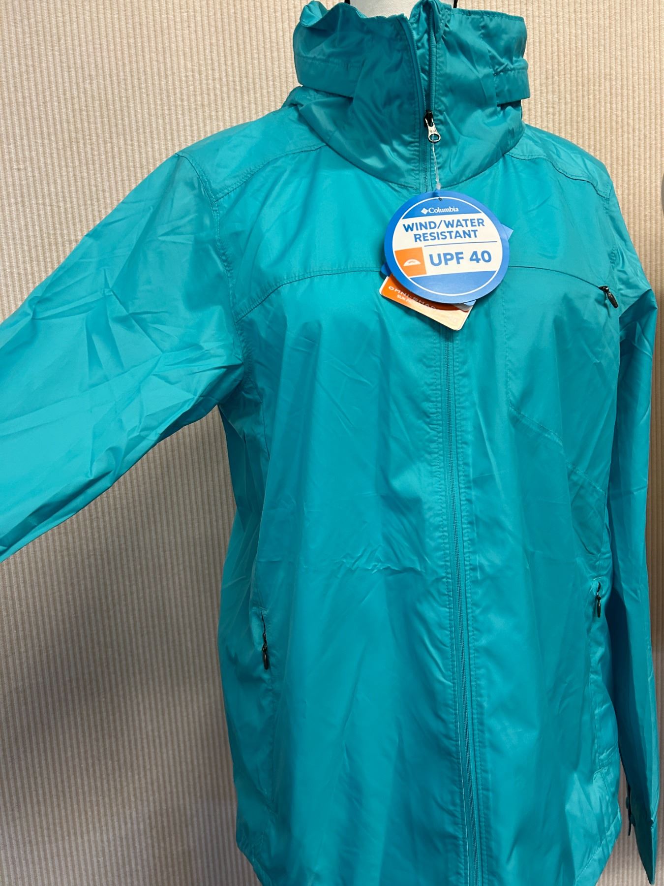 Sustina Springs Lightweight Windbreaker Jacket. Has hidden hoodie that zips up when not in use.