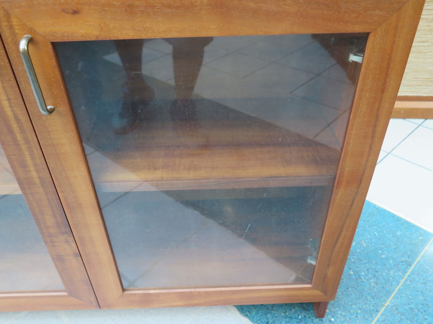 Wood 3 Section Sideboard Cabinet w/ Glass Doors & Inside Shelf 60"x13"x29"