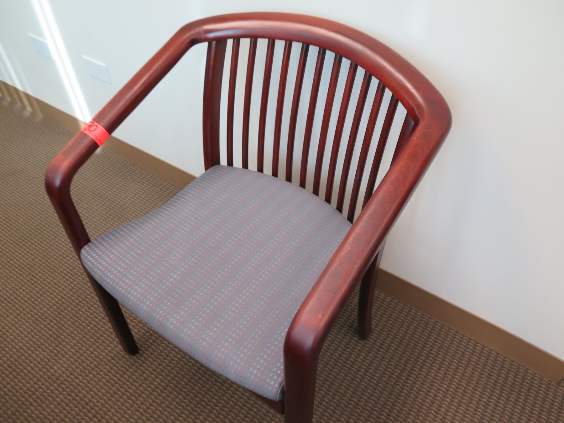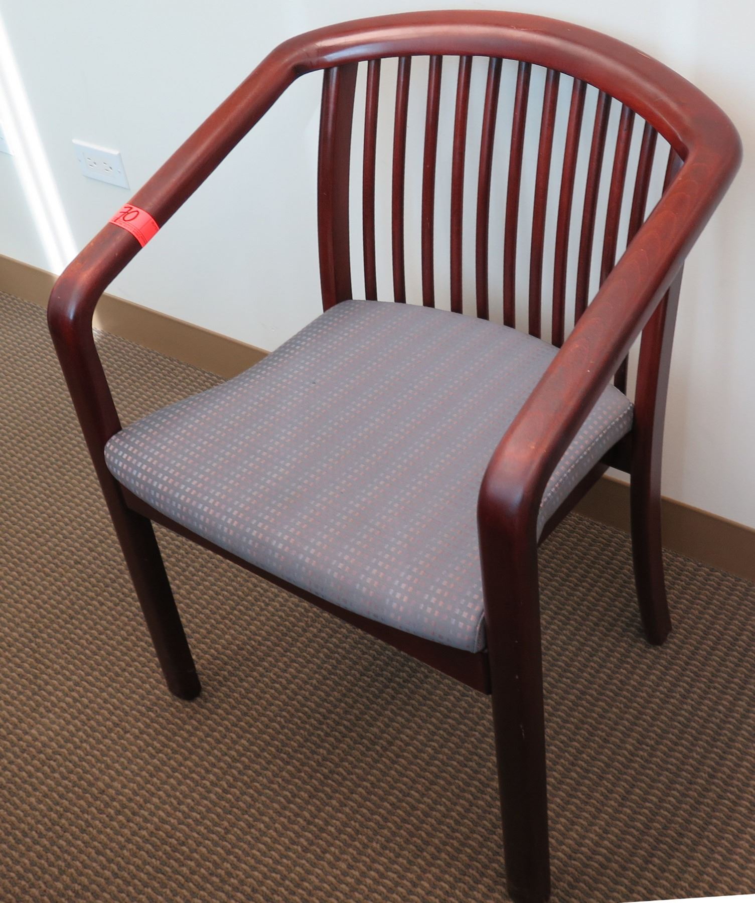 Wood Armchair w/ Slatted Back & Upholstered Seat