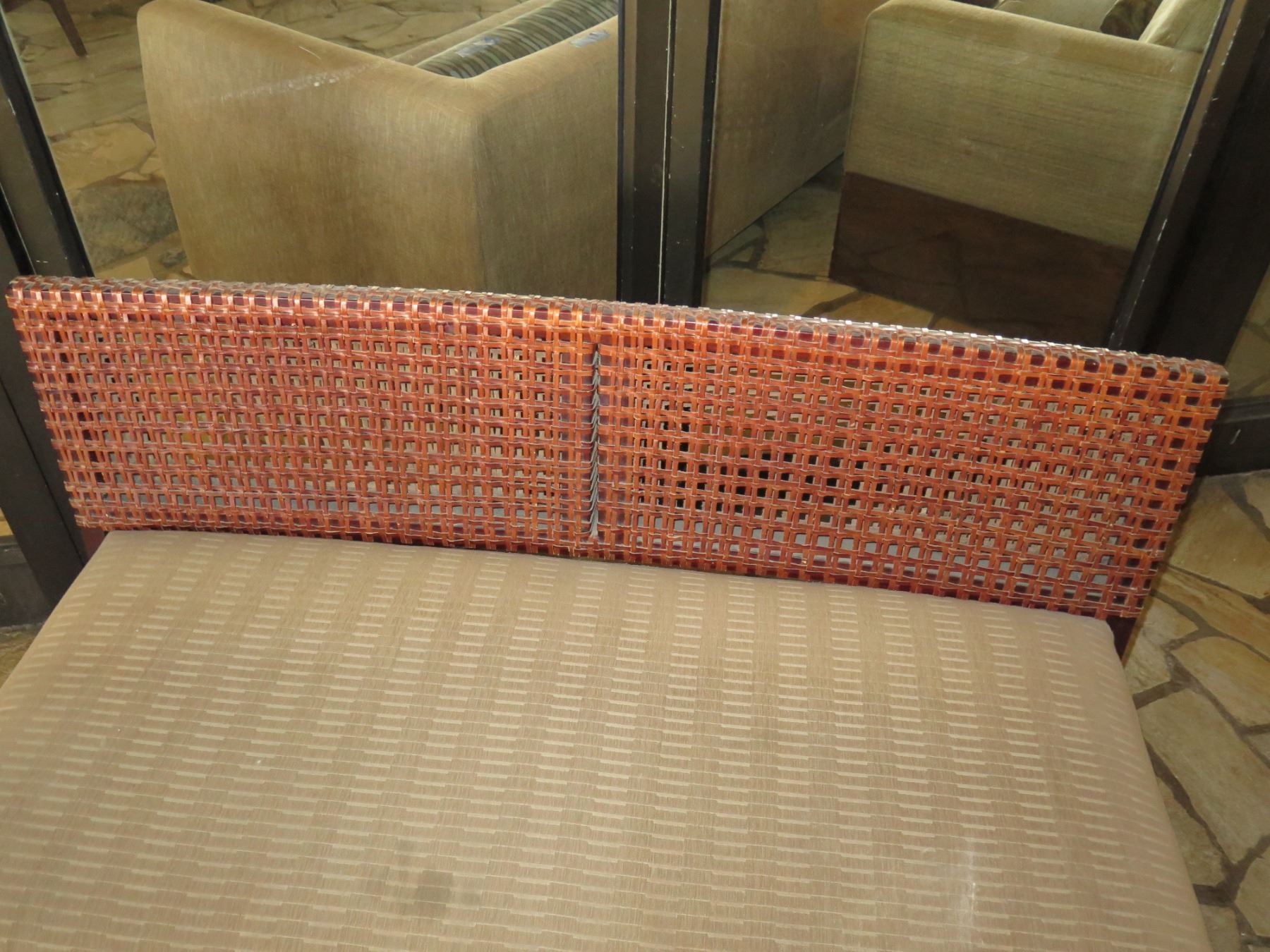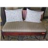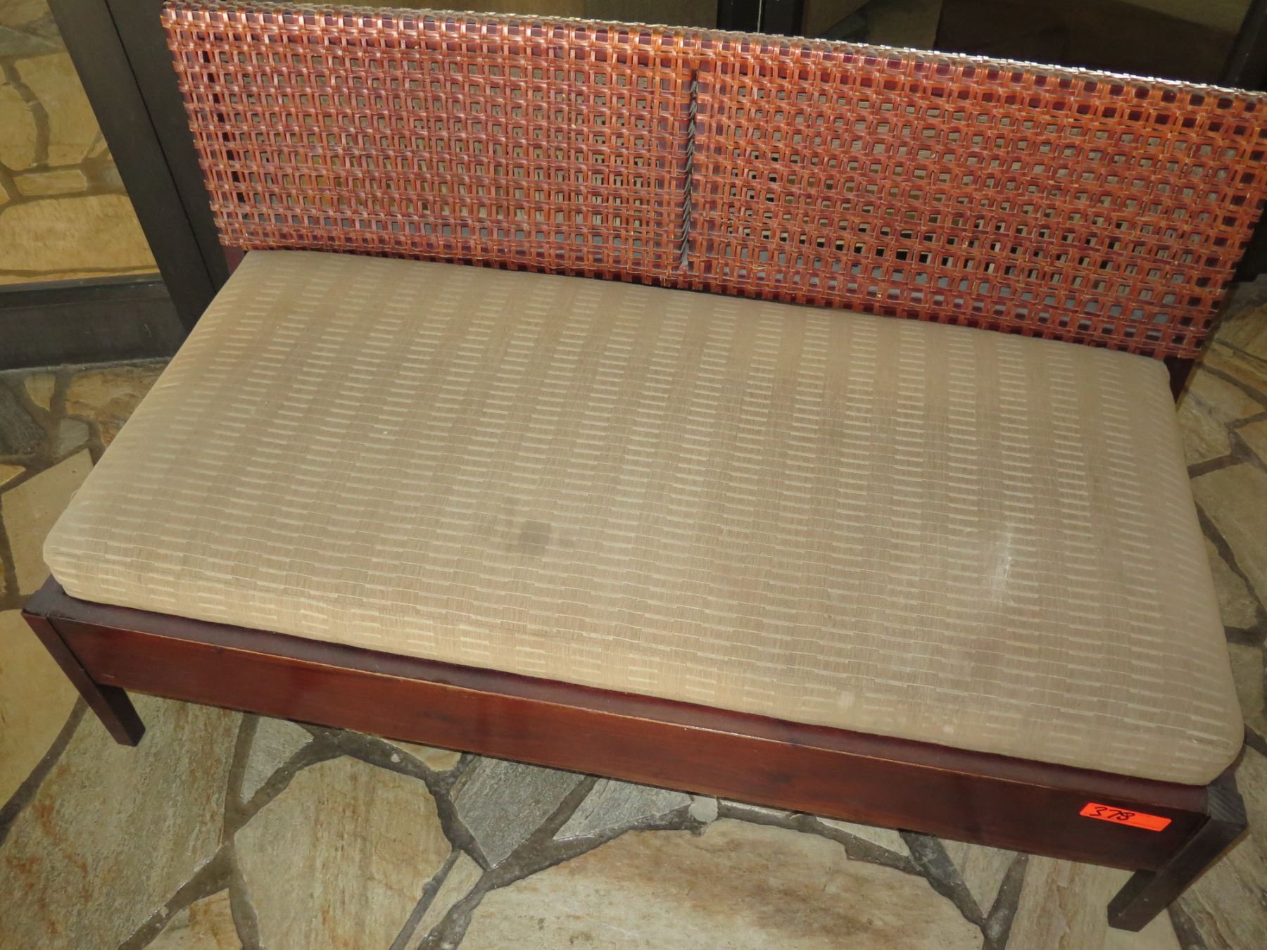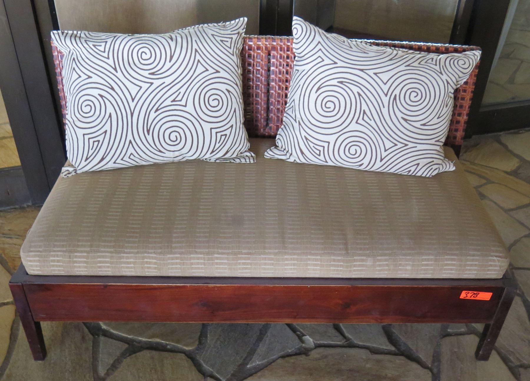 Wood Bench w/ Seat Cushion, Woven Backrest & 2 Decorative Pillows