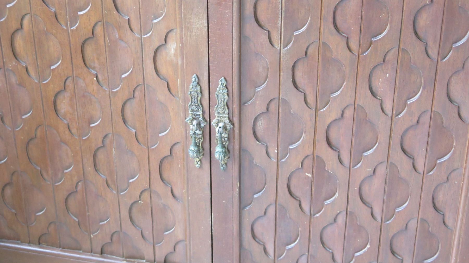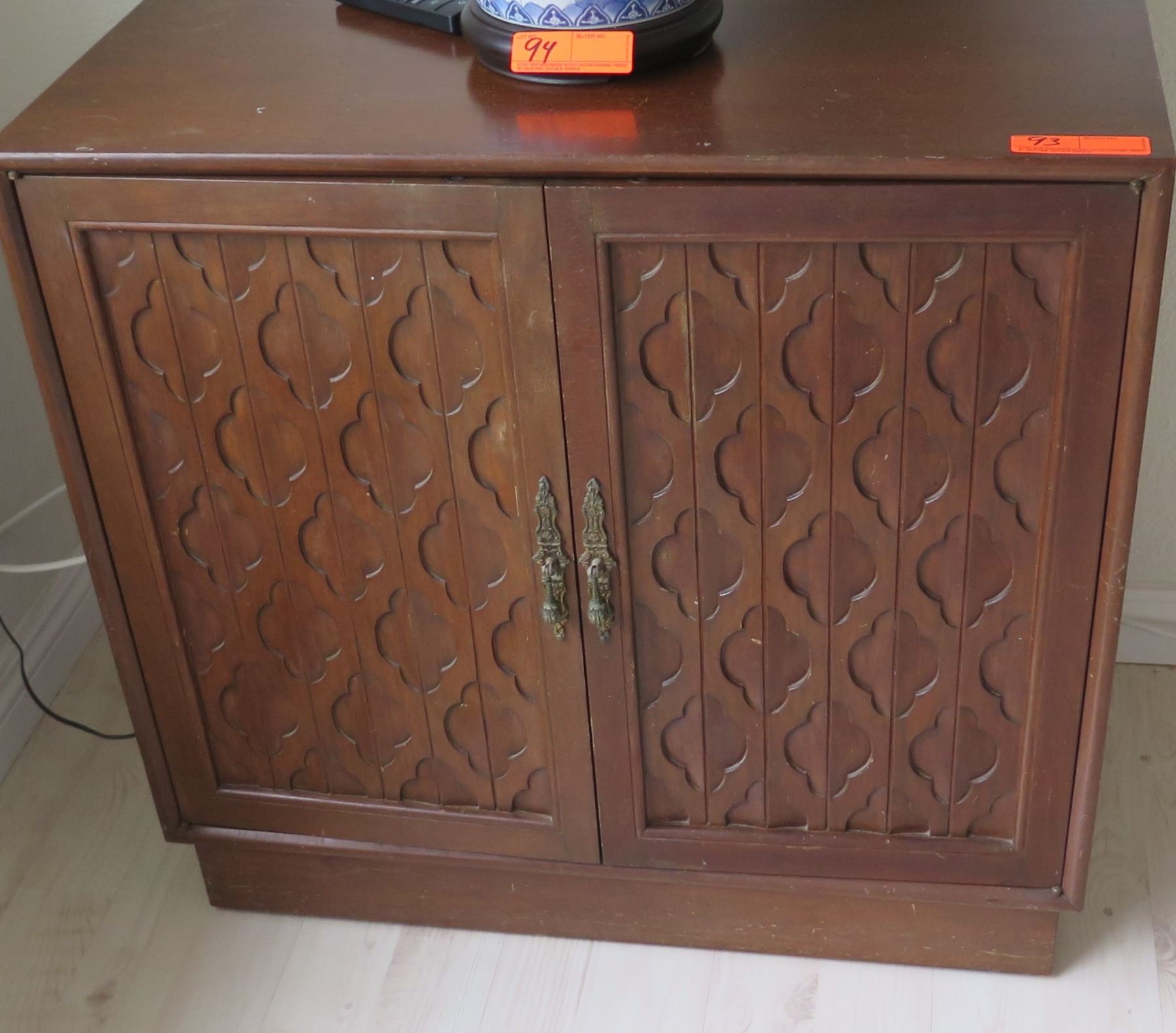 Wood Cabinet w/ Carved Door Panels , 32" x 15" X 30"H
