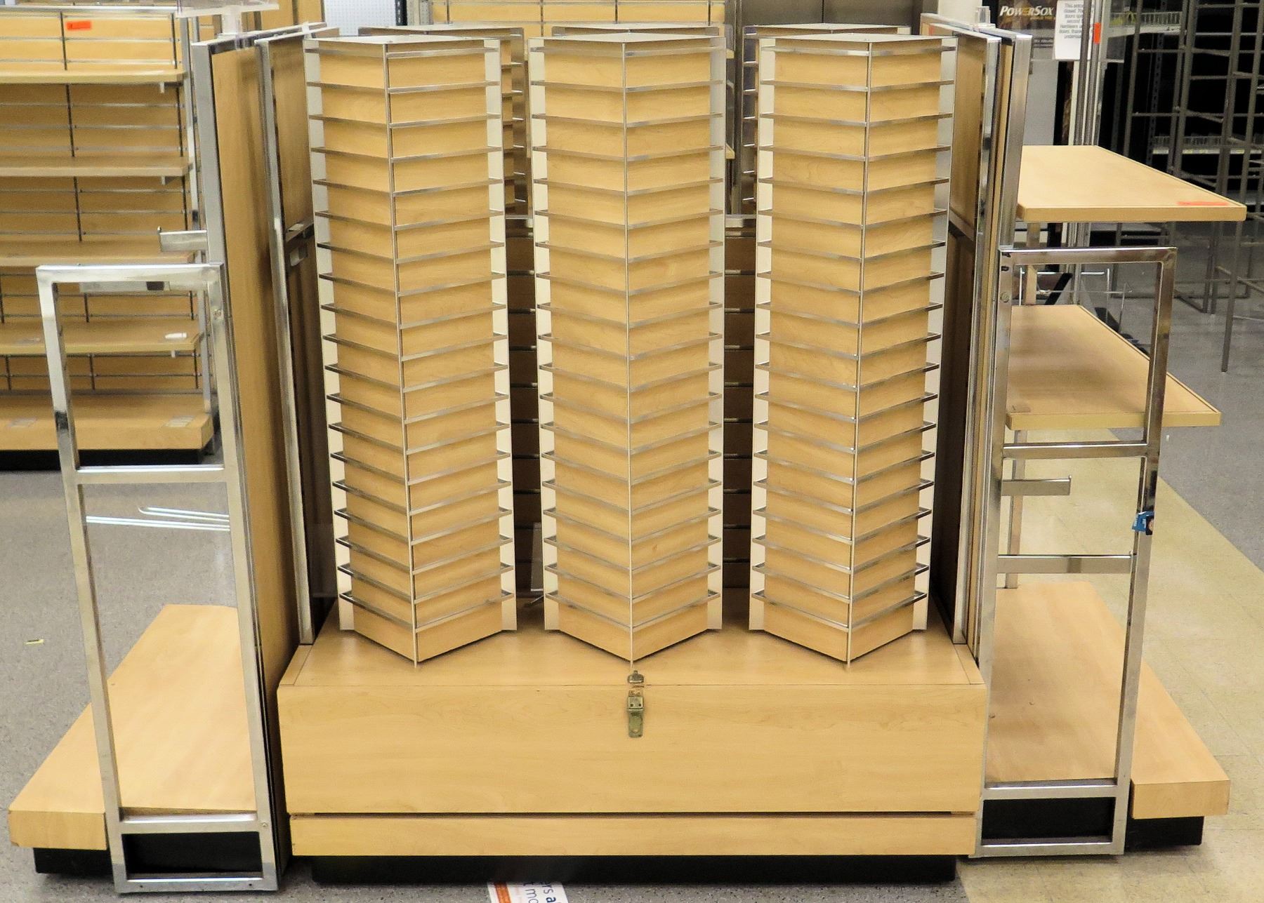 Wood & Chrome Rack w/ 6 Rotating Square Jewelry Display Racks 96"L x 39"D x 63"H