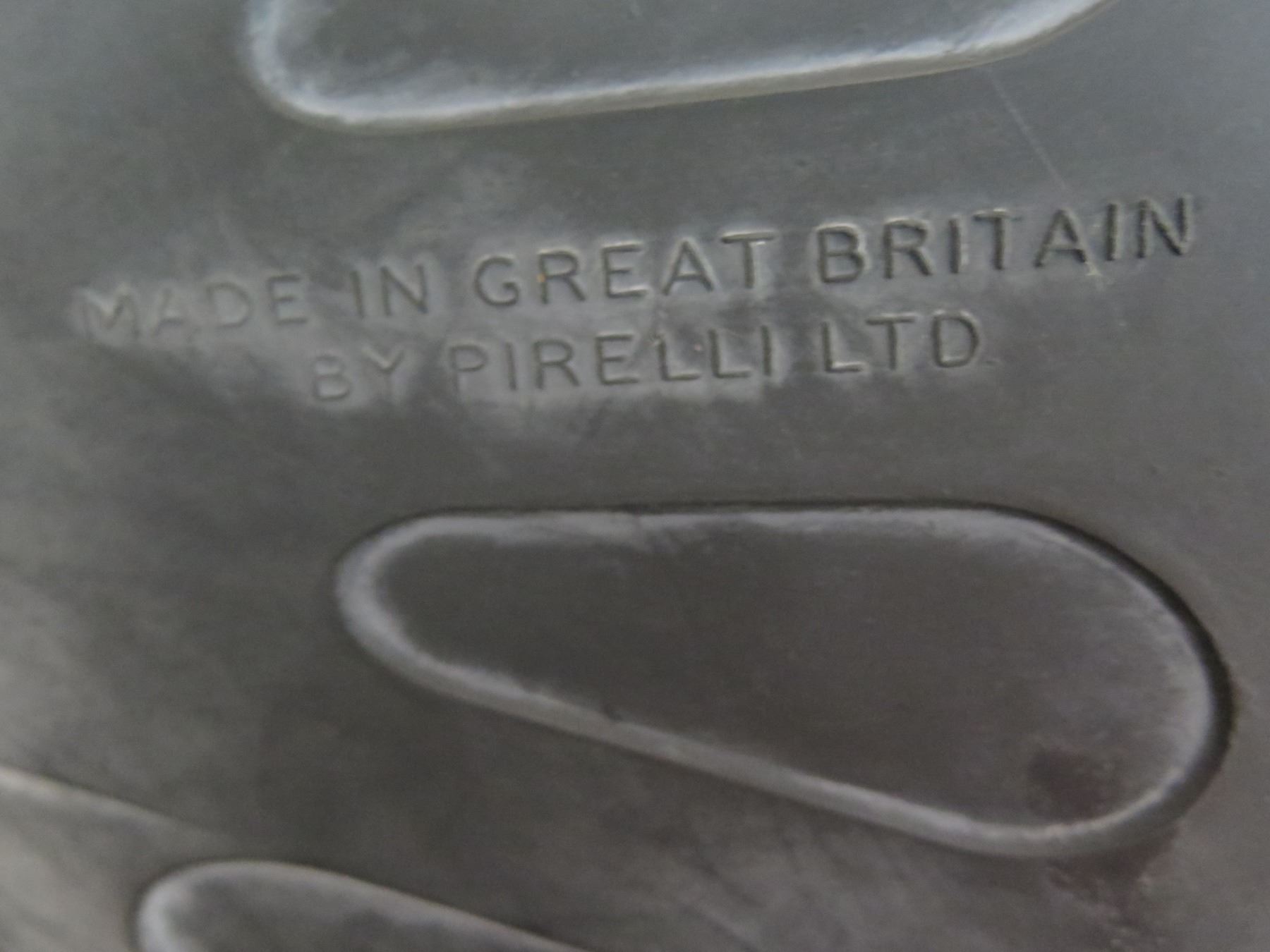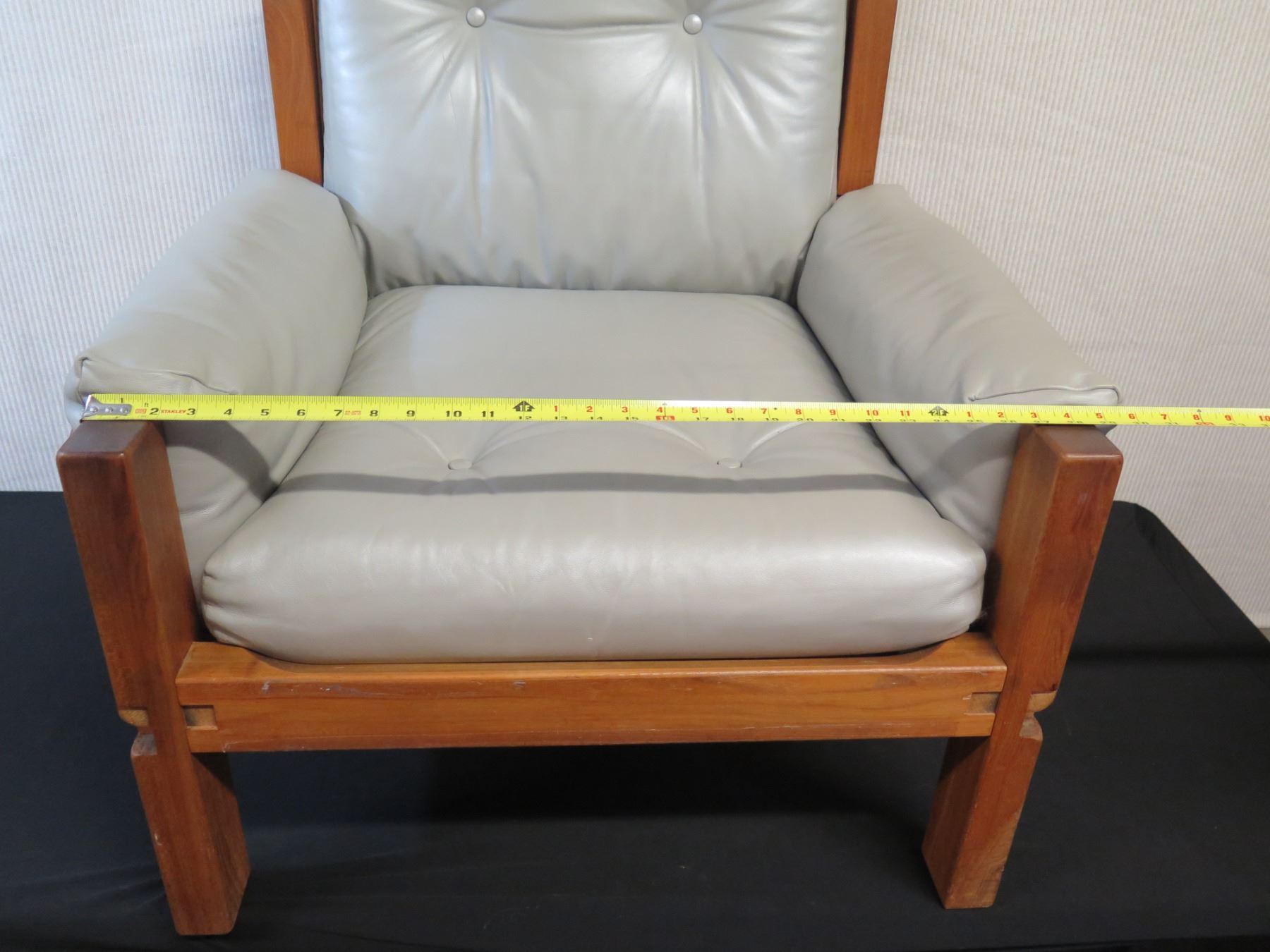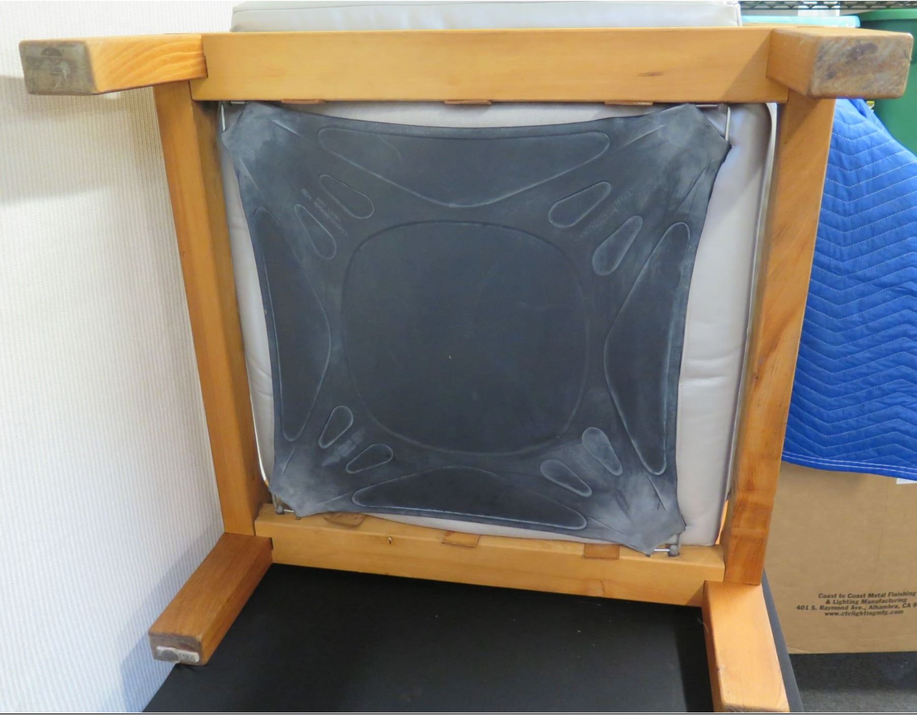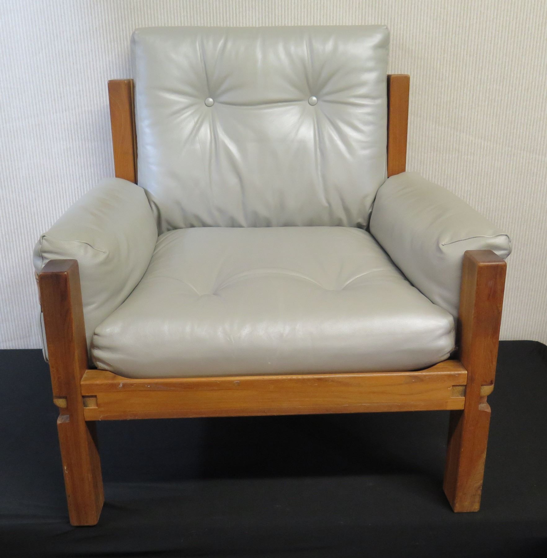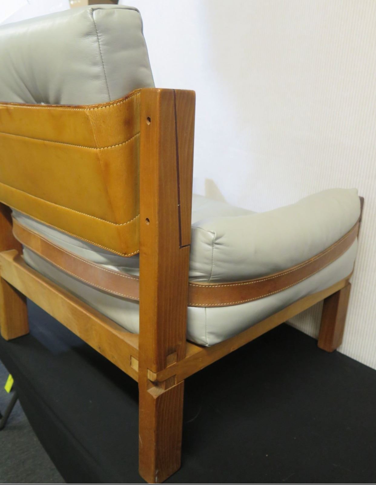Wood-Framed Natural Leather Armchair, Pirelli Ltd. (Great Britain) 30" x 29" x 34"H. The last picture is of this same chair when it was at another location at a different time.