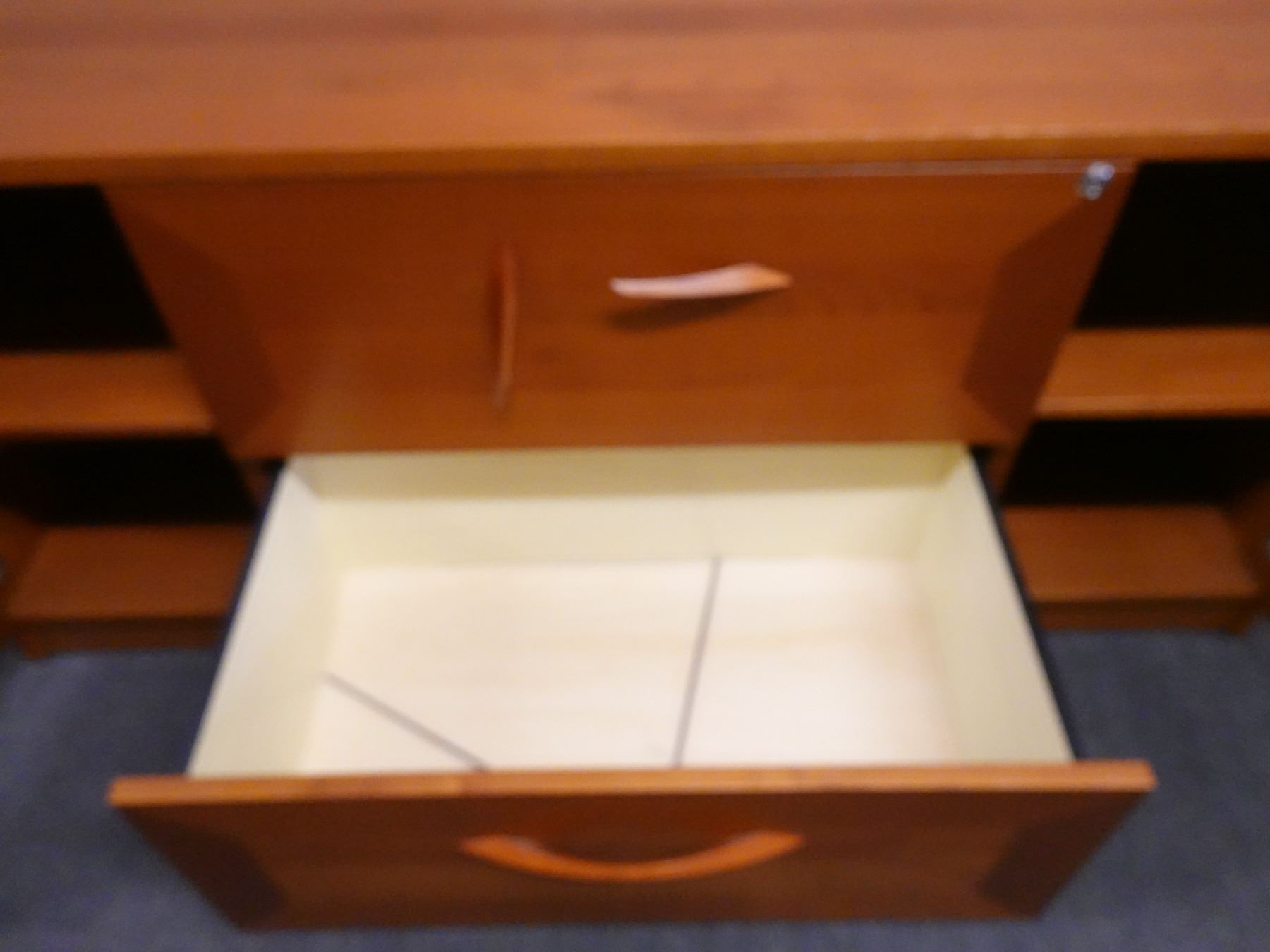 Wood Laminate Office Cabinet w/ 2 Drawers (1 handle broken) 63" x 20" x 29"H