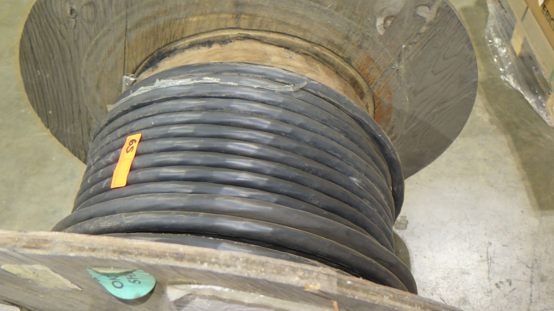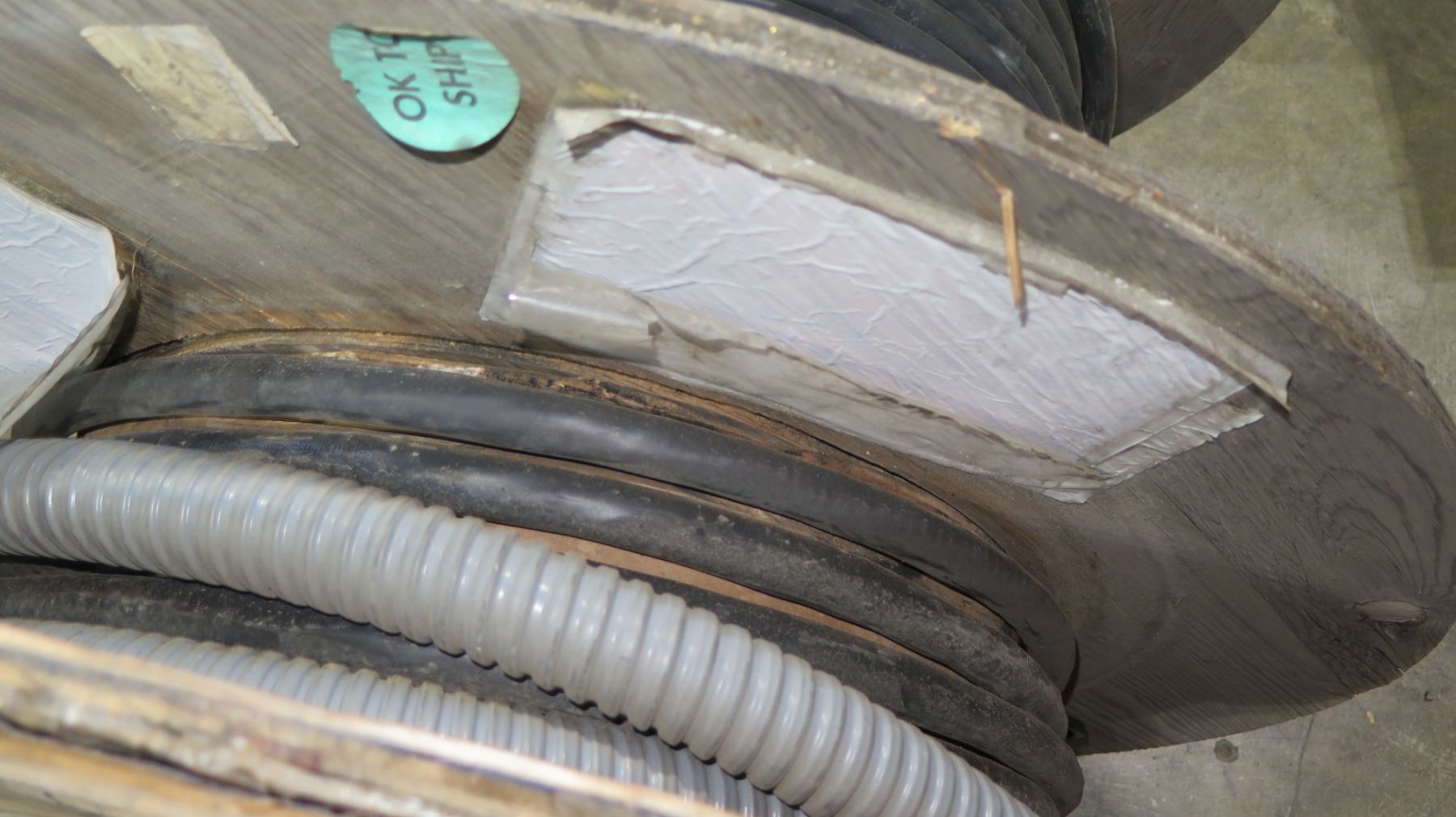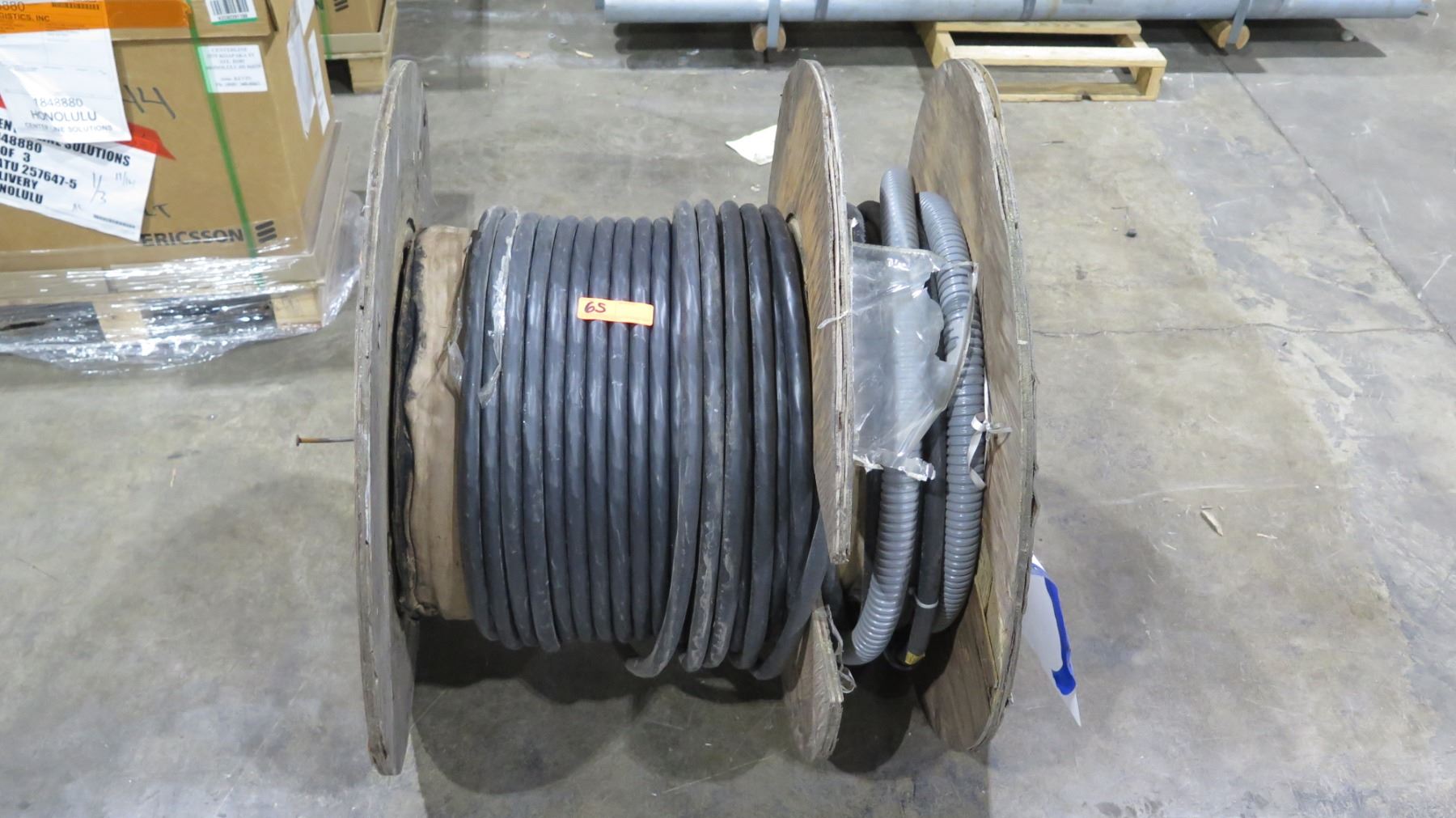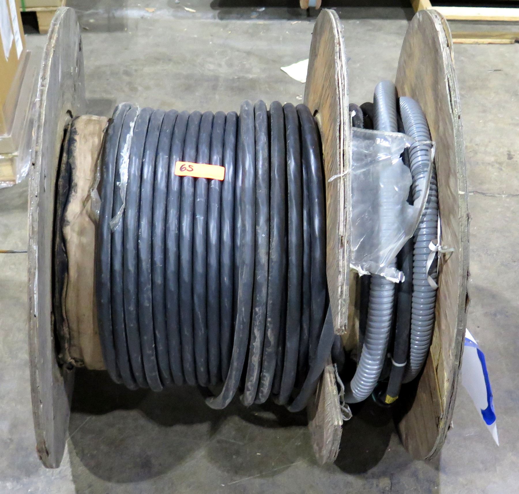 Wood Reels of Black Cable & Gray Ribbed Conduit