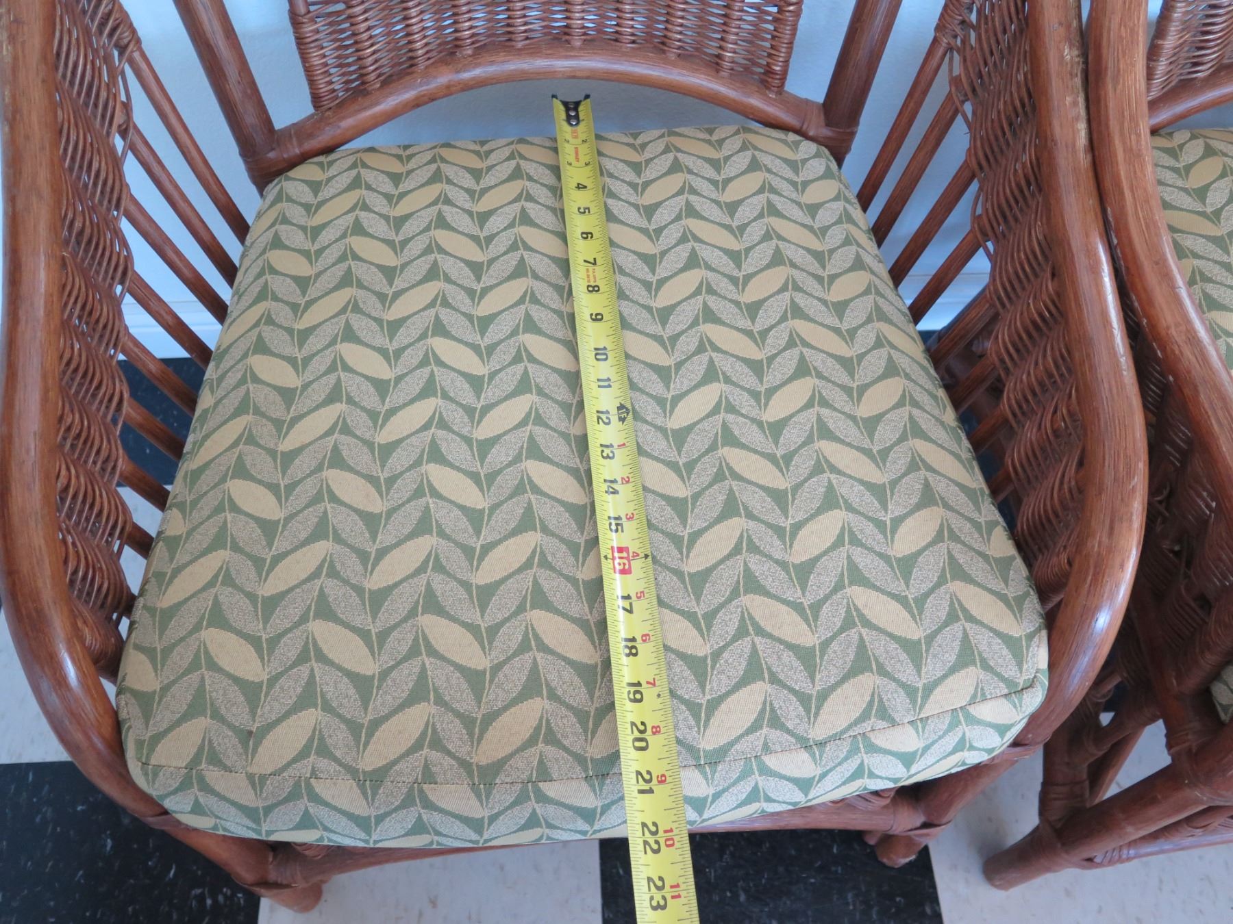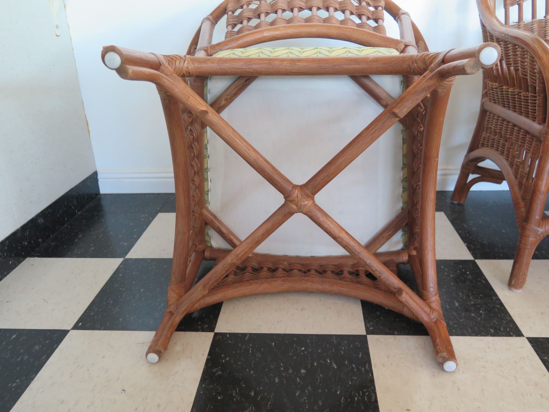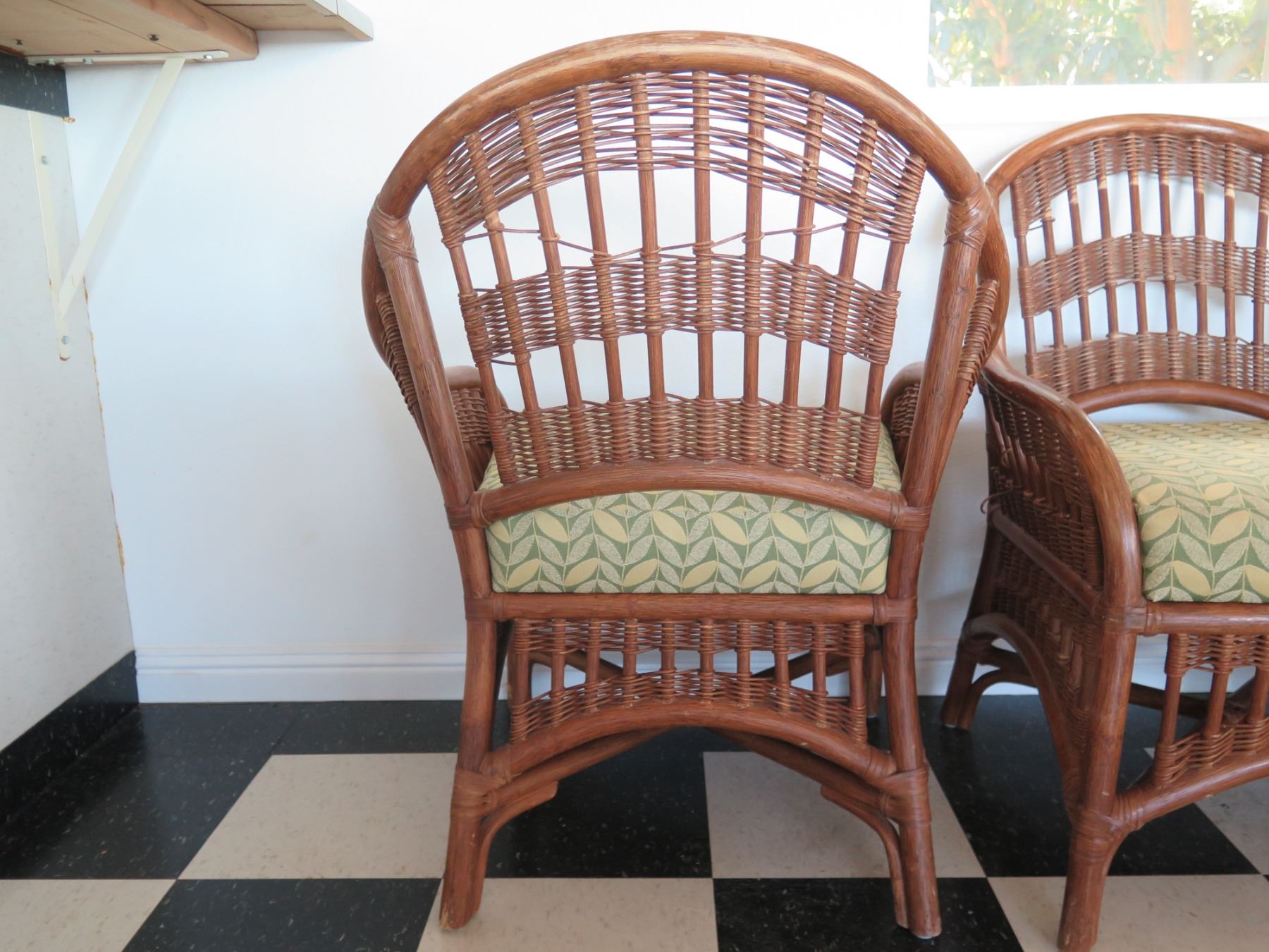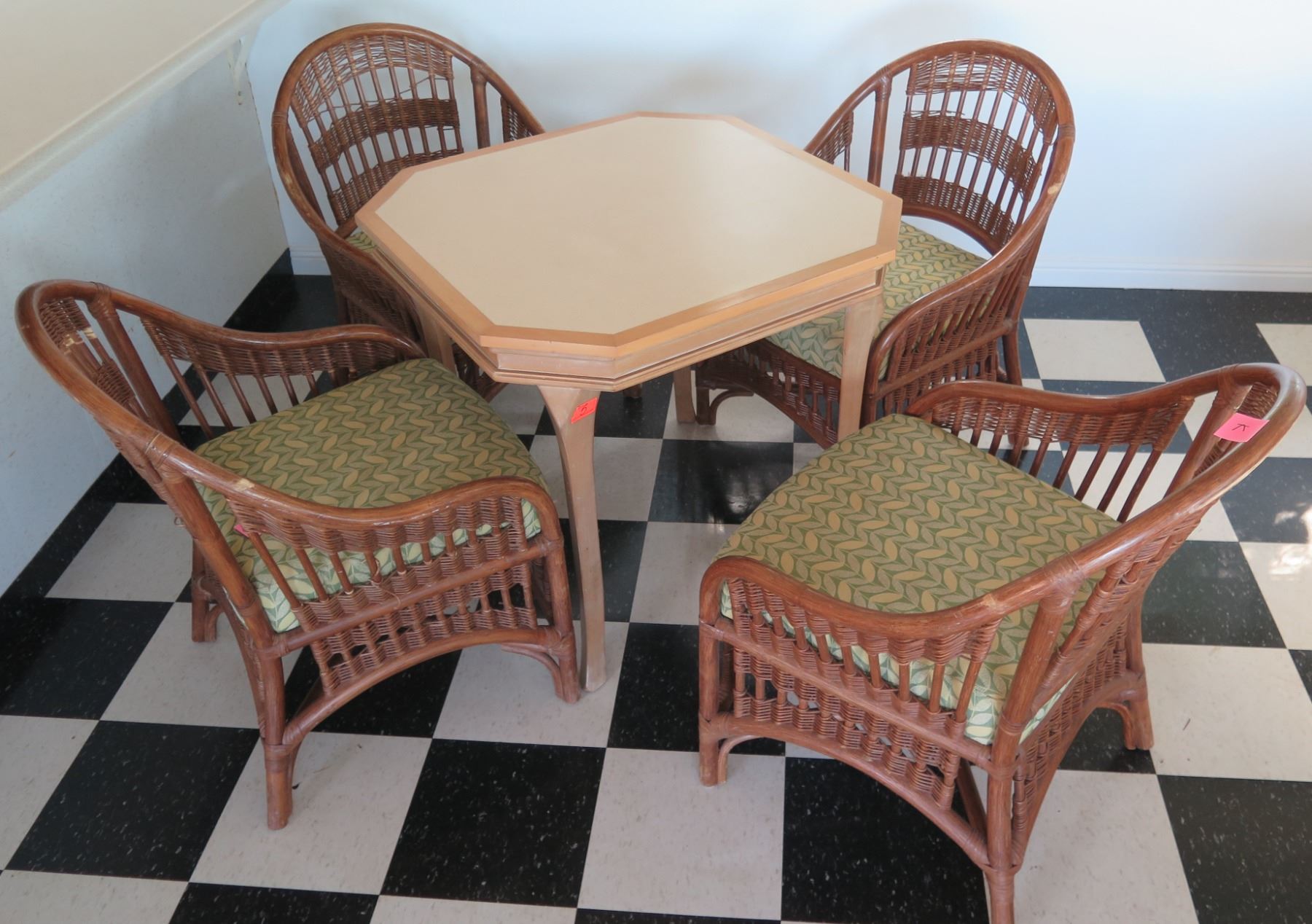 Wood & White Top Table 32"x32"x30"H & 4 Bamboo Chairs w/ Cushions 24"x21"x34"H