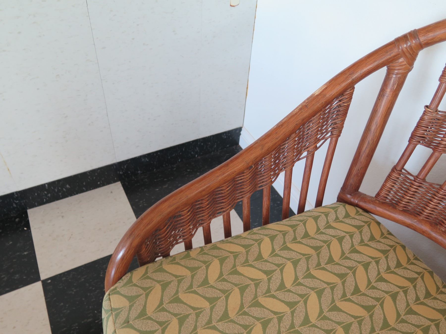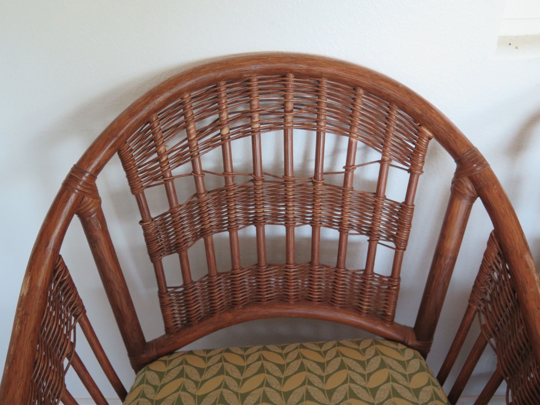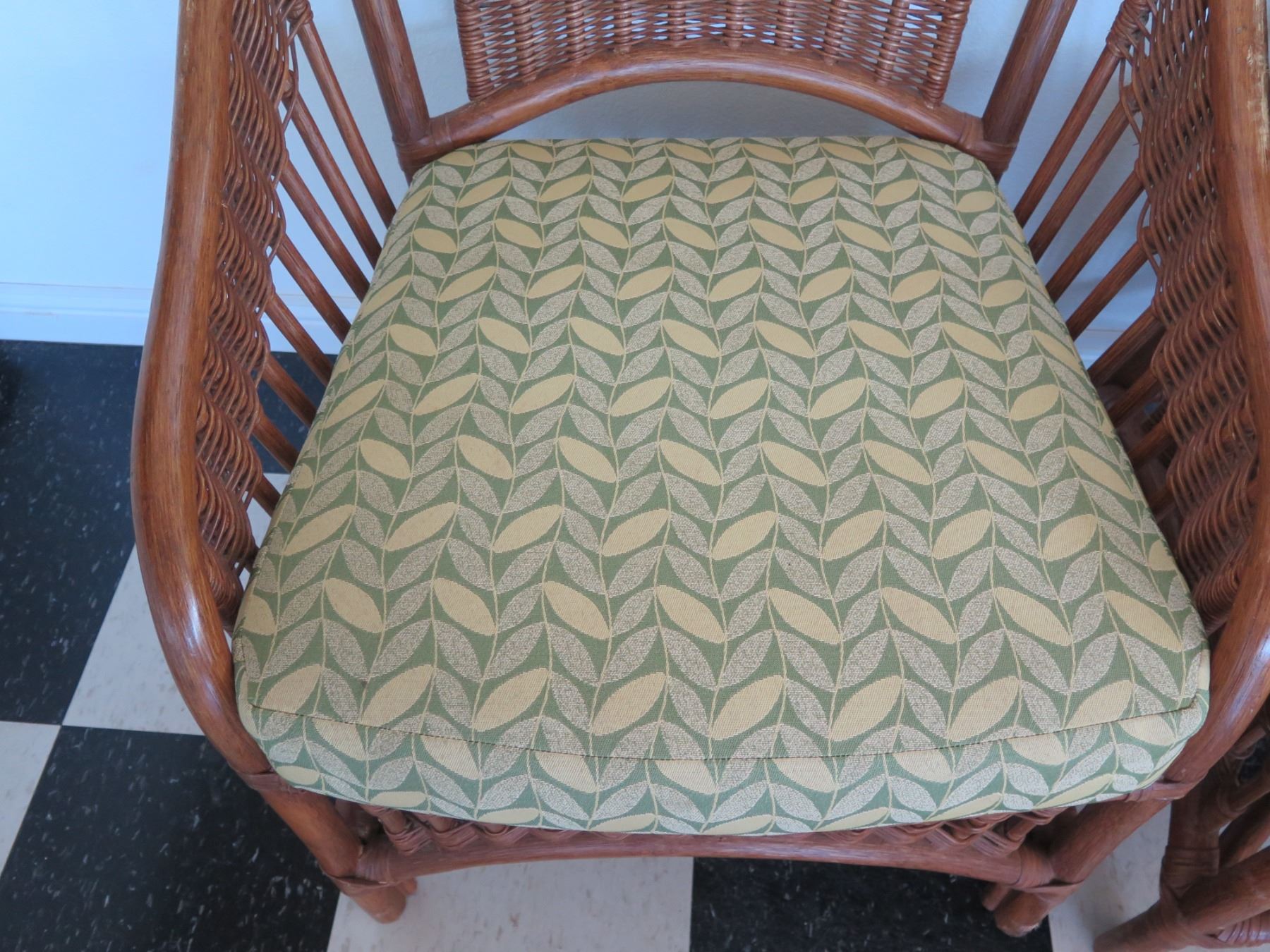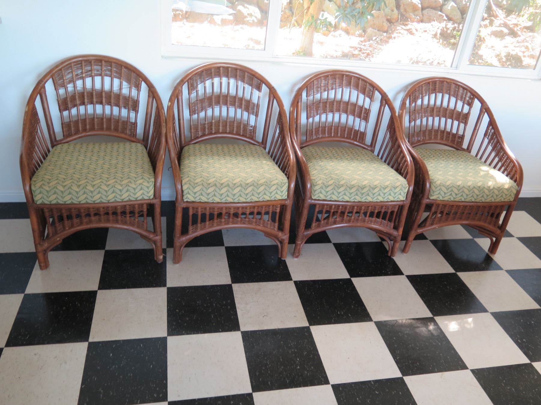 Wood & White Top Table 32"x32"x30"H & 4 Bamboo Chairs w/ Cushions 24"x21"x34"H