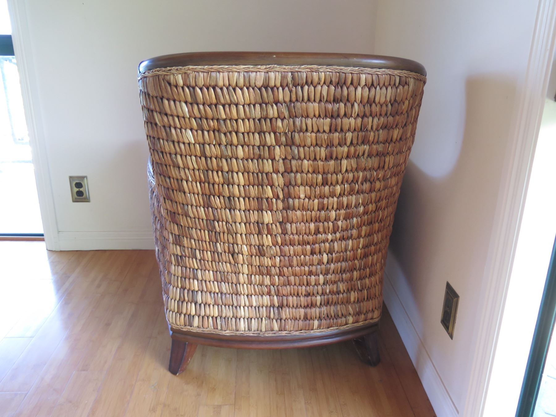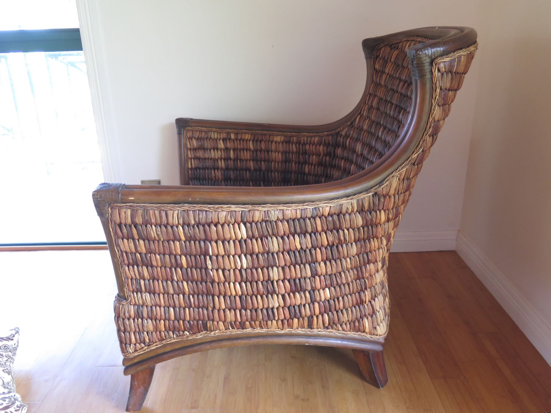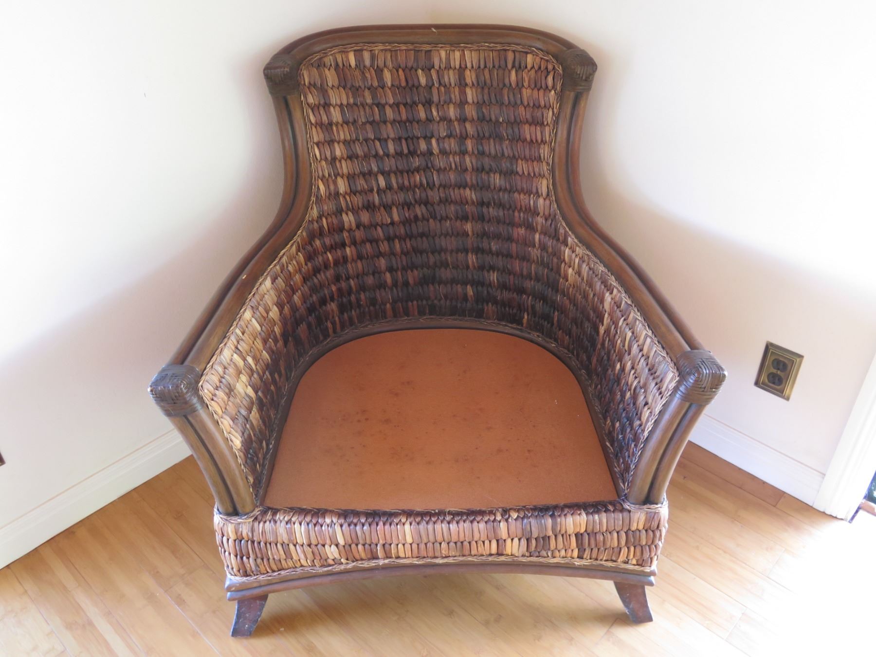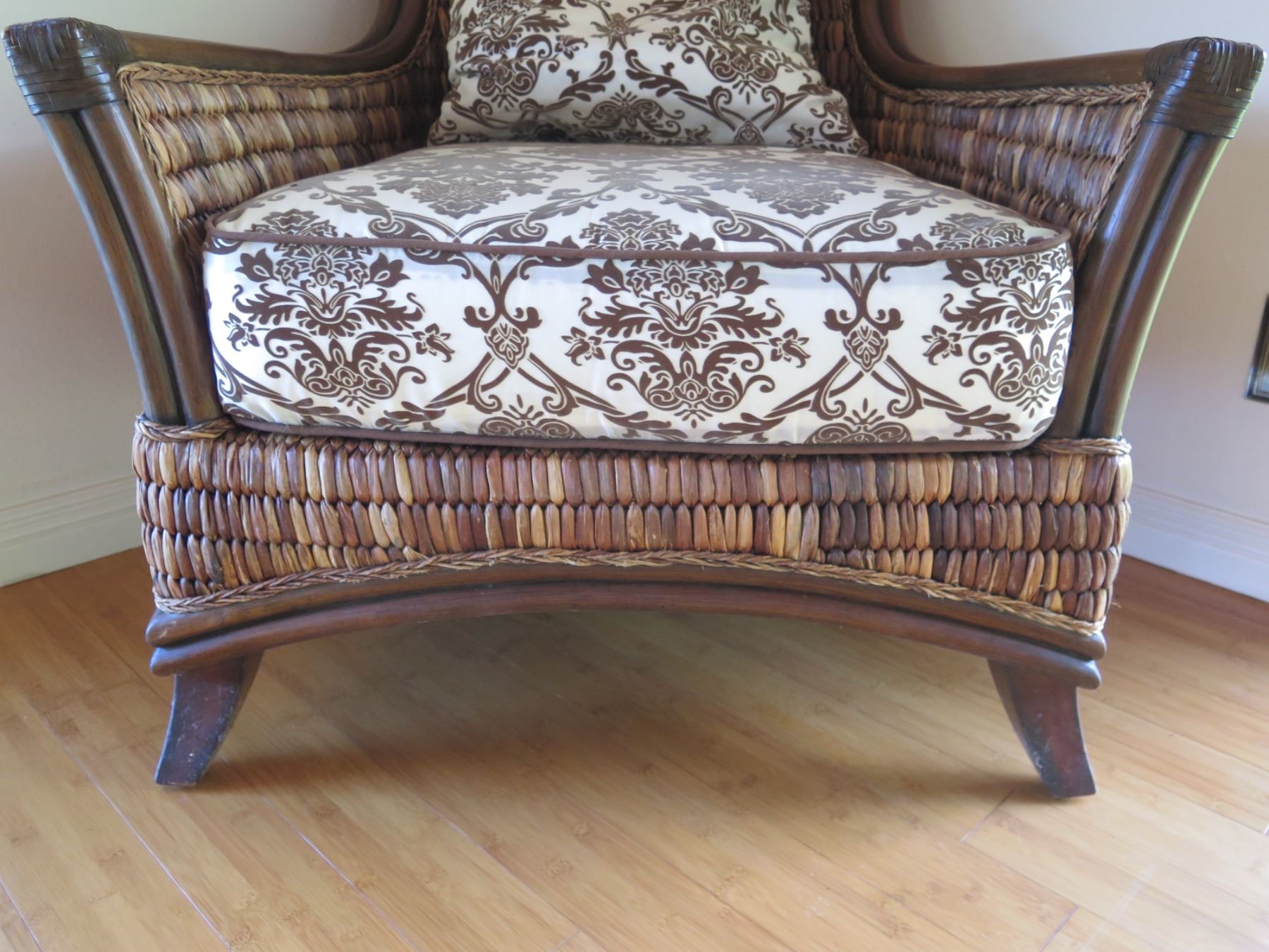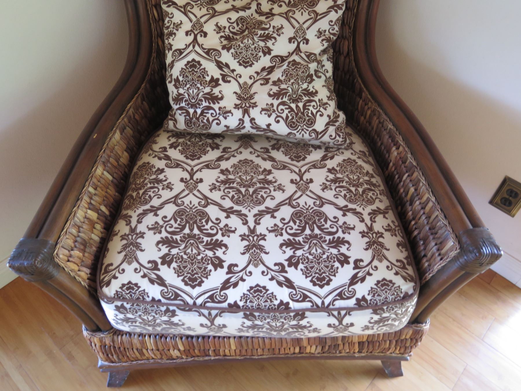 Wood & Wicker Chair w/ Floral Seat & Back Cushions