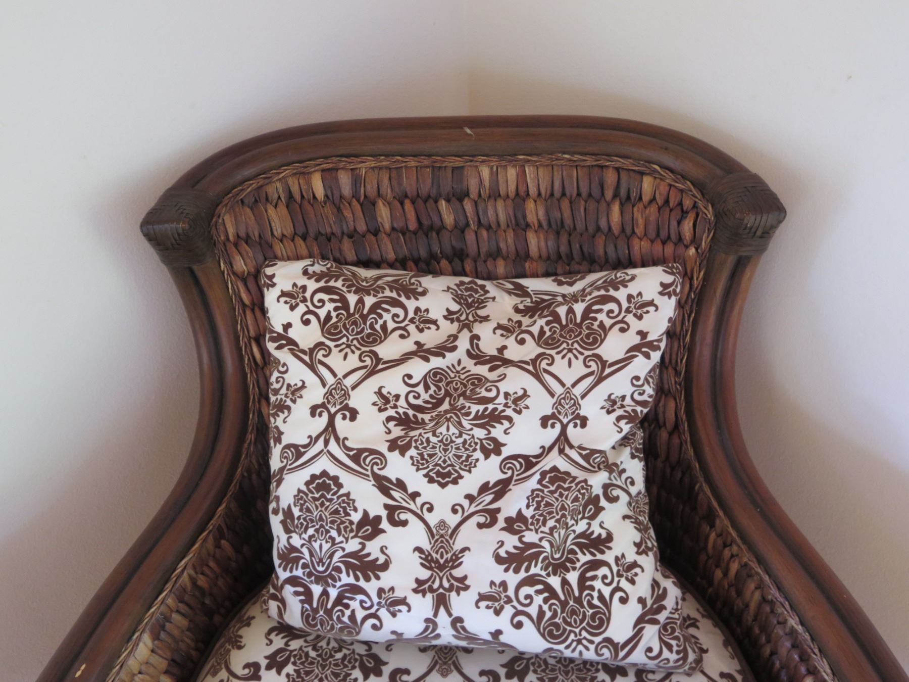 Wood & Wicker Chair w/ Floral Seat & Back Cushions