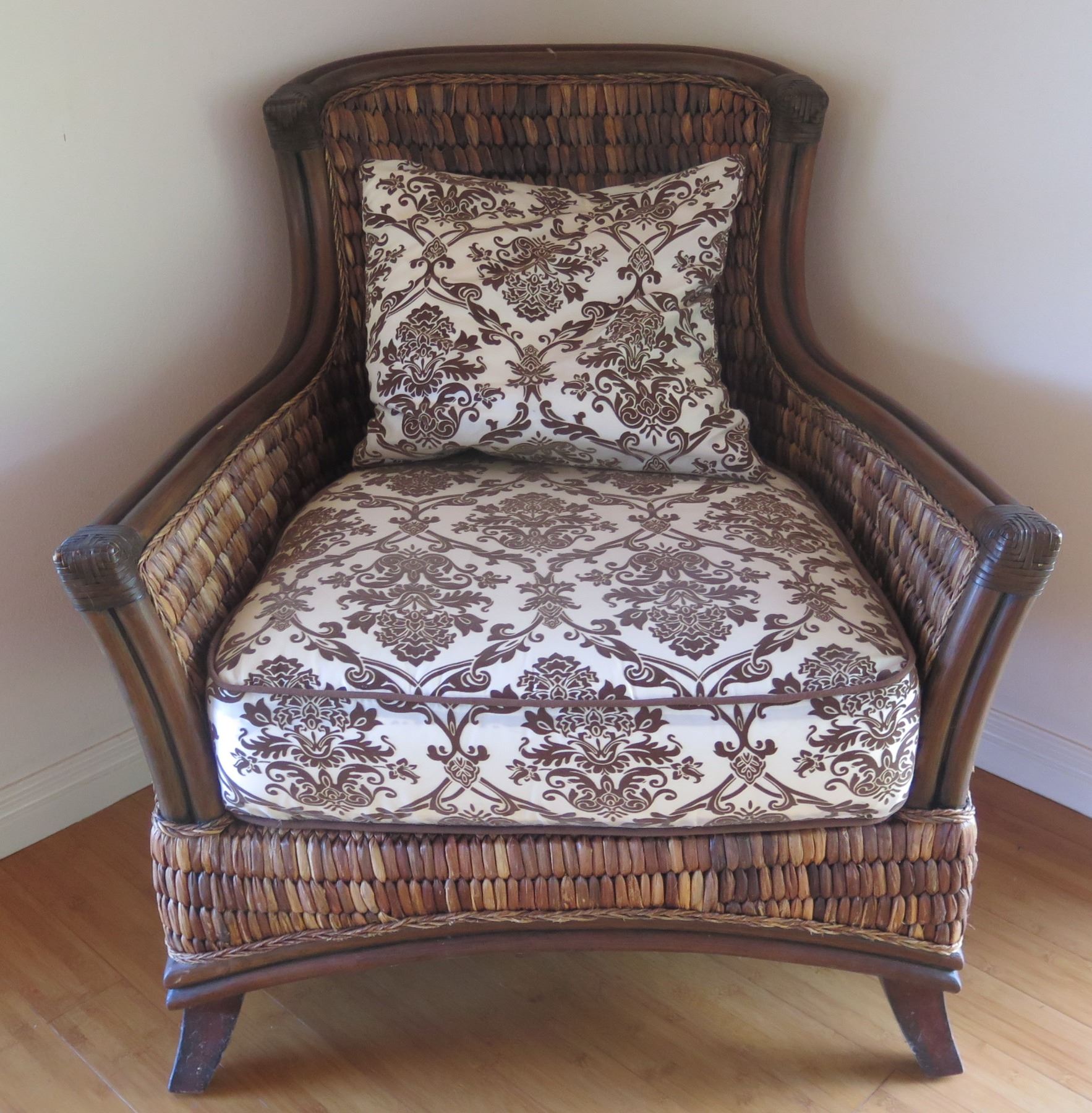 Wood & Wicker Chair w/ Floral Seat & Back Cushions