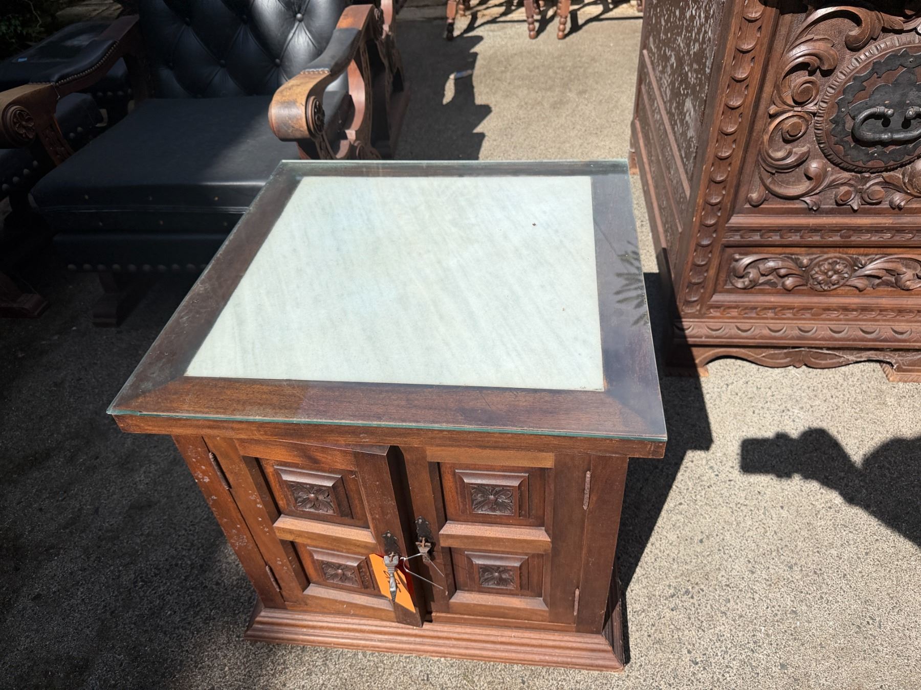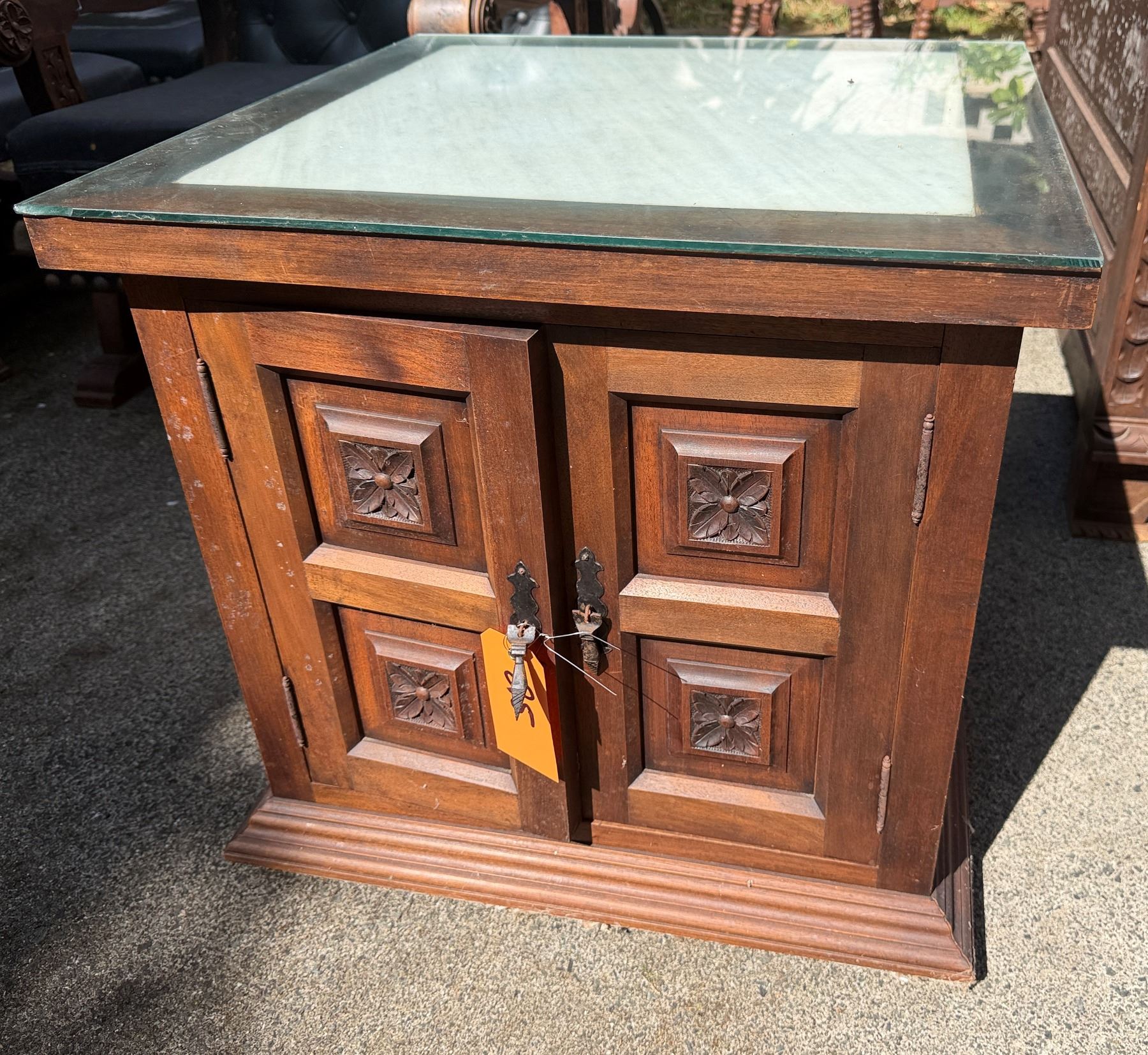 Wooden 2-Door Cabinet w/ Clear Top 24" x 24" x 23"H