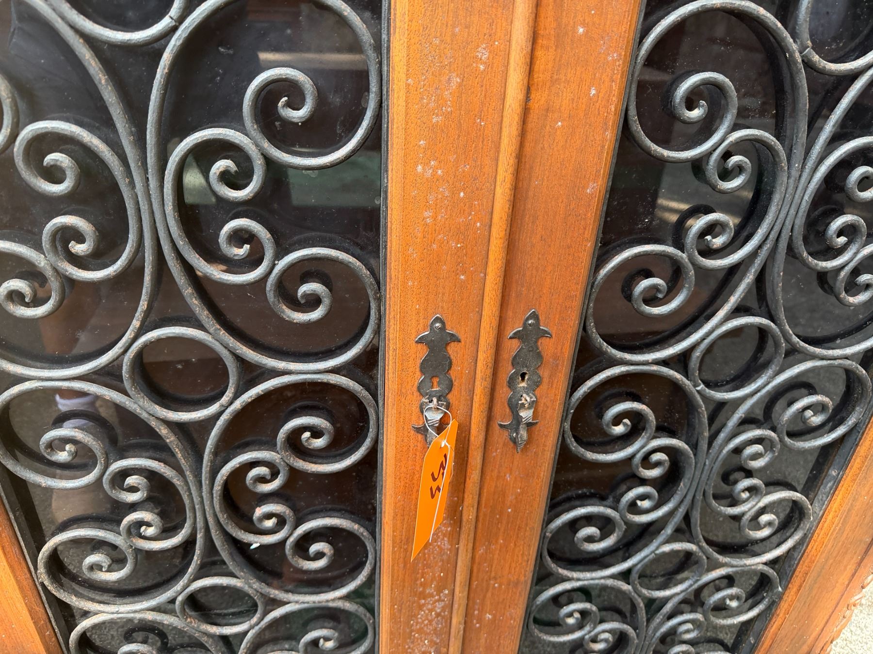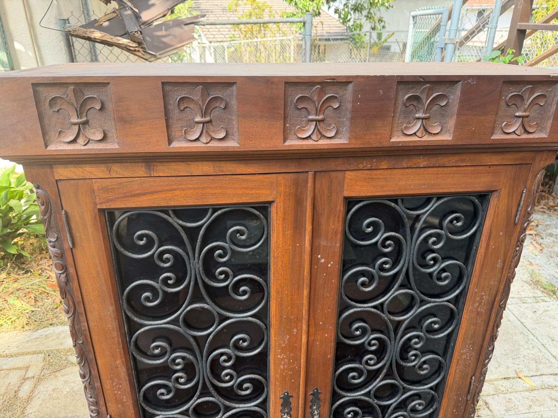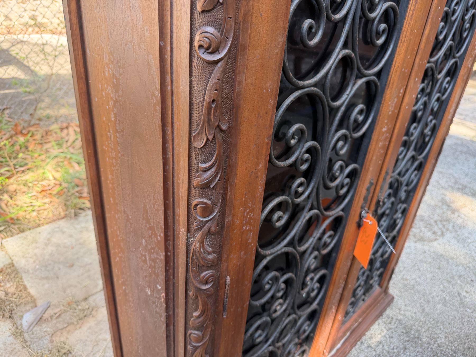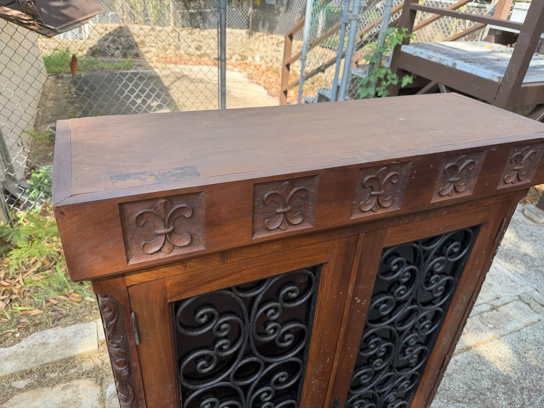 Wooden 2-Door Cabinet w/ Metal Filigree Design 43" x 15" x 53"H