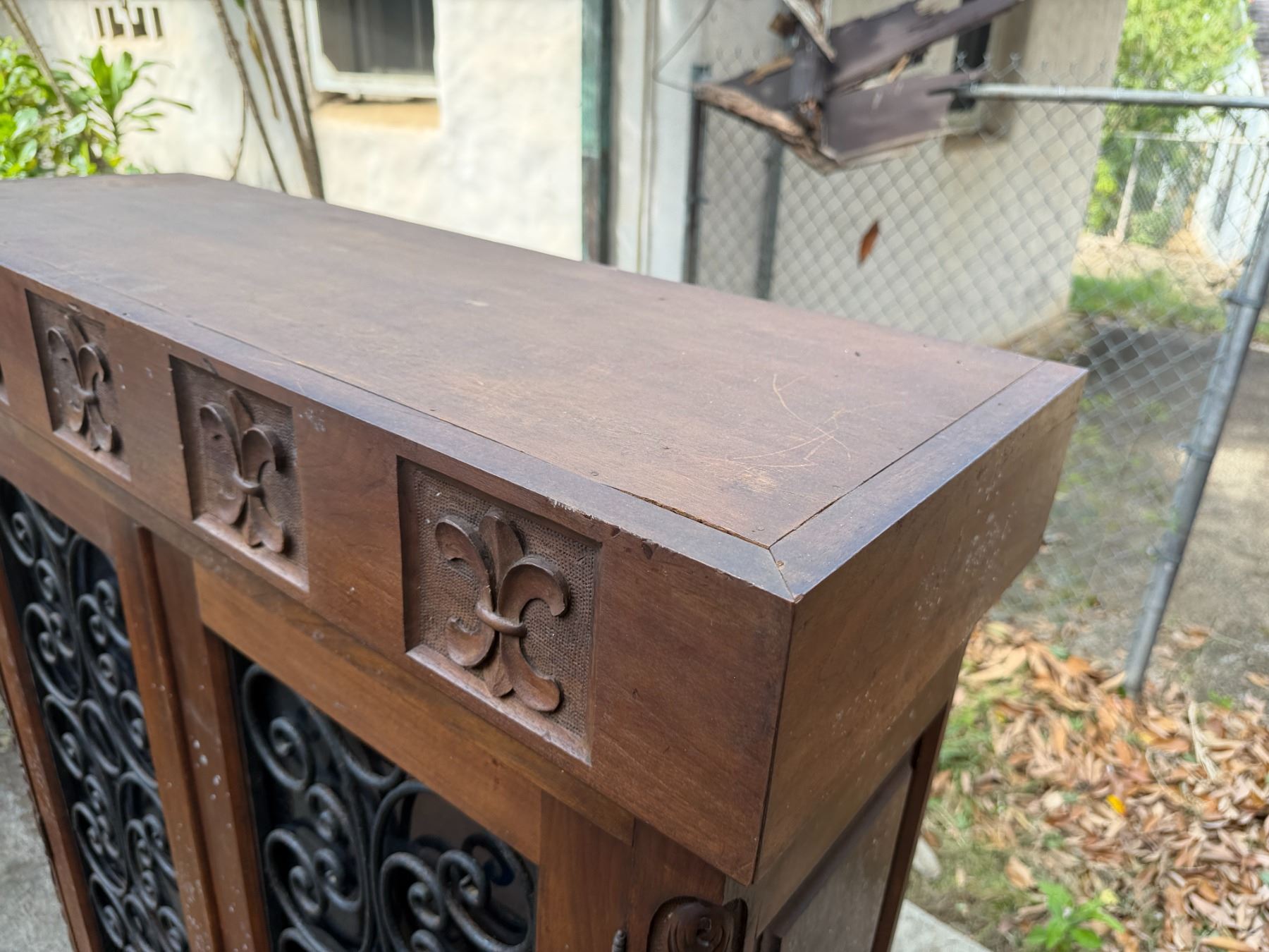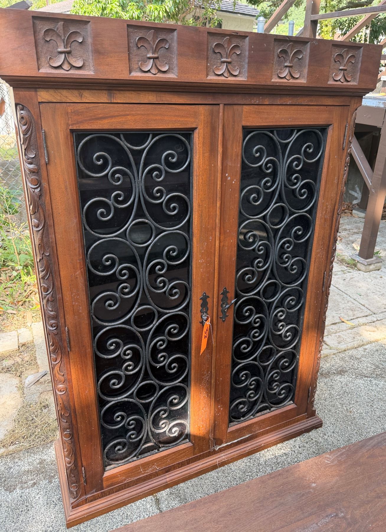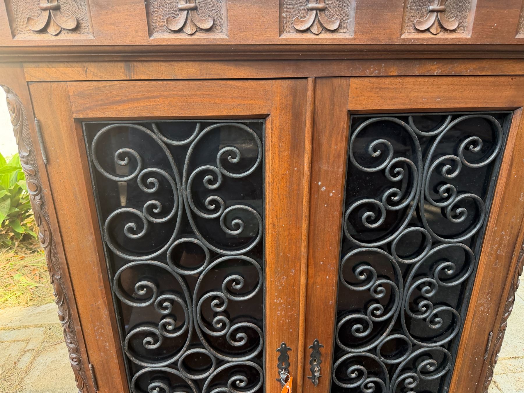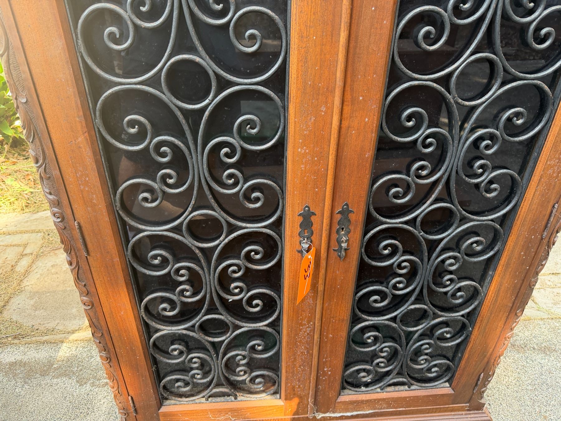 Wooden 2-Door Cabinet w/ Metal Filigree Design 43" x 15" x 53"H
