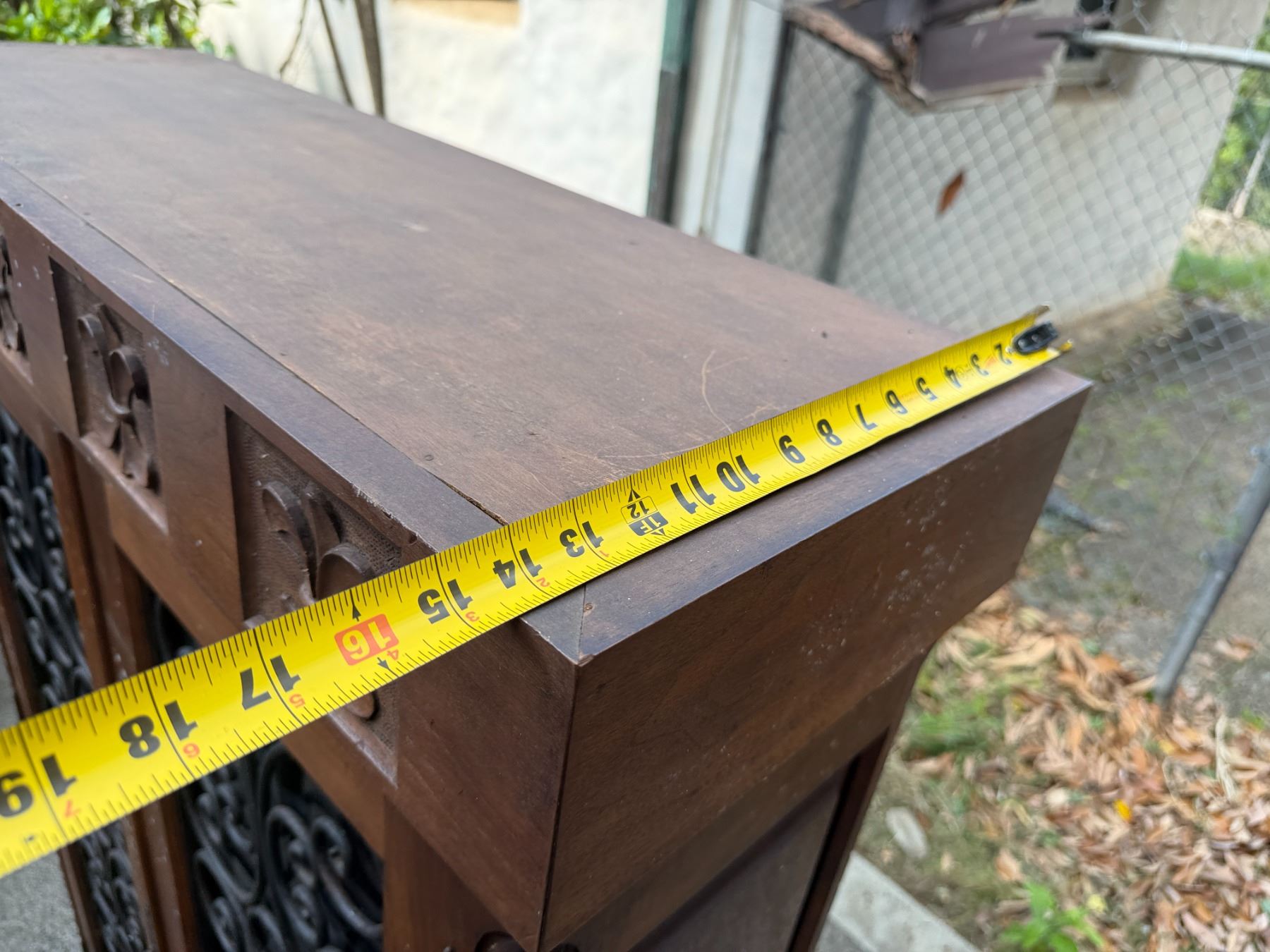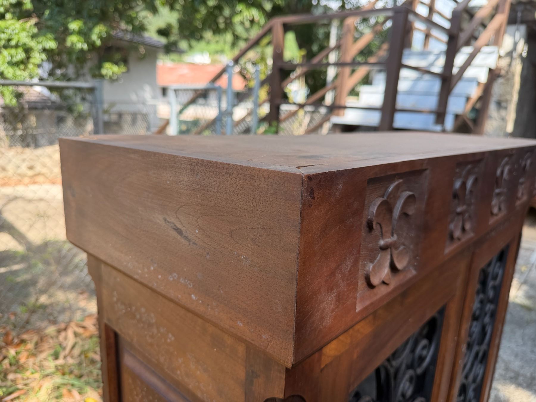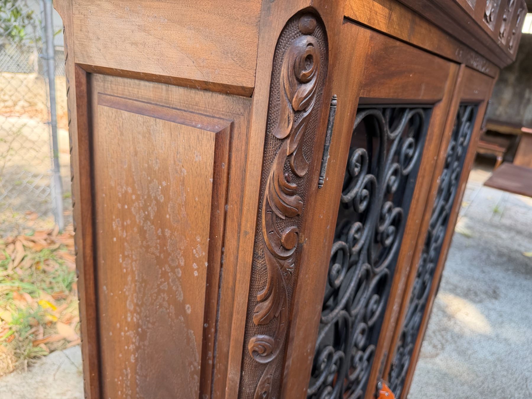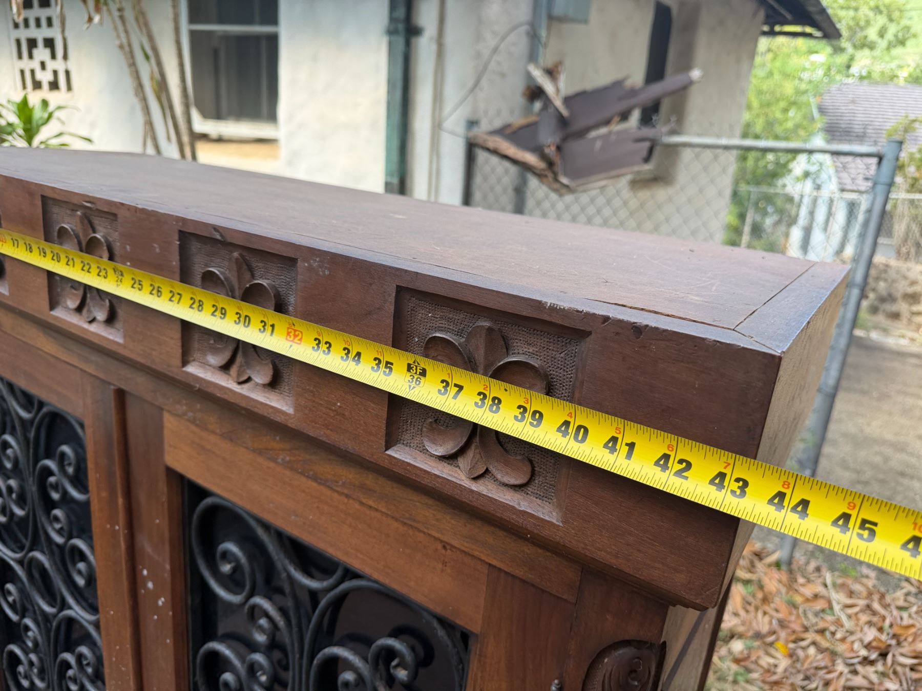 Wooden 2-Door Cabinet w/ Metal Filigree Design 43" x 15" x 53"H