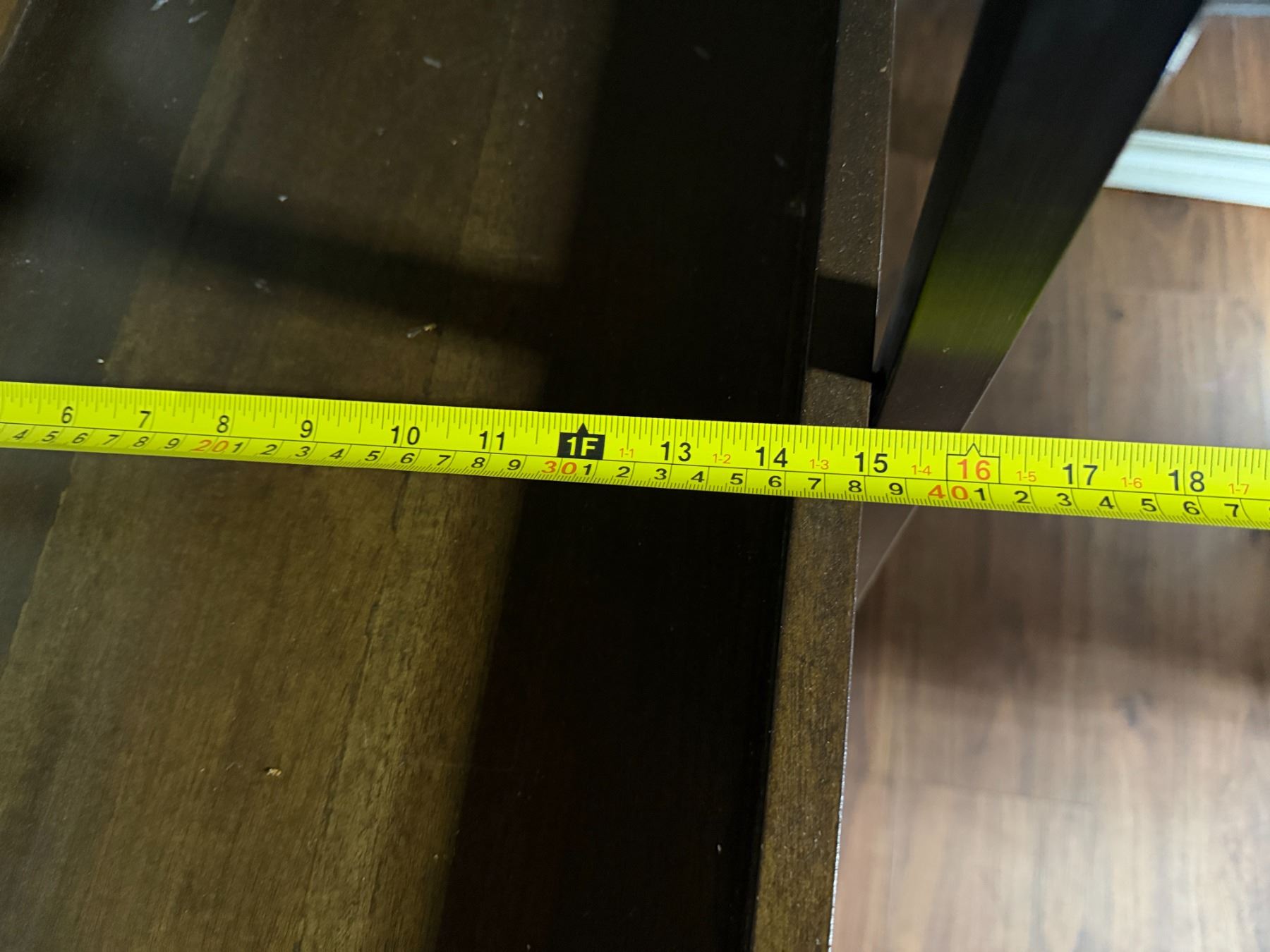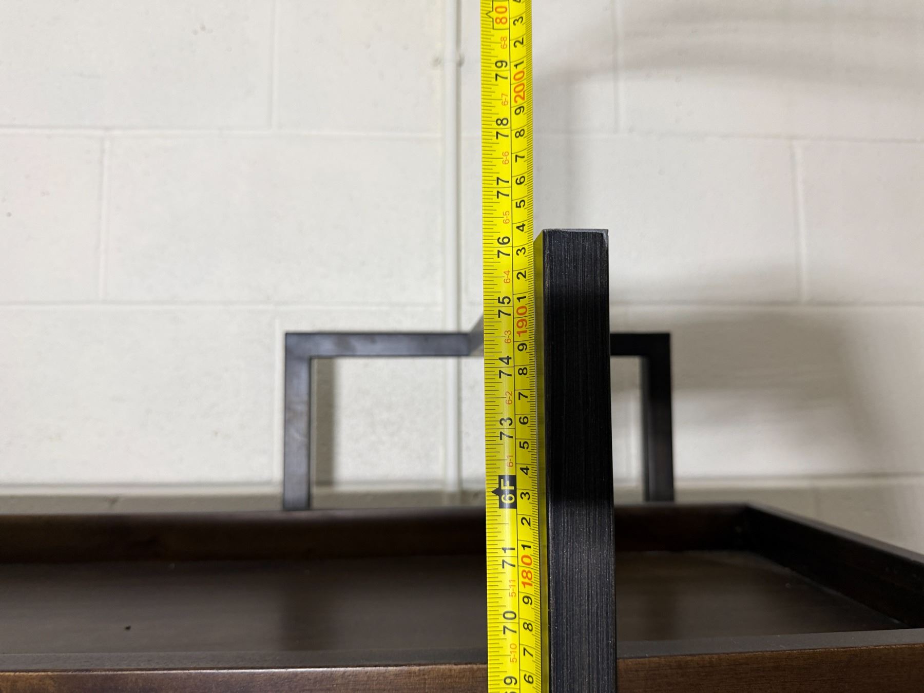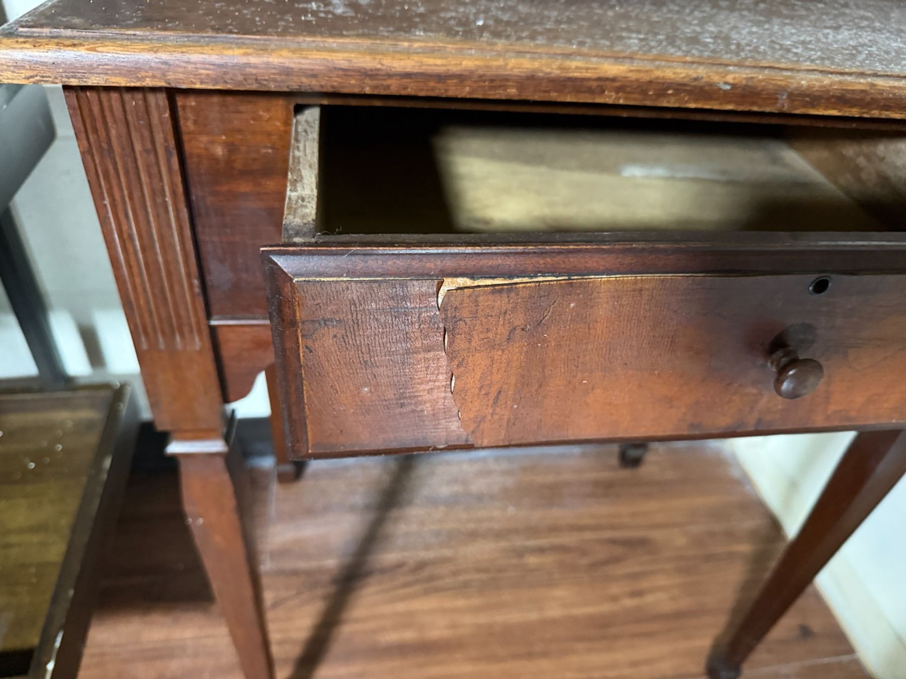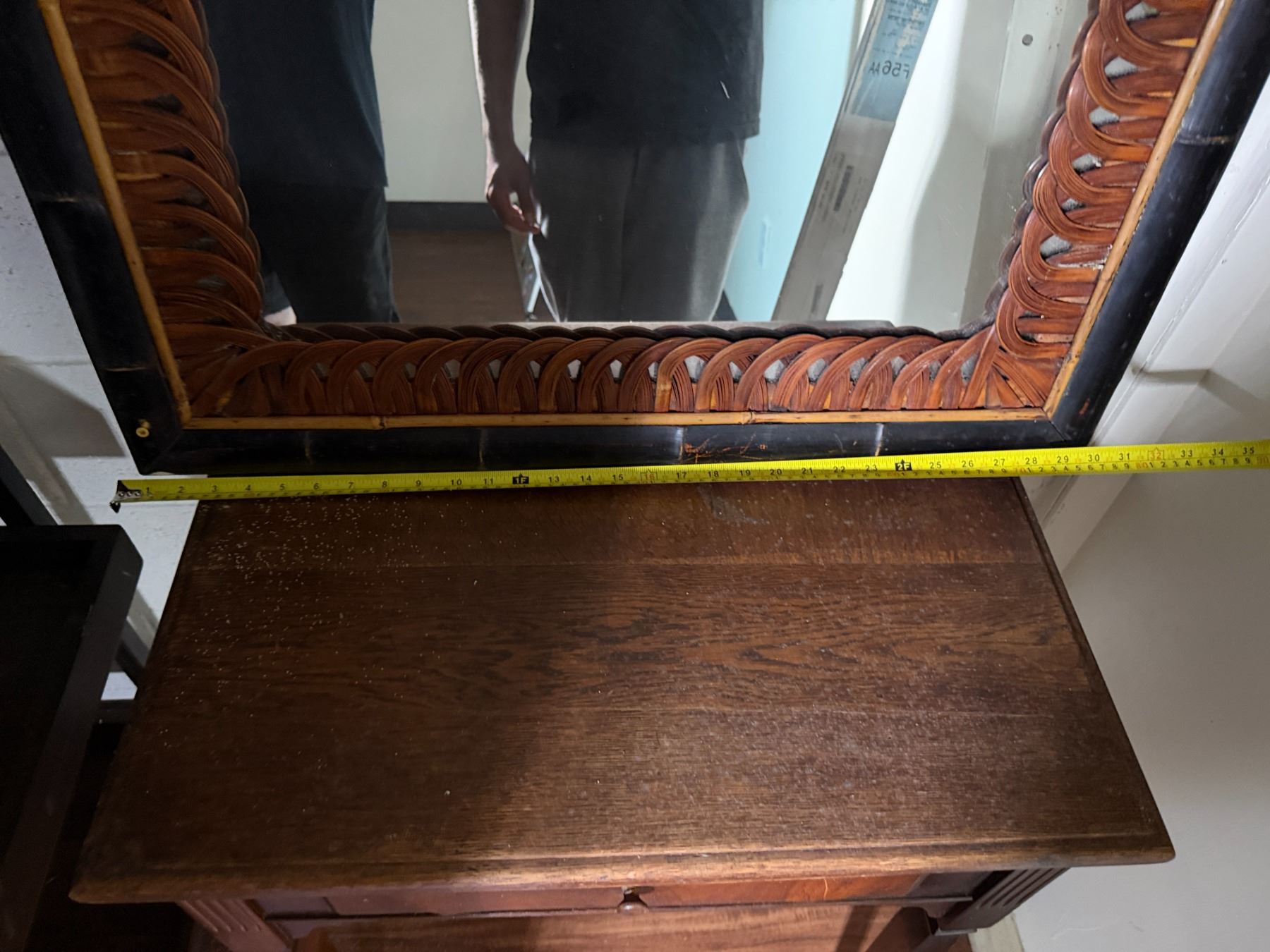 Wooden 5-Tier Shelving Unit, Table w/ Drawer (cracked) & Framed Wall Mirror, Misc Sizes