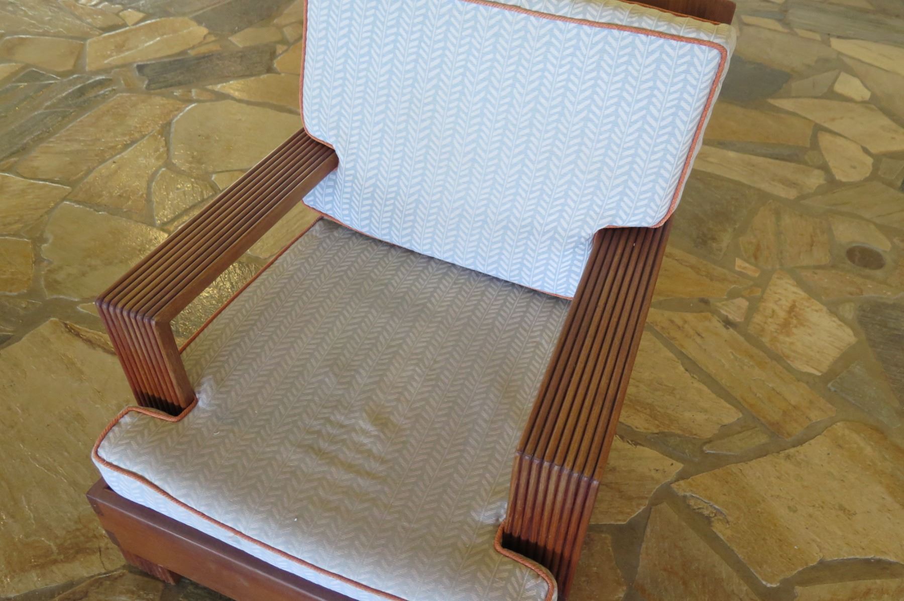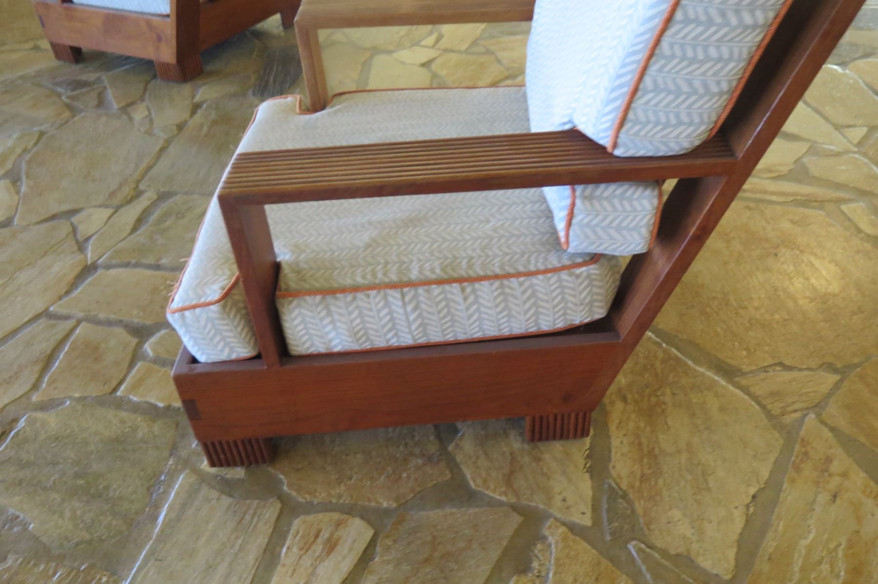 Wooden Armchair w/ Back & Seat Cushions 32"x35"x34"Ht