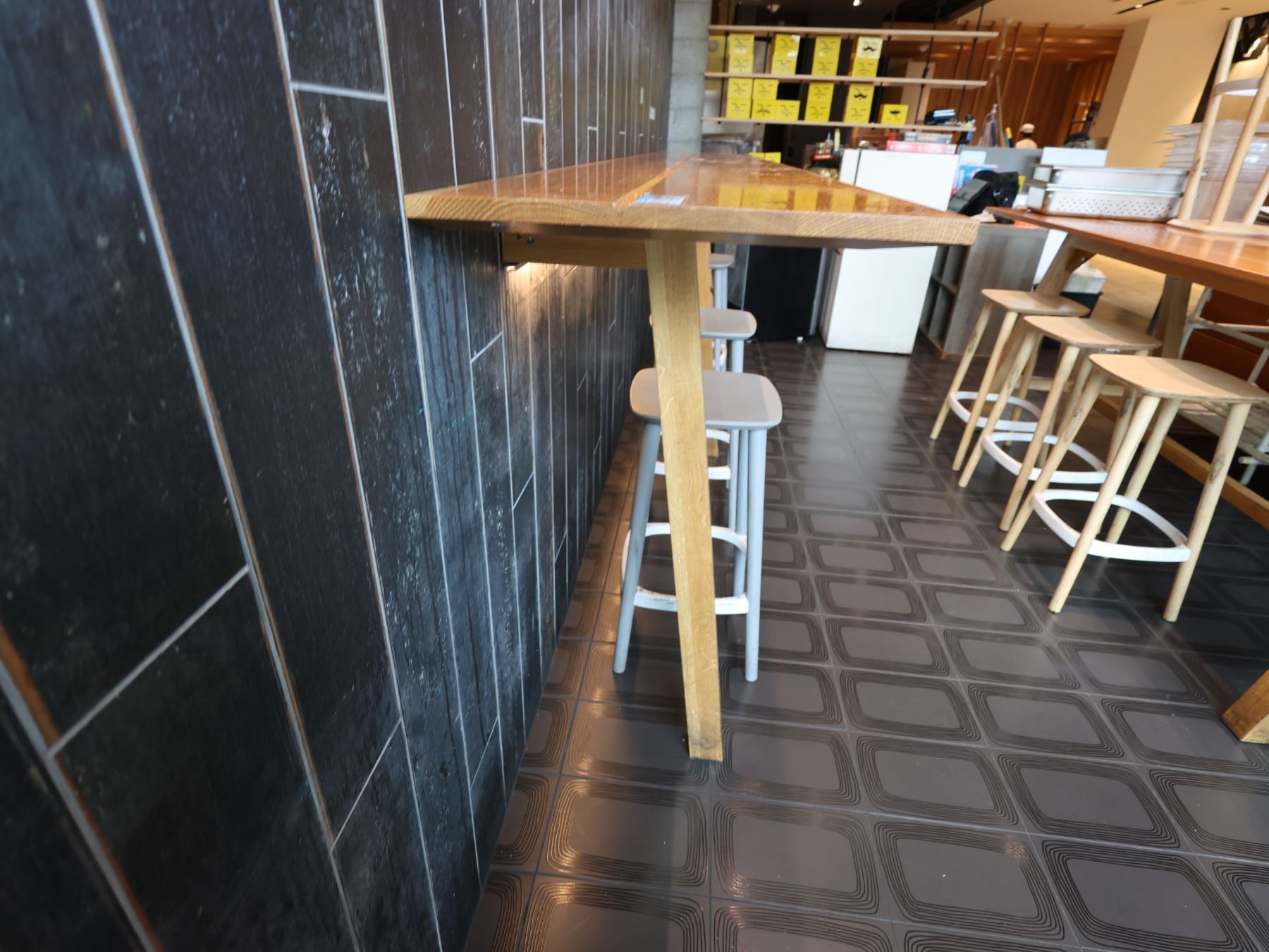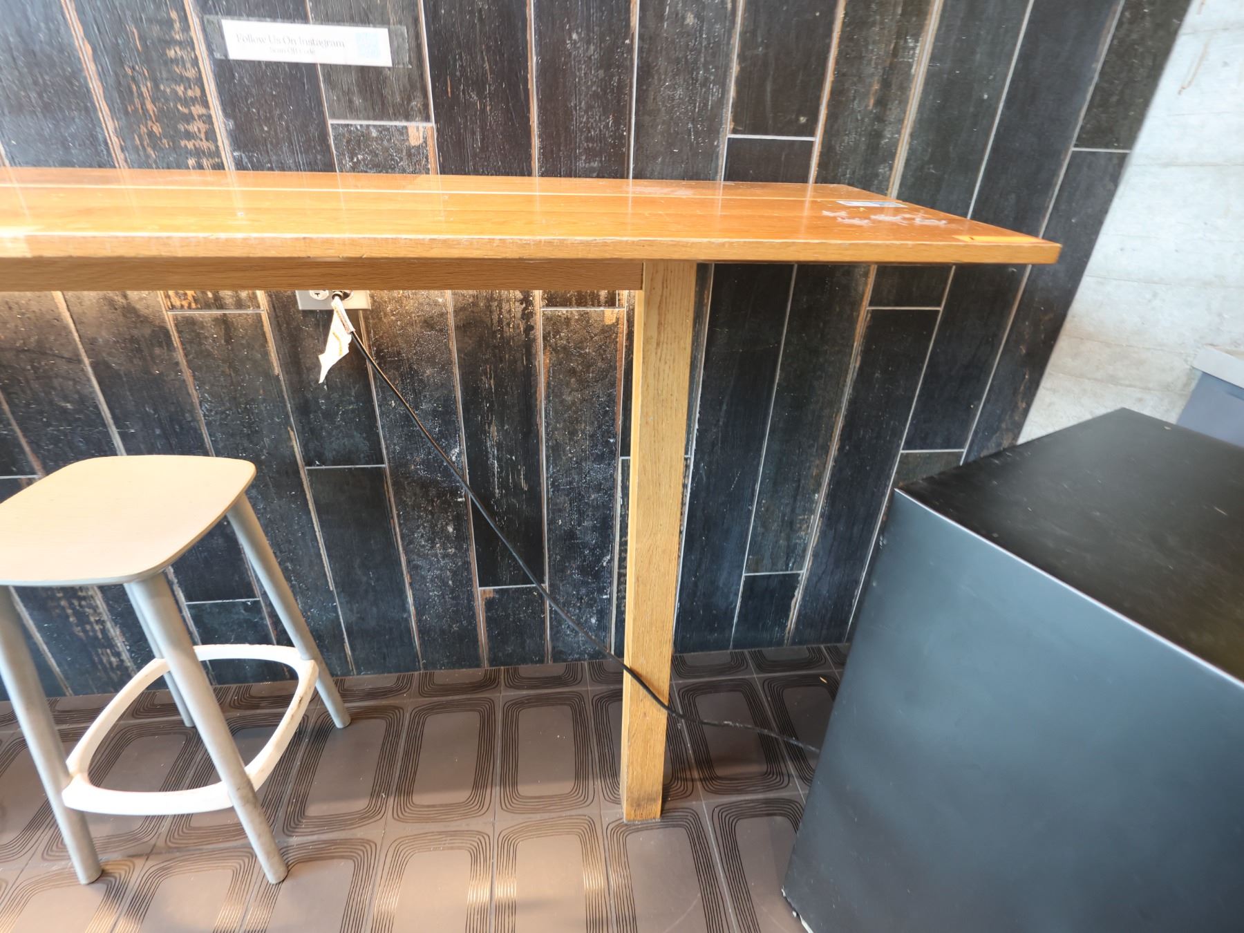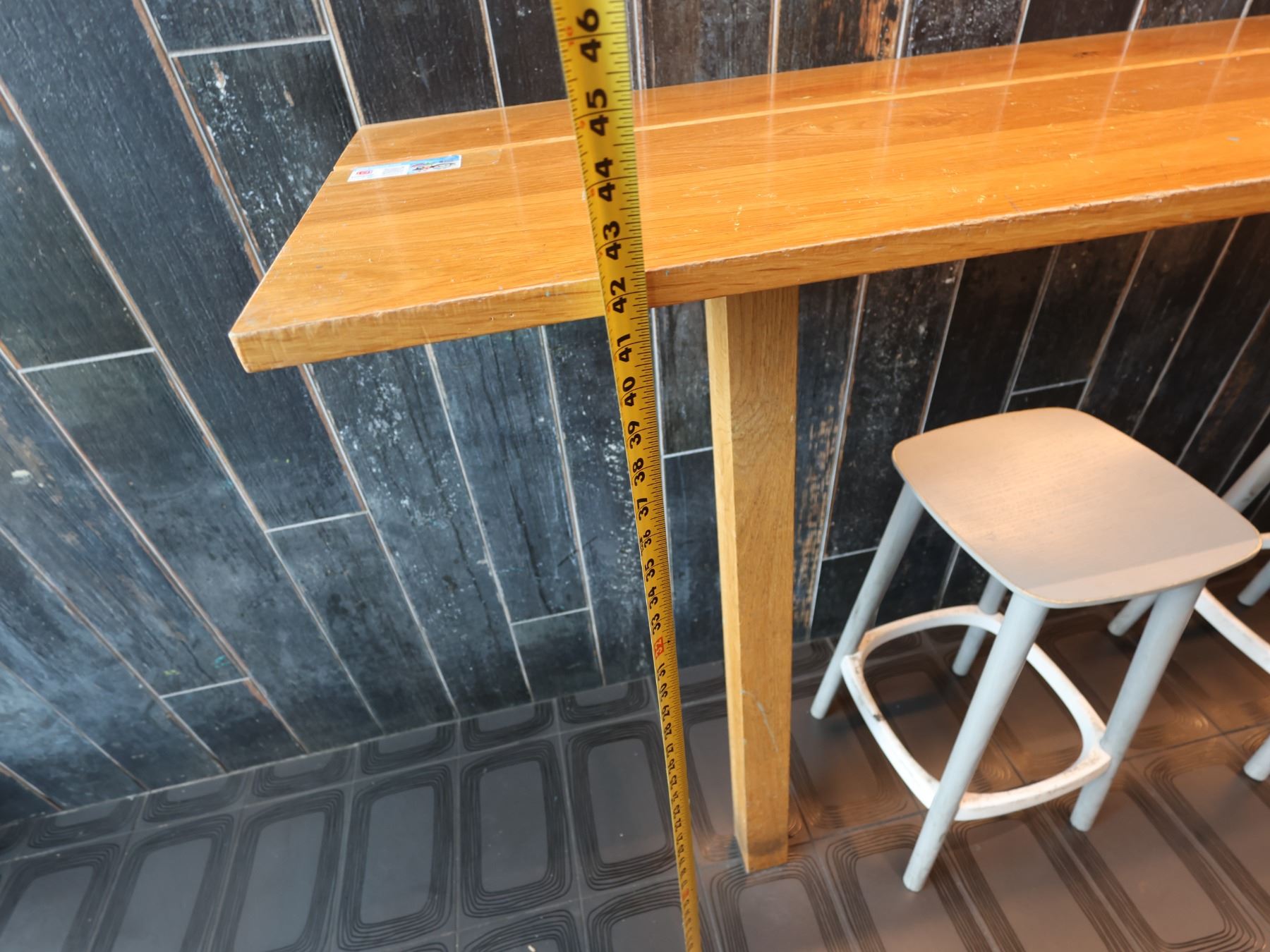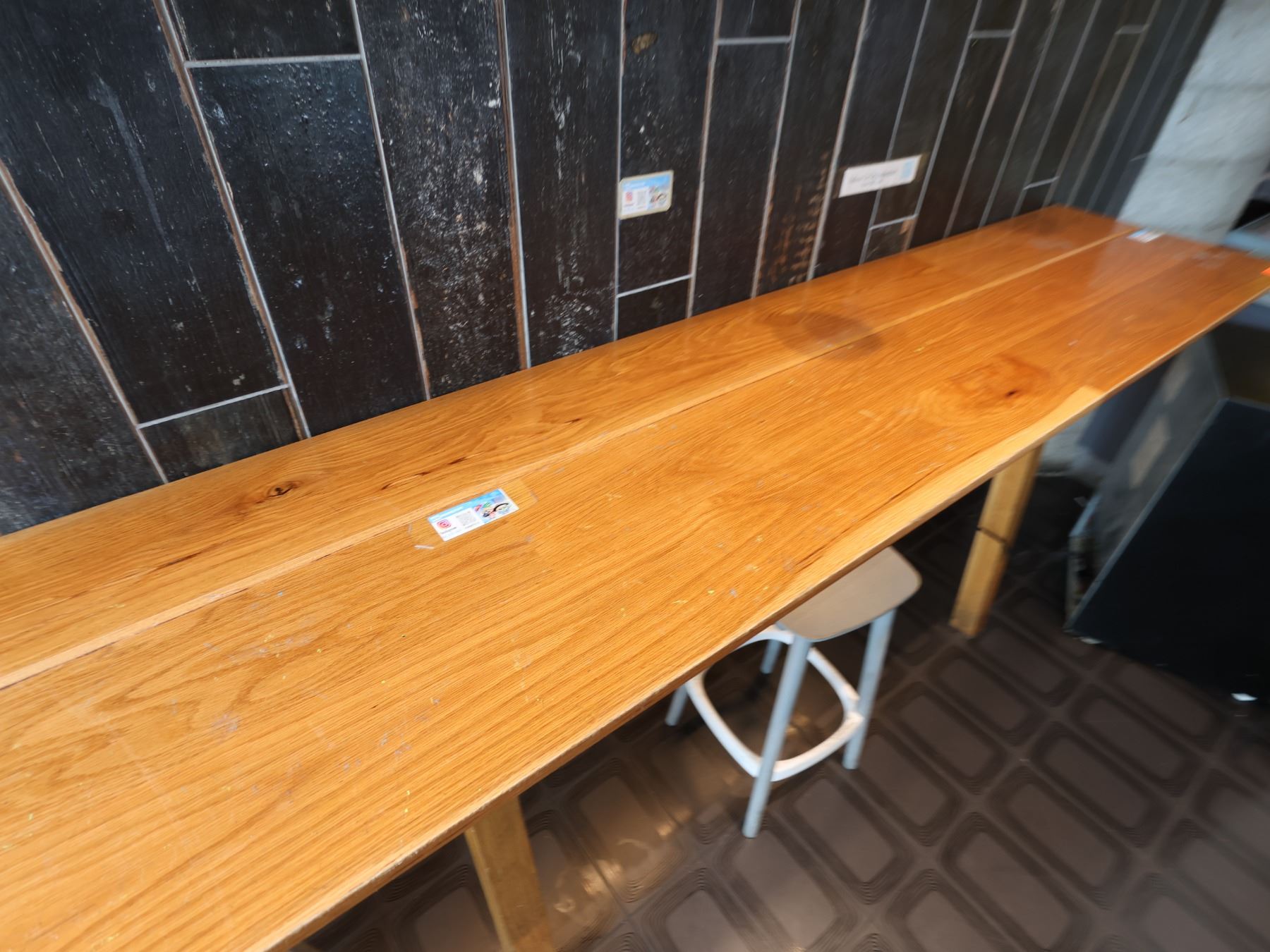 Wooden Bar-Height Counter 144" x 20" x 42"H & 3 Pedrali Stools Made in Italy 12.5" x 12.5" x 25.5"H