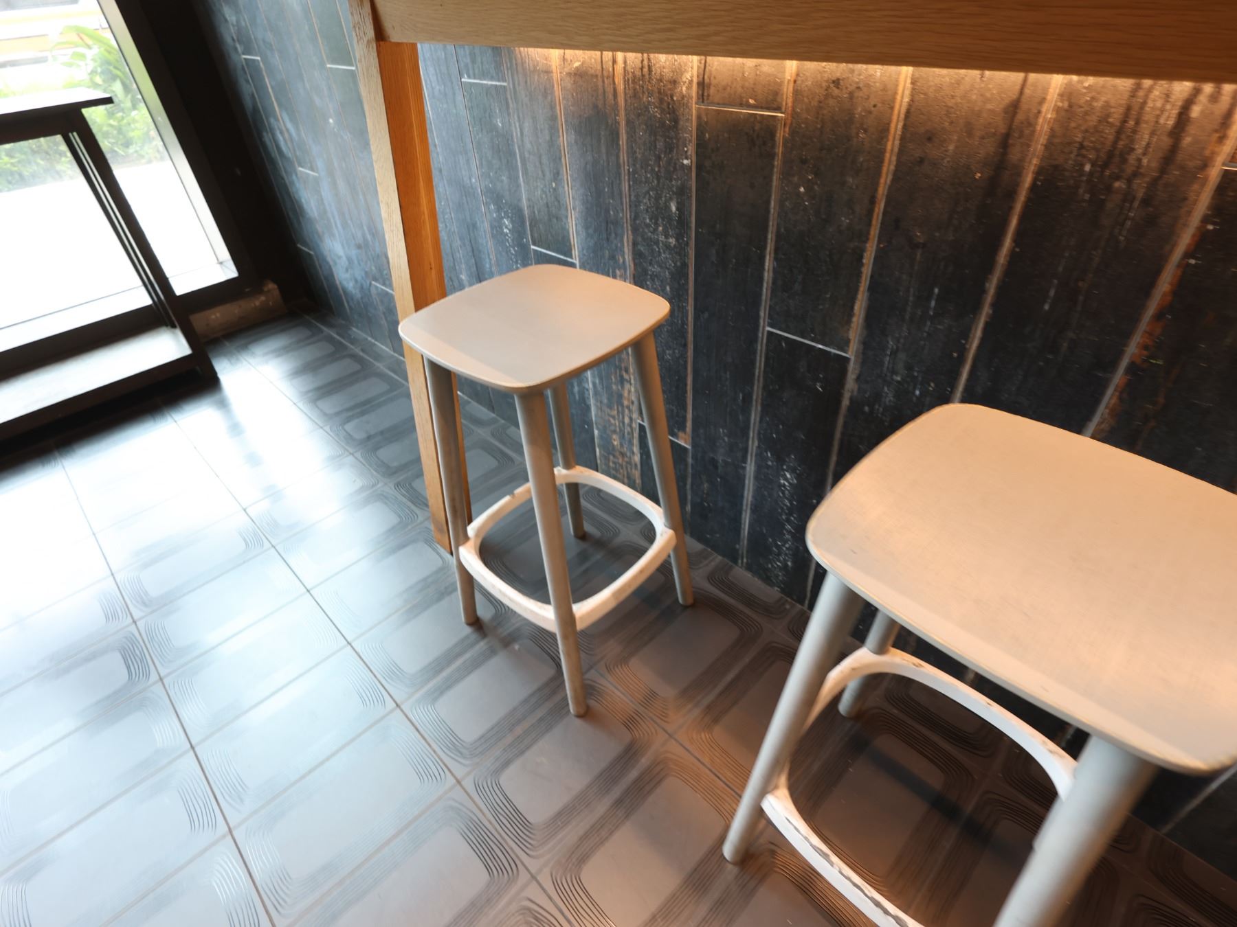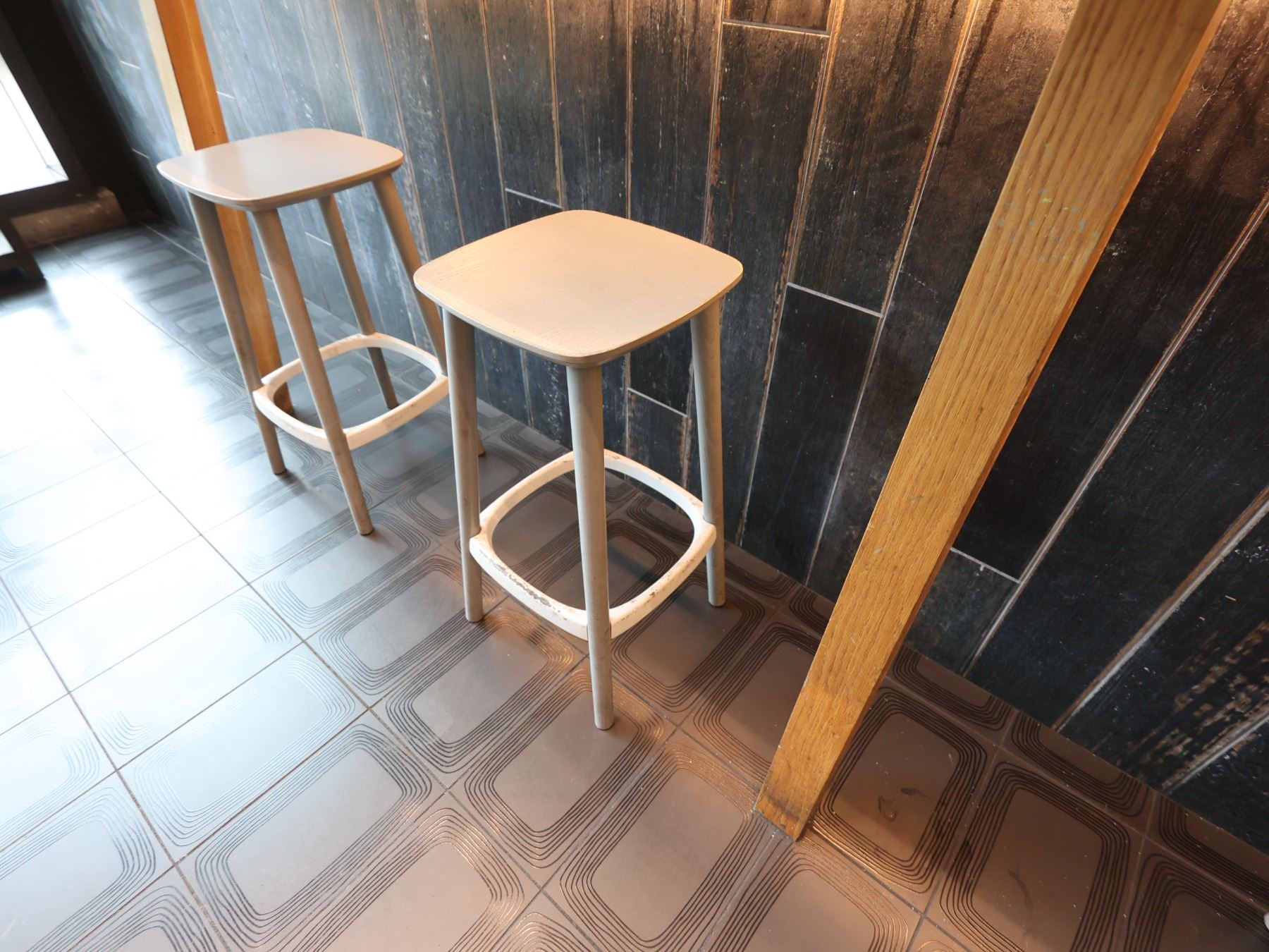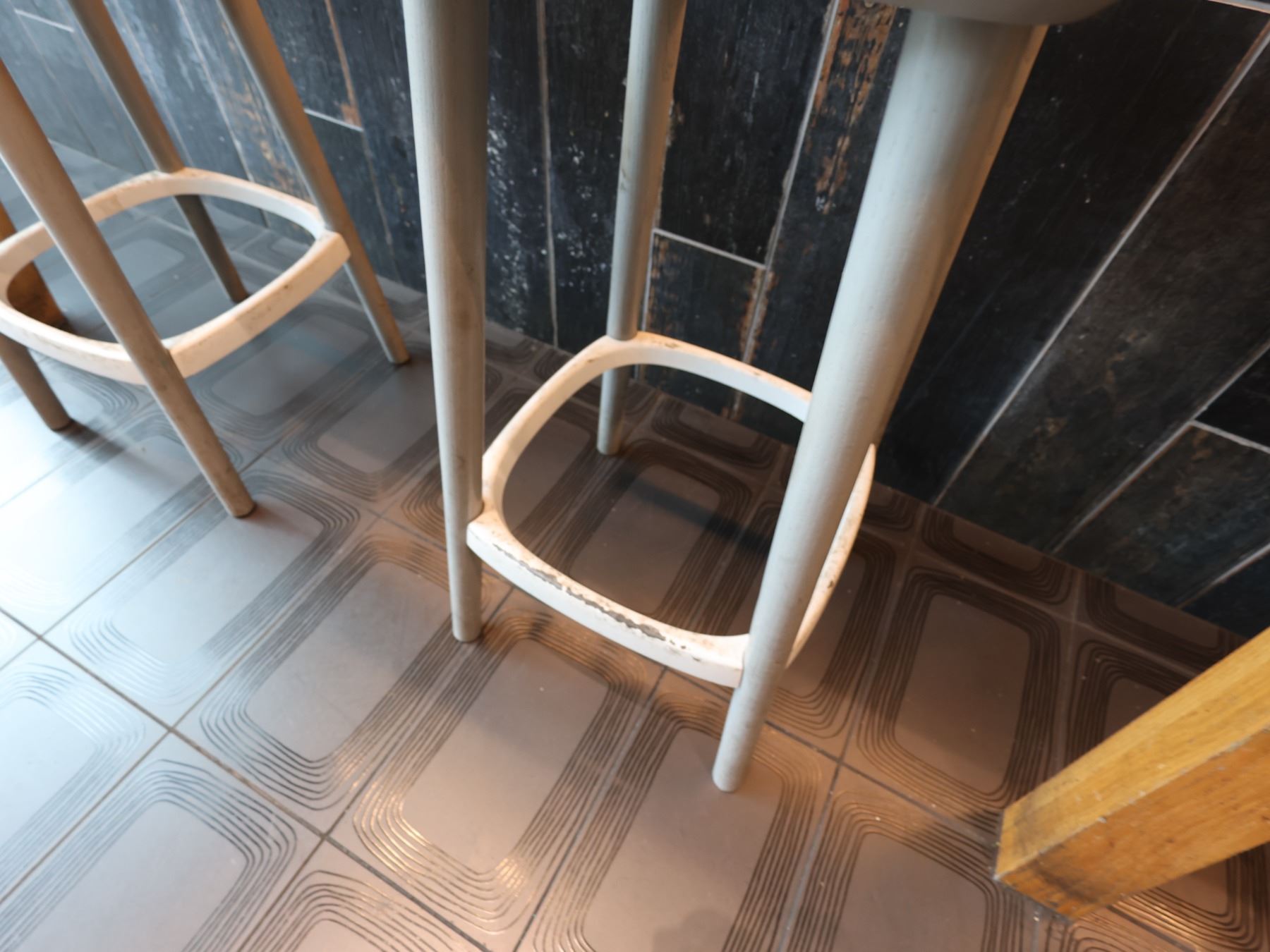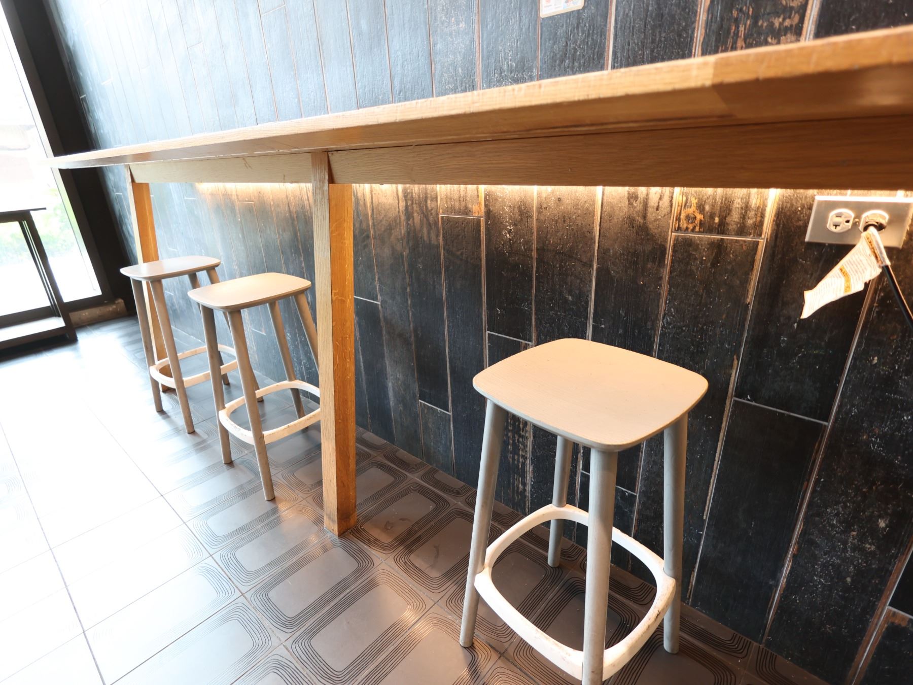 Wooden Bar-Height Counter 144" x 20" x 42"H & 3 Pedrali Stools Made in Italy 12.5" x 12.5" x 25.5"H