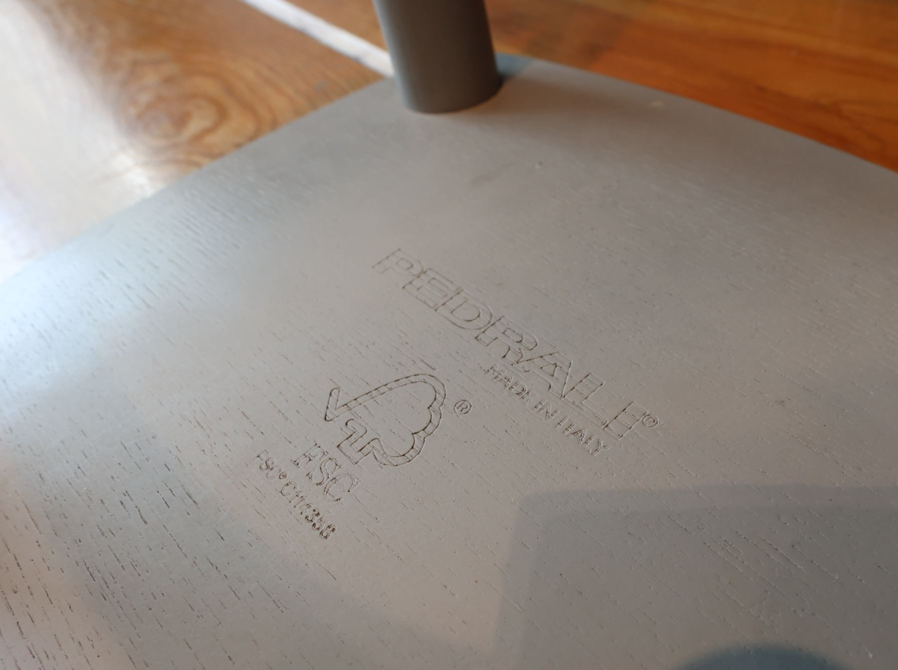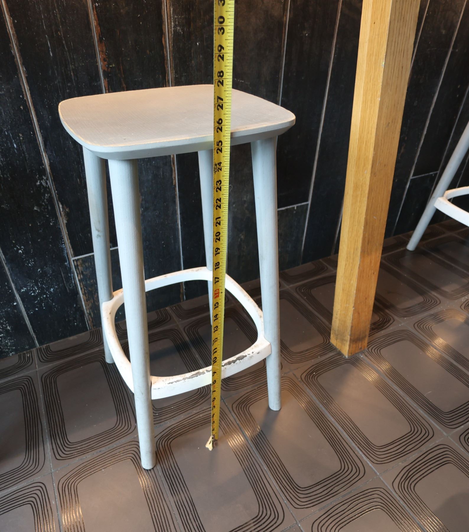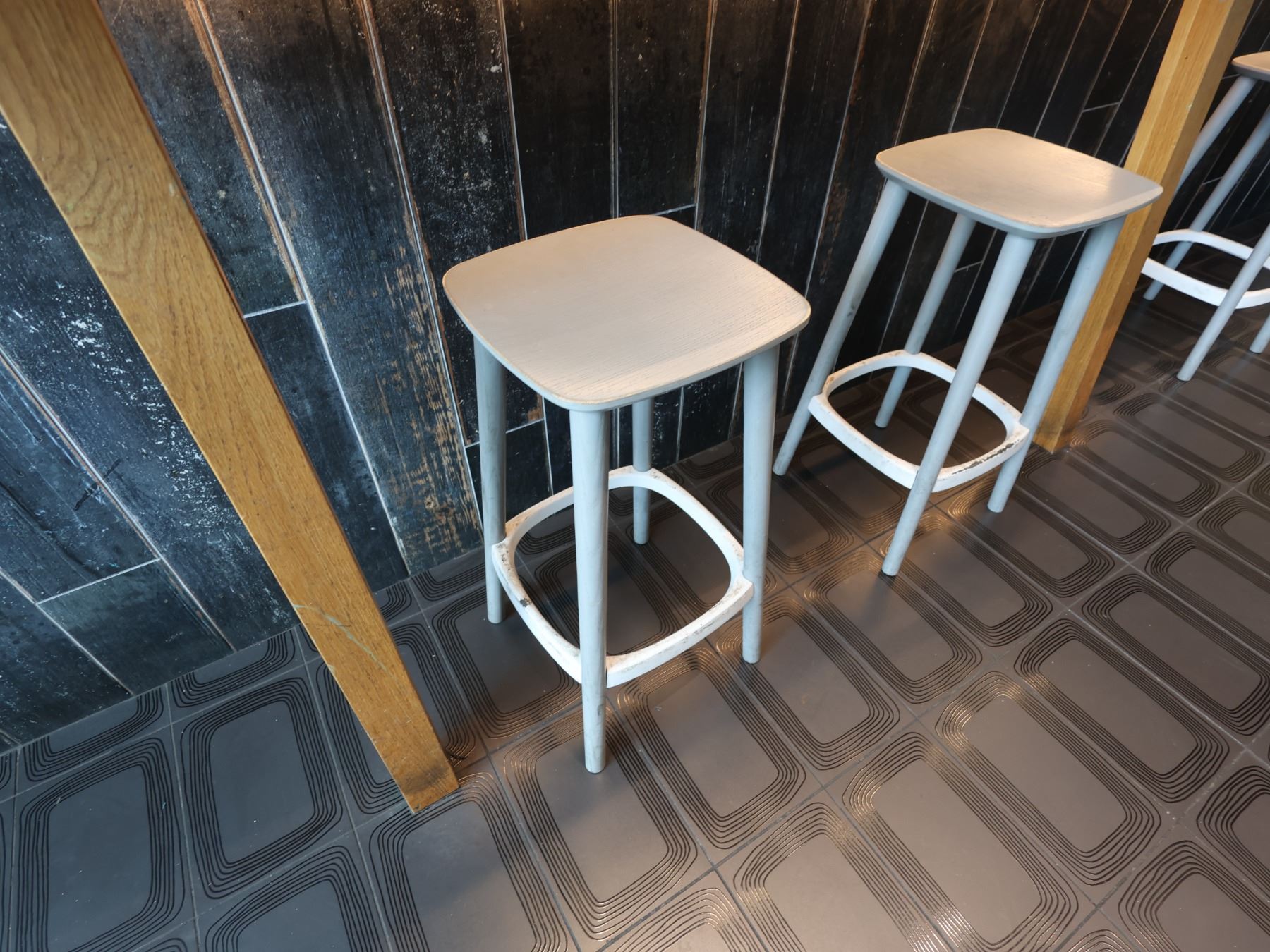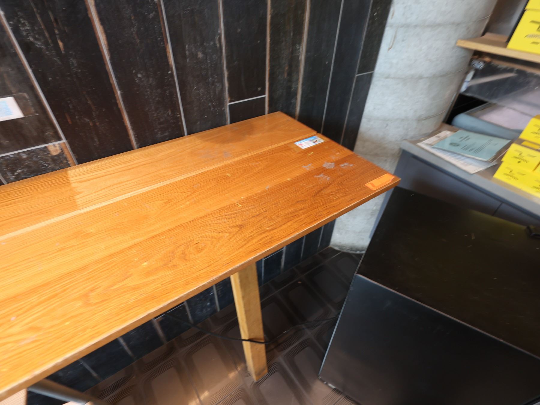 Wooden Bar-Height Counter 144" x 20" x 42"H & 3 Pedrali Stools Made in Italy 12.5" x 12.5" x 25.5"H