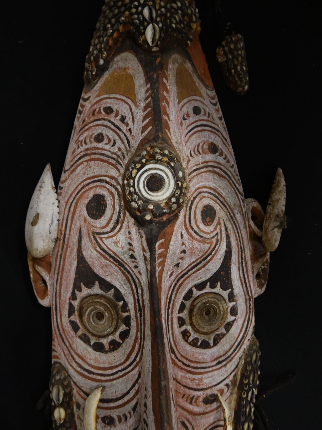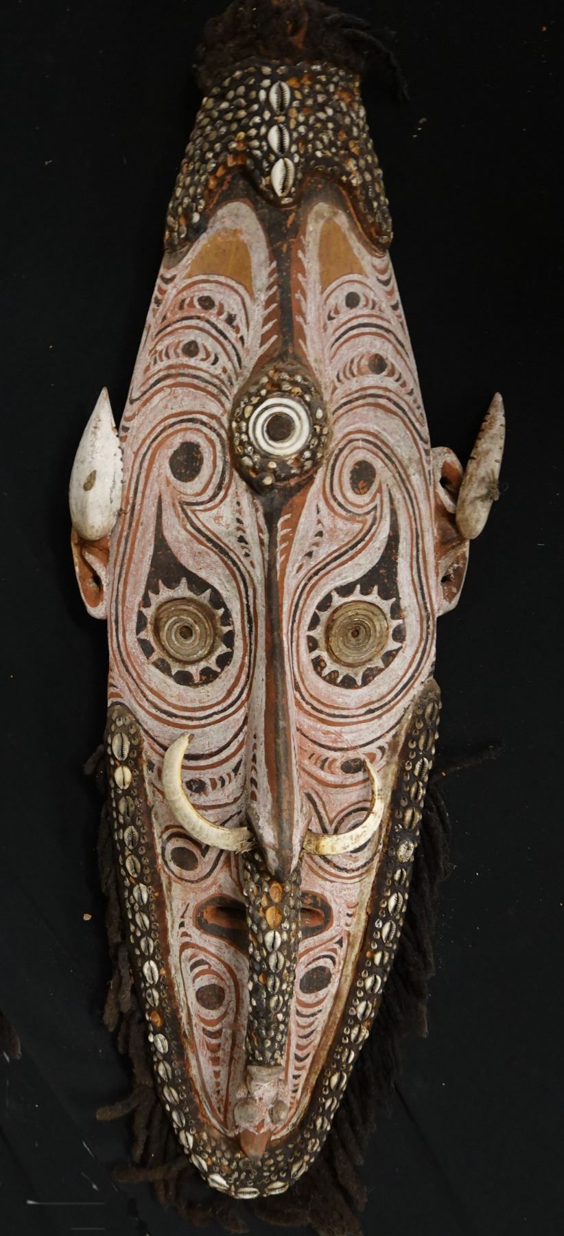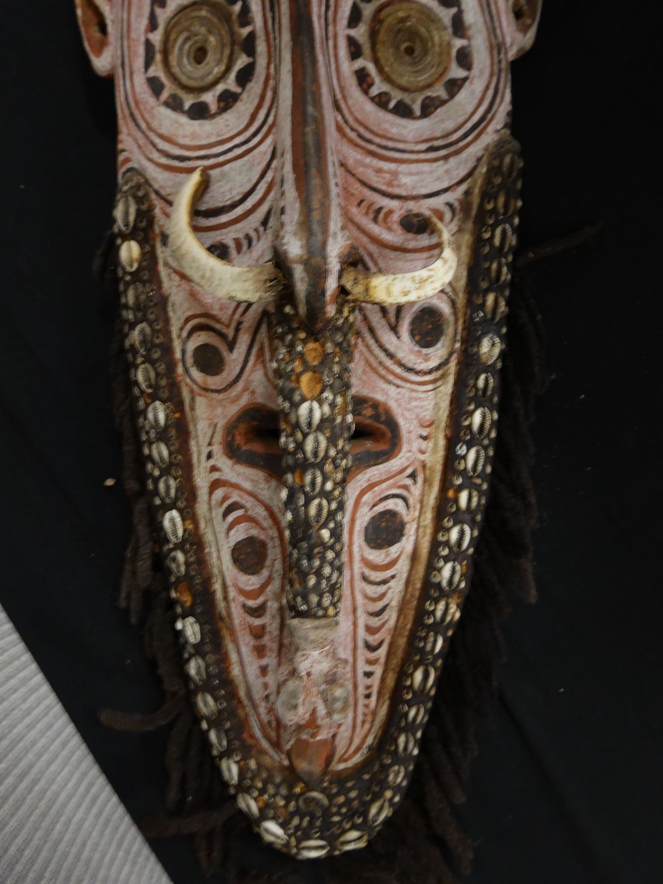 Wooden Bearded Mask Wall Hanging from New Guinea 35" x 12" x 5"